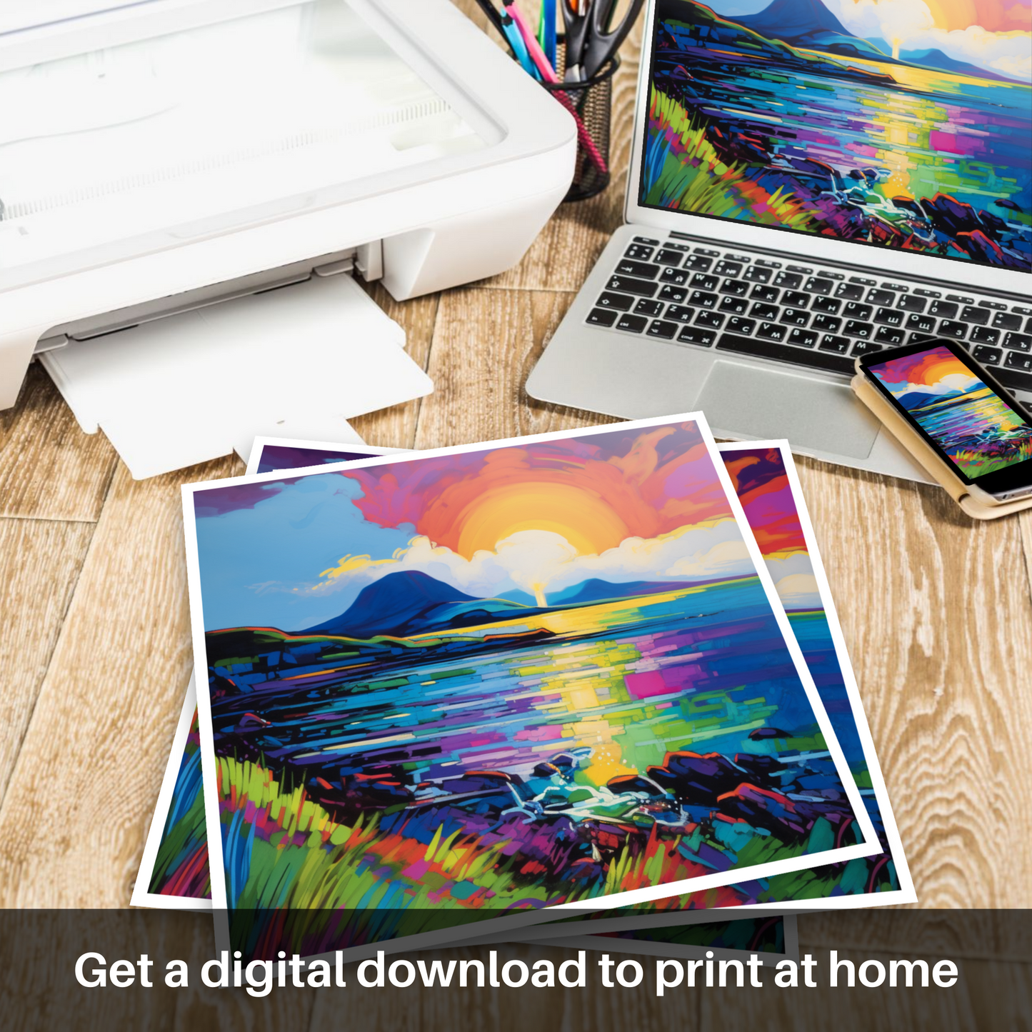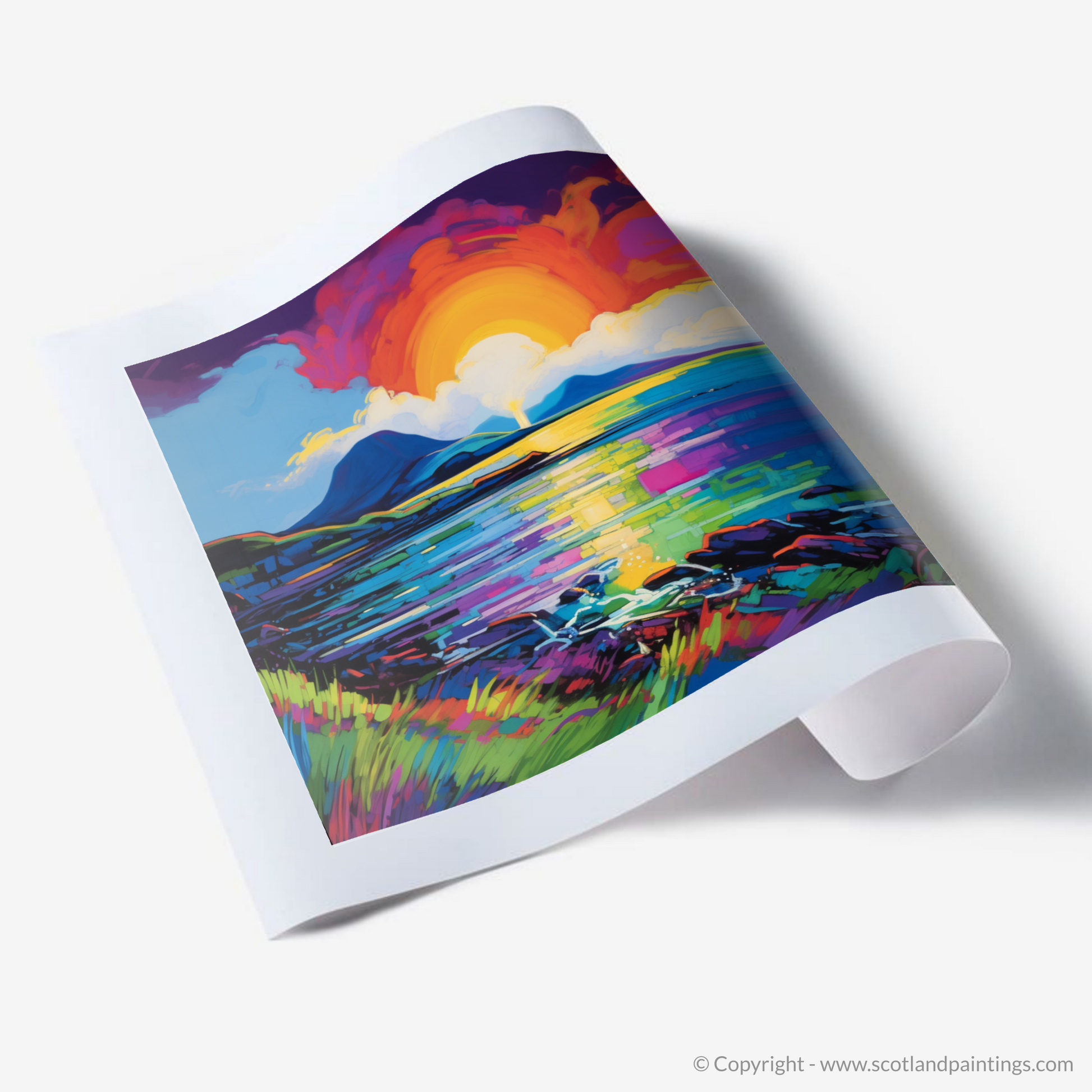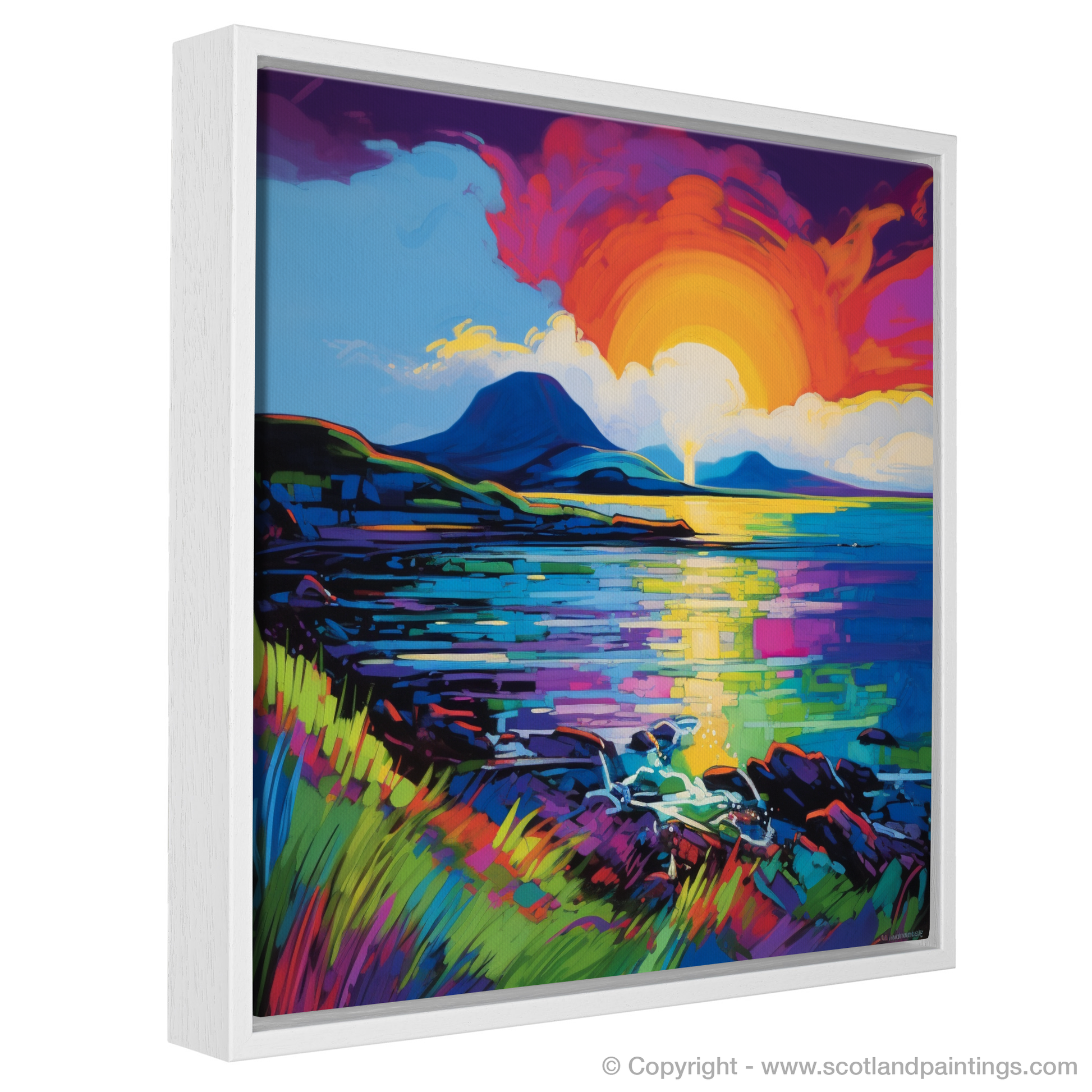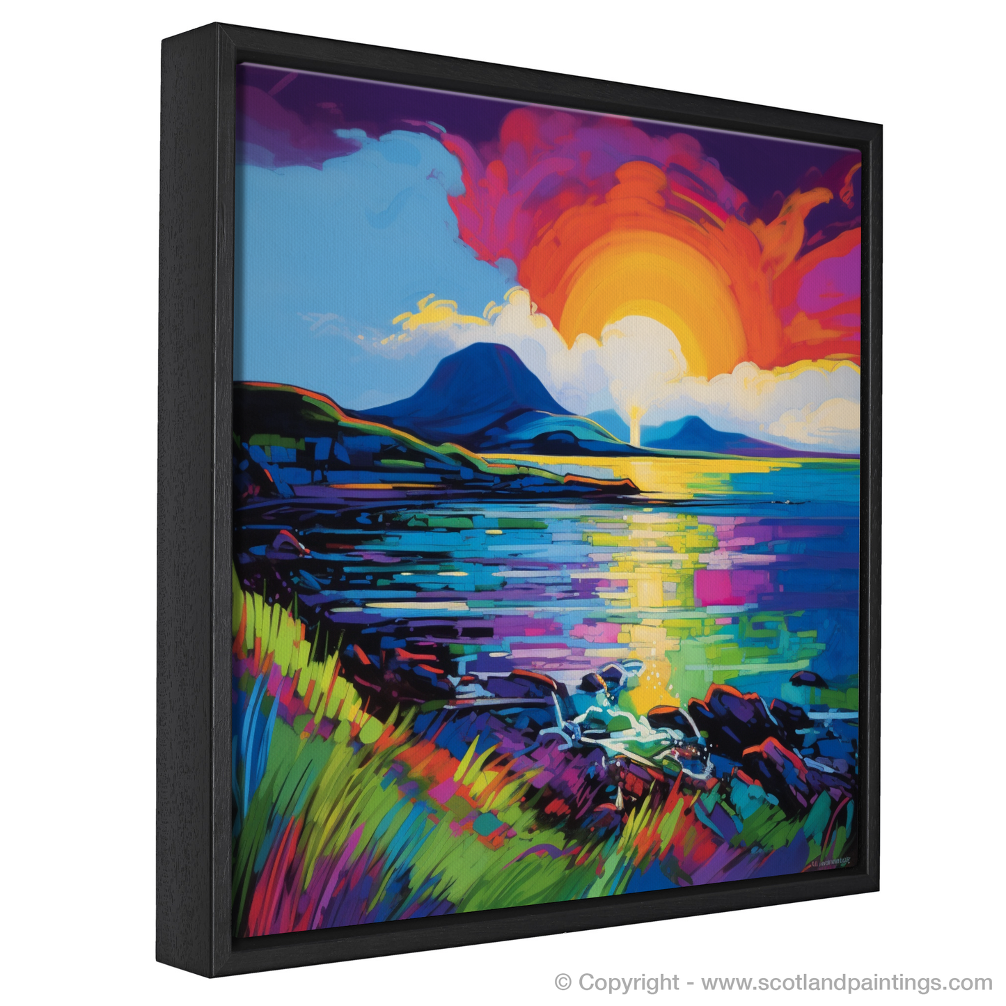 Every element in this arresting print contributes to a sense of exuberance and energy, making it an ideal statement piece for lovers of both modern art and the wild Scottish landscape. Its eye-catching appeal and stunning reinterpretation of a classic island view ensure that this print will become a conversation piece in any setting, imbuing your space with the unique essence of Scotland's enchanting islands.