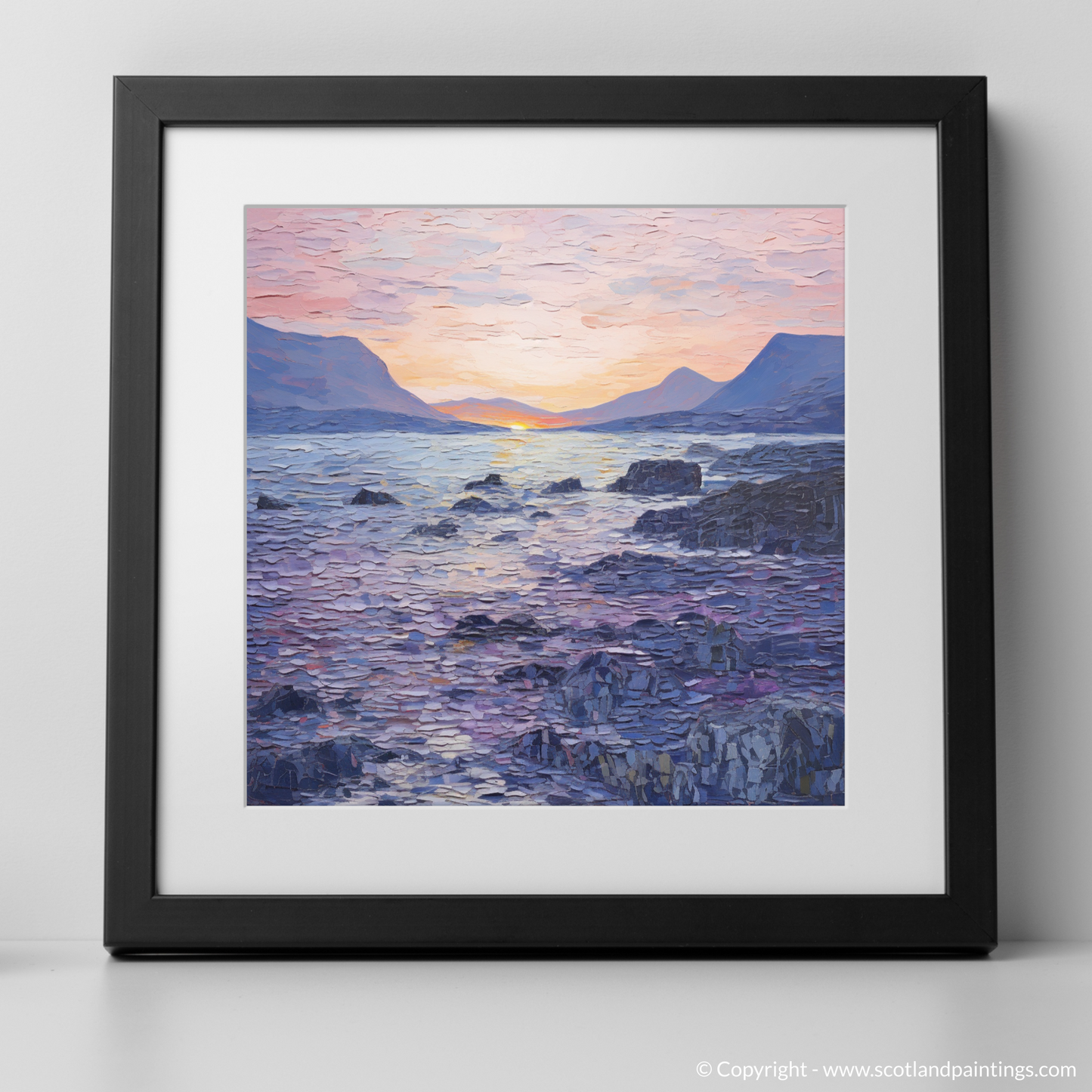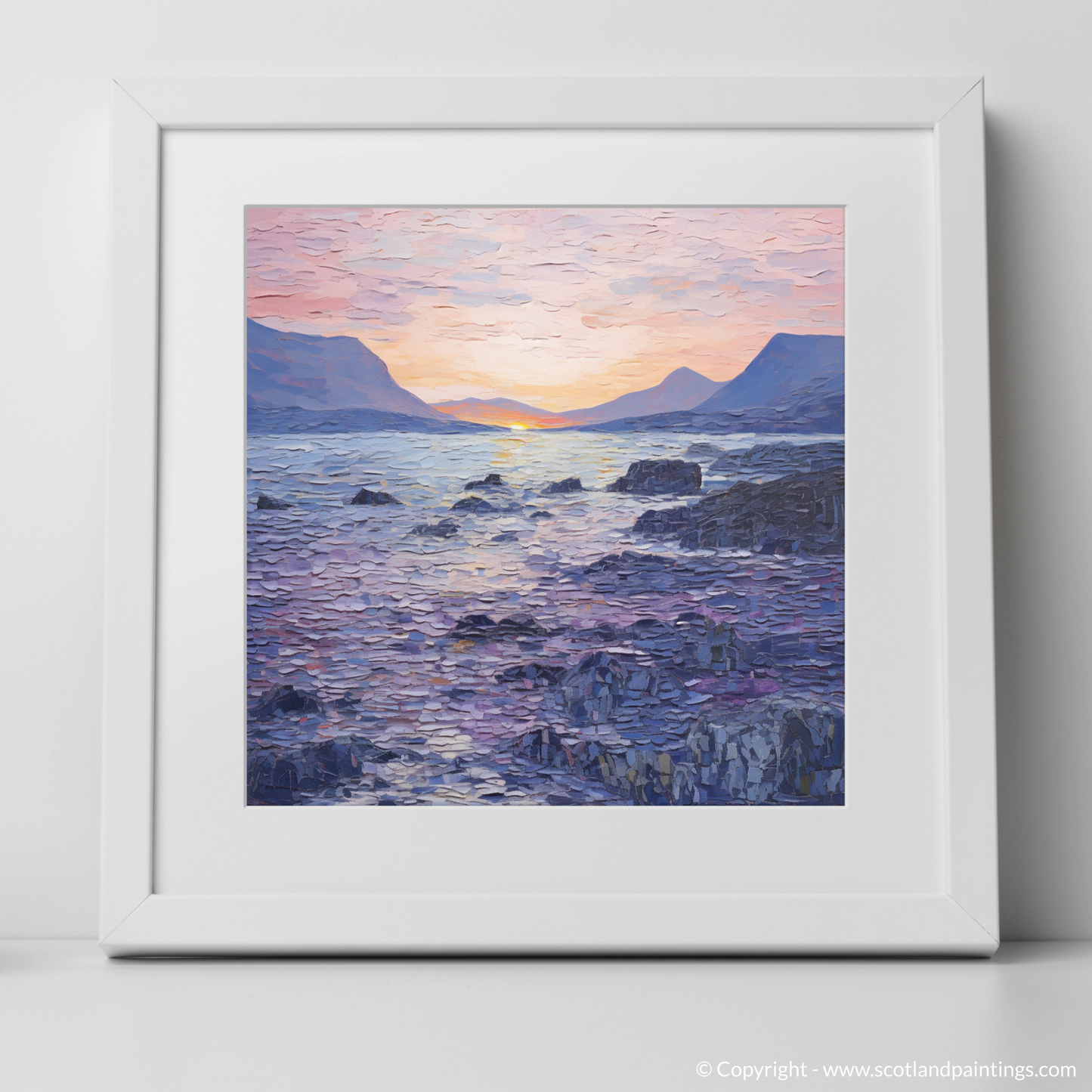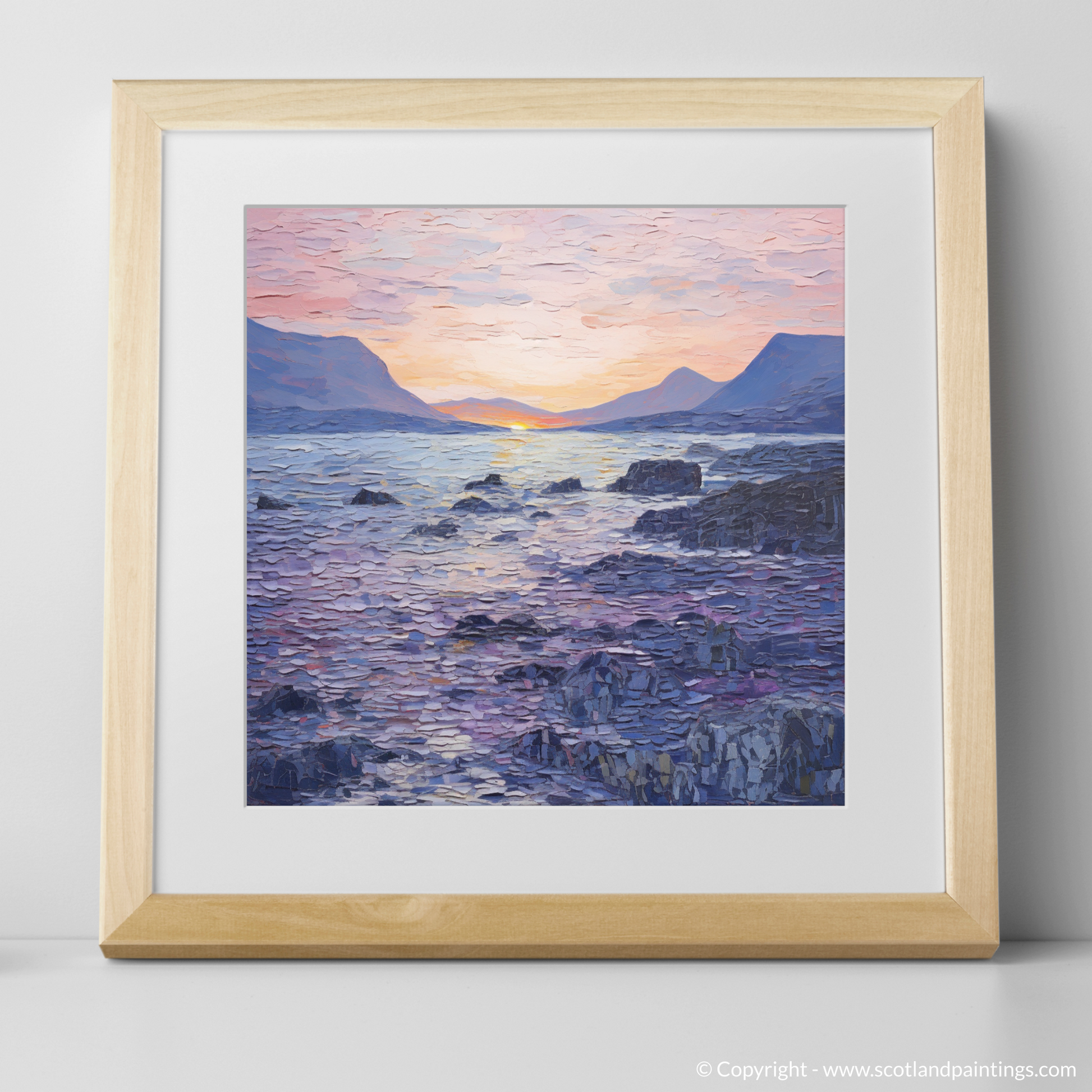 This print, part of the exclusive 'Scottish Coves' collection, encapsulates the soul of Elgol Bay at a moment of quietude. The culmination of colour and form not only reflects the bay's inherent beauty but also prompts a contemplative response from the beholder. Perfect for those who seek to bring the profound serenity of Scotland's coastal splendour into their living space.