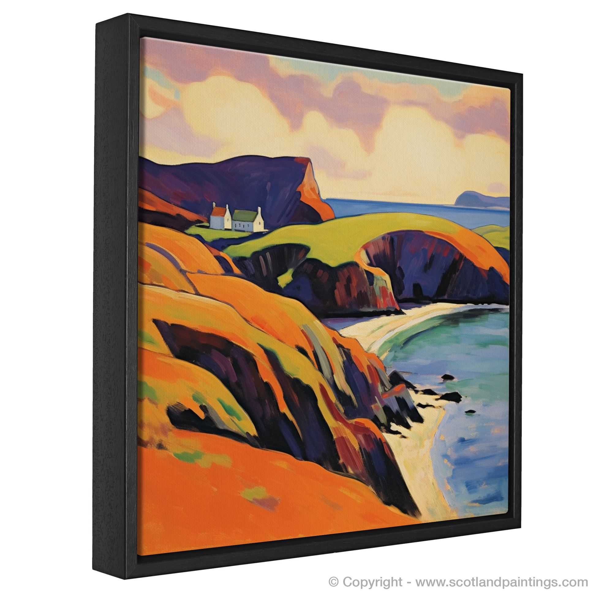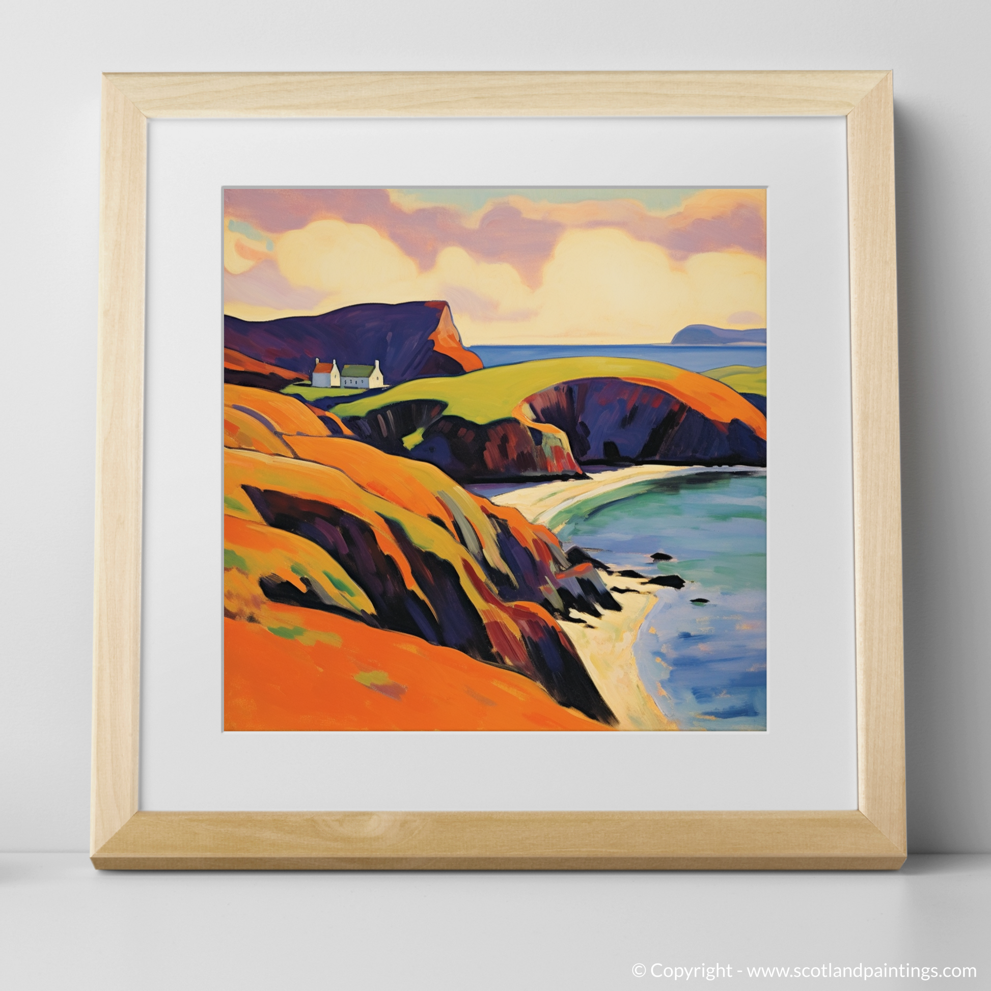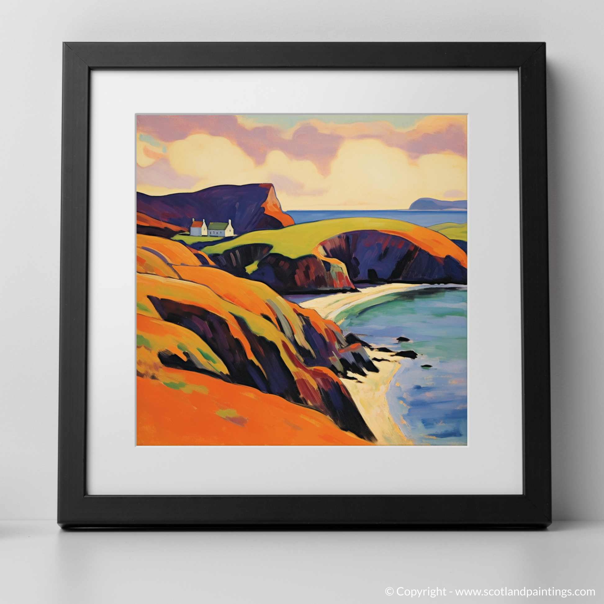 This Fauvism-inspired piece is more than a mere depiction of geography; it is a celebration of sensory delight, a riotous dance of colour that captures the very essence of Shetland's wild and windswept allure. Enthralled viewers will find themselves whisked away to a place where nature's palette is unrestrained and the soul is free to roam.