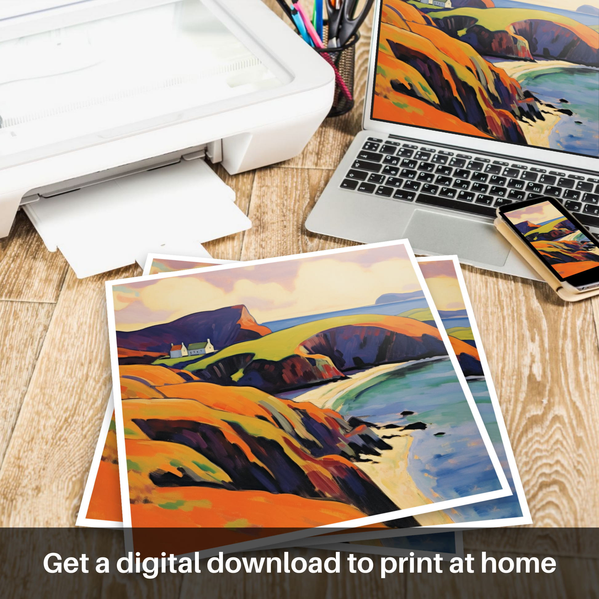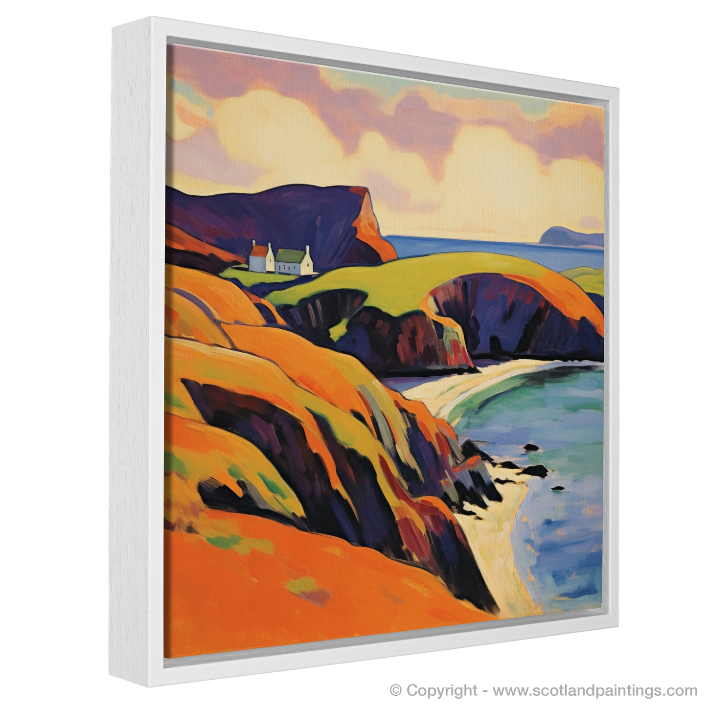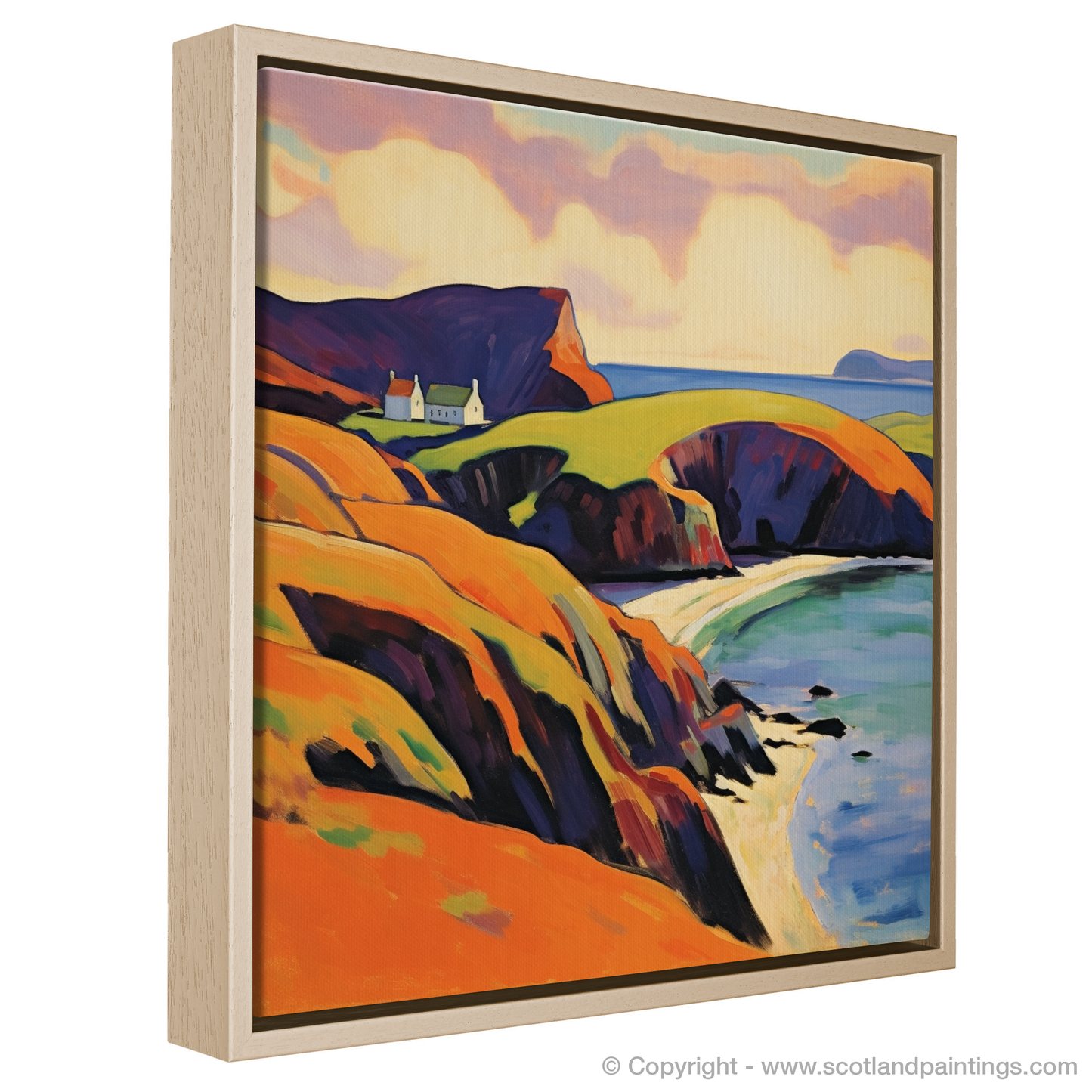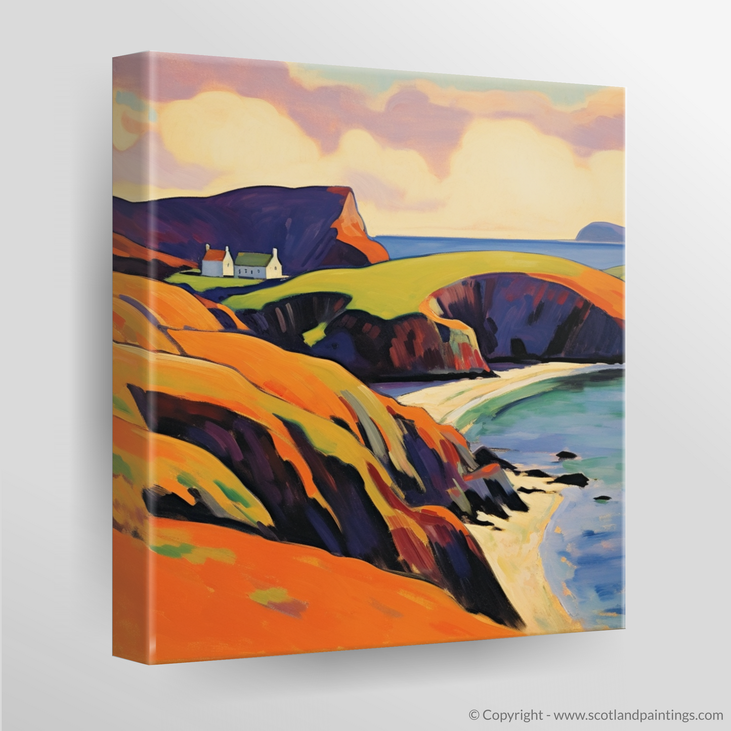 This Fauvism-inspired piece is more than a mere depiction of geography; it is a celebration of sensory delight, a riotous dance of colour that captures the very essence of Shetland's wild and windswept allure. Enthralled viewers will find themselves whisked away to a place where nature's palette is unrestrained and the soul is free to roam.