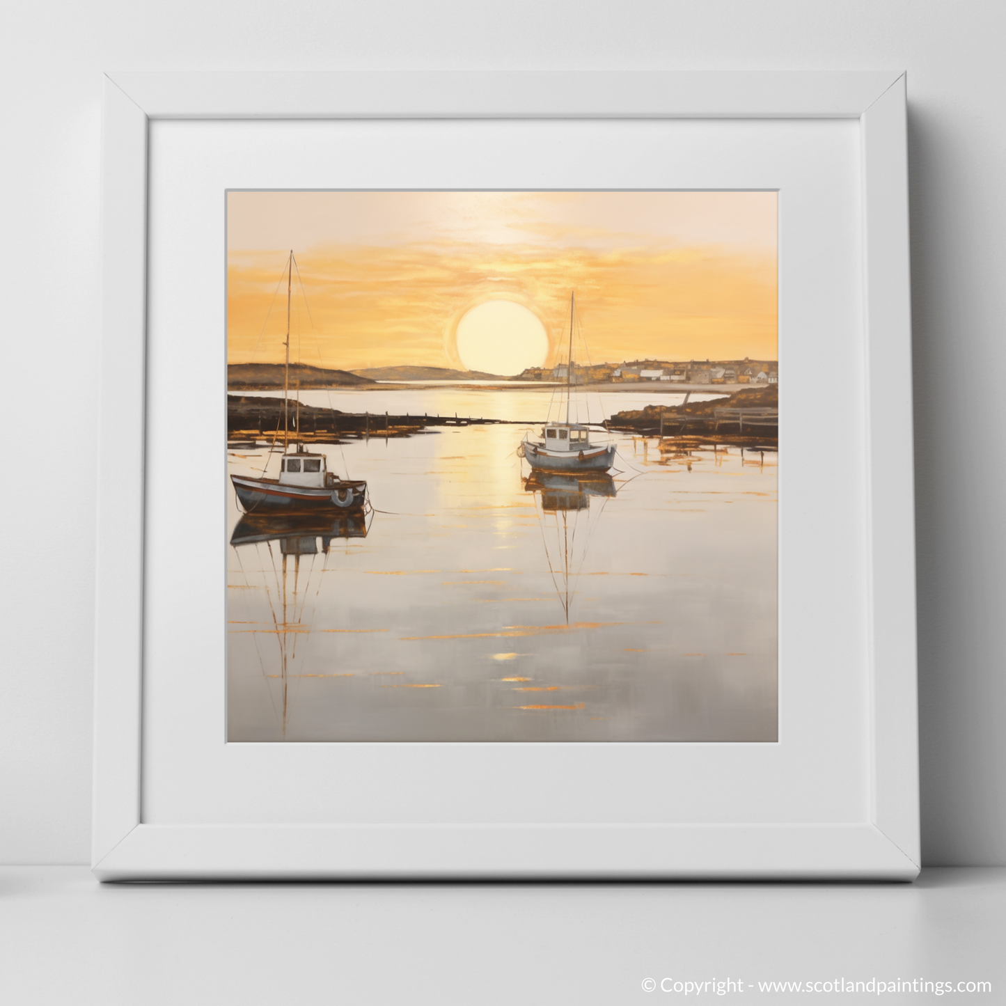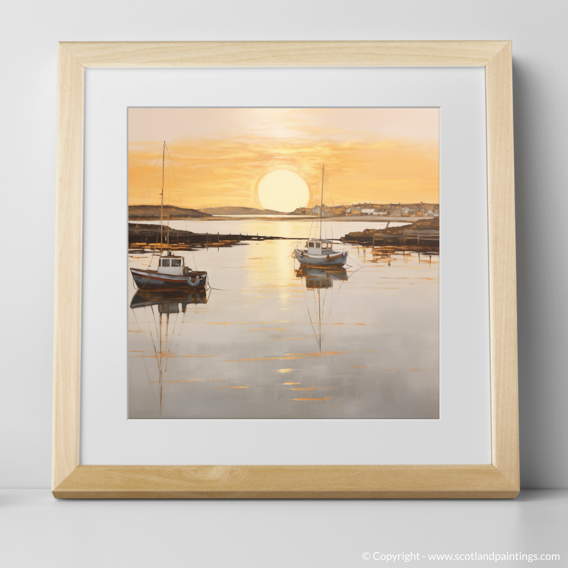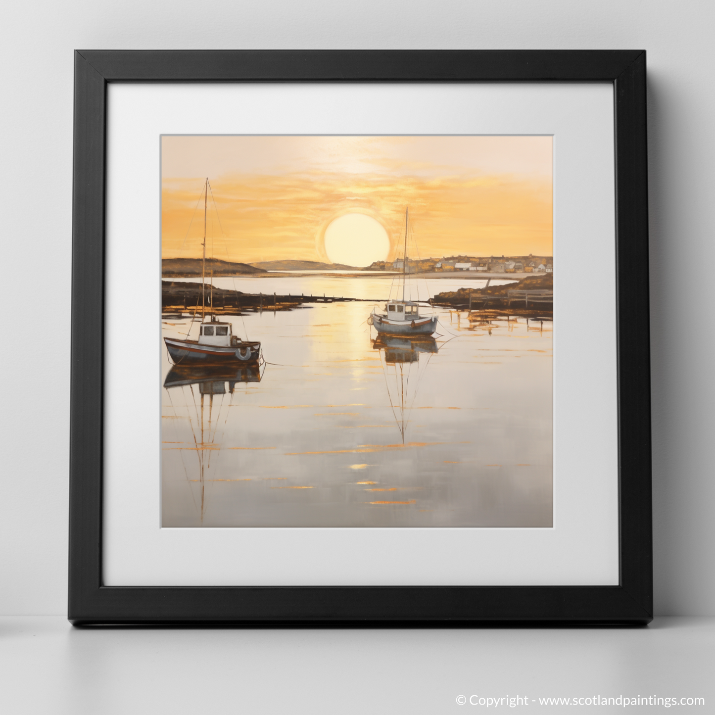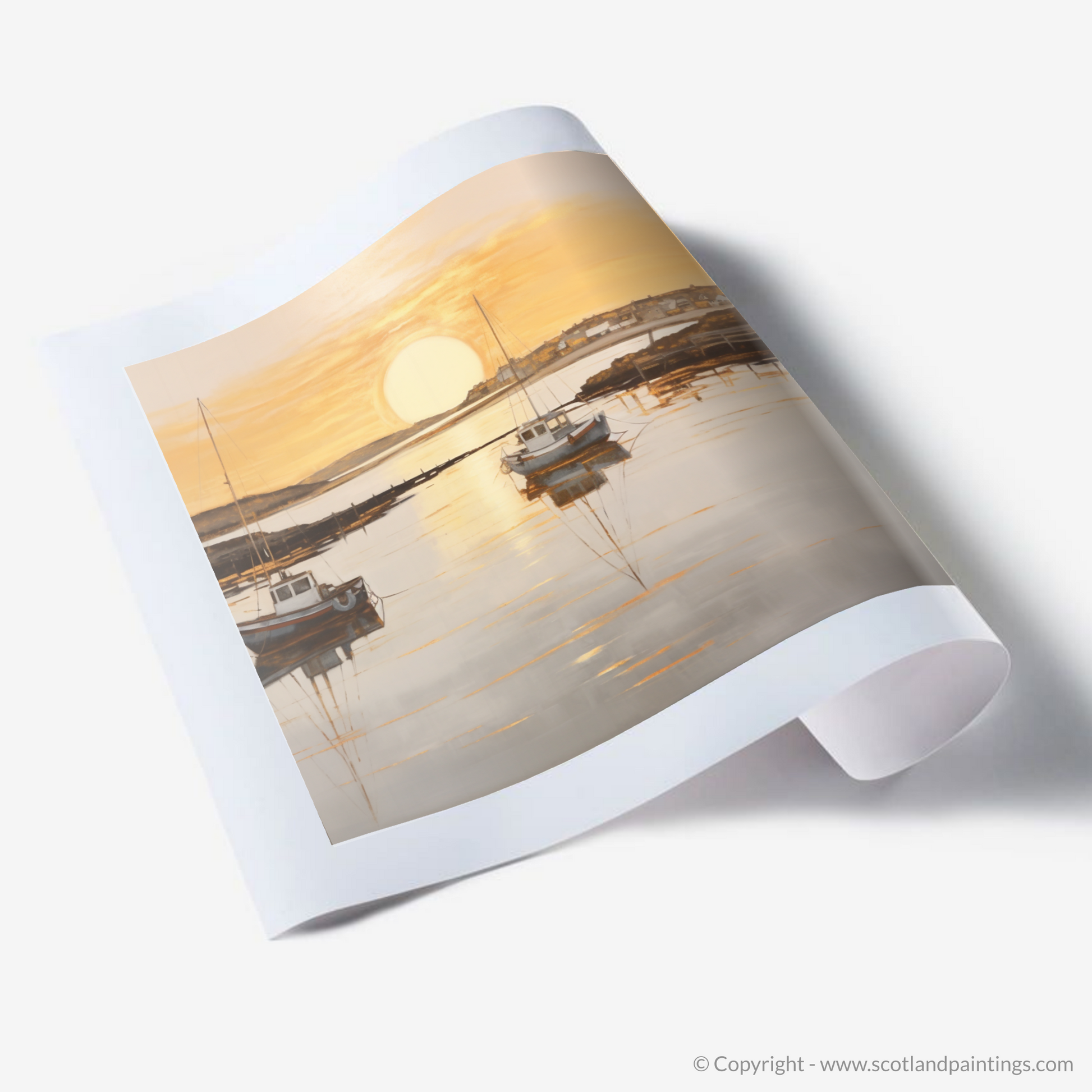 This piece offers a window to a moment frozen in time, where the majesty of nature's daily spectacle is rendered in a style that favours subtlety over grandeur, suffusing any space with the quietude of the Scottish seaside at dusk. Adorning your wall with this print, you'll bring a touch of the coastal calm and understated beauty into your environment, perfect for those seeking a moment of peace in their daily lives.