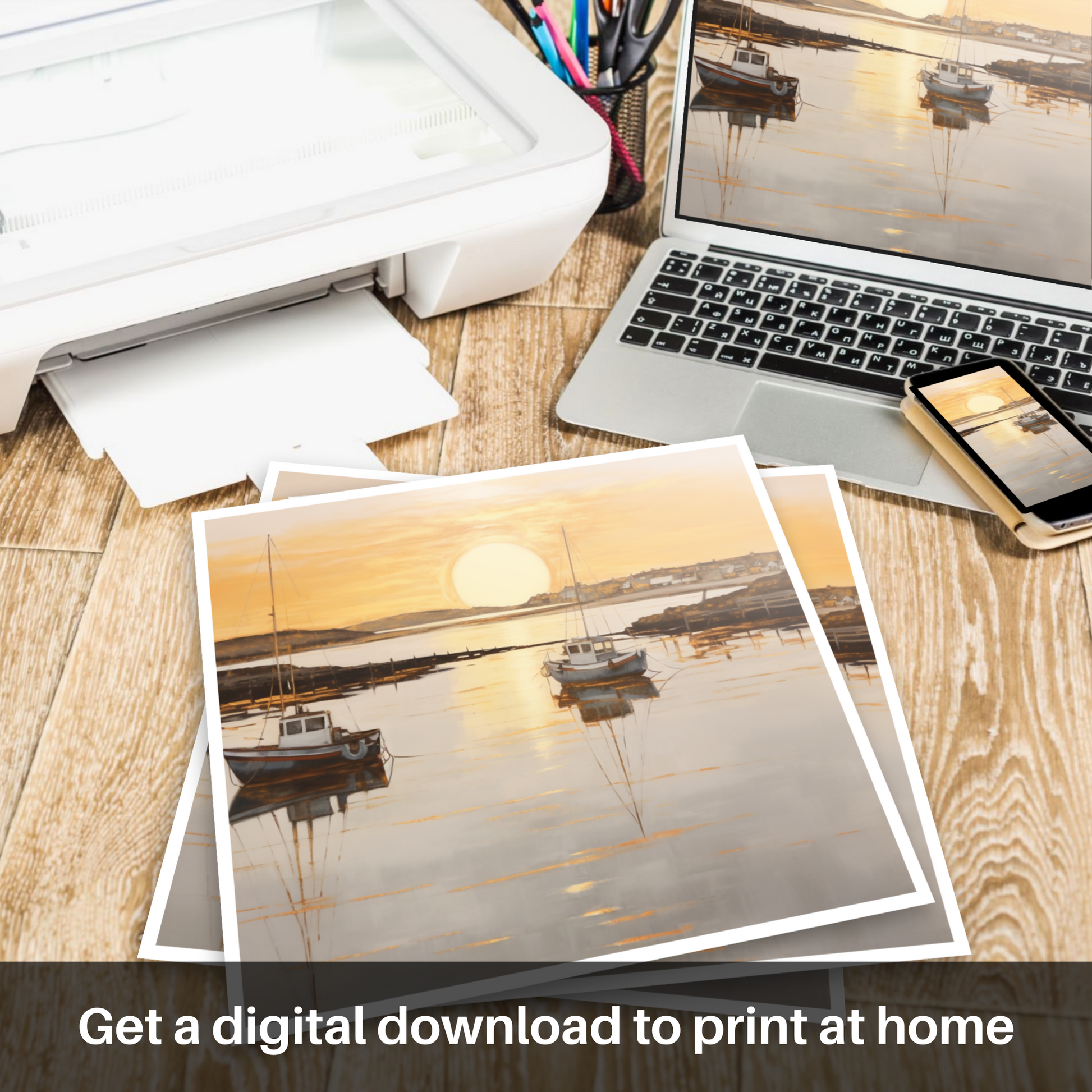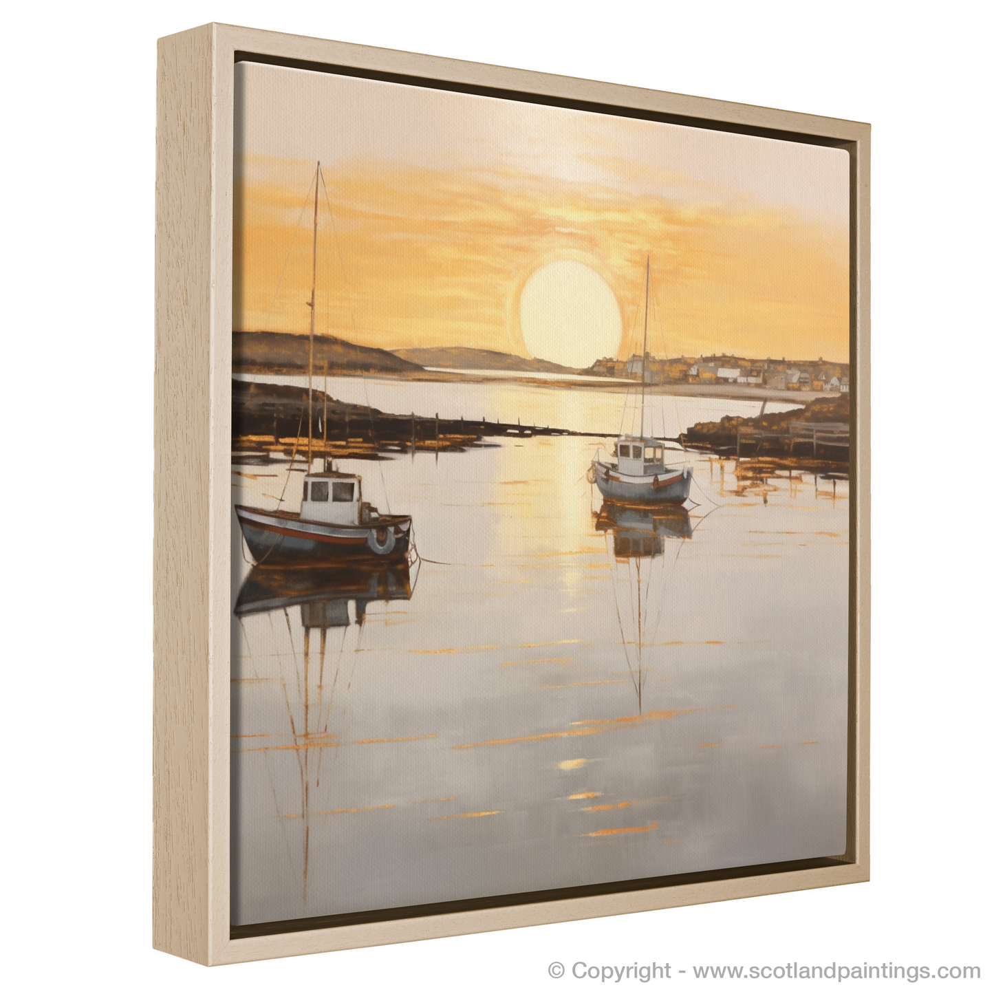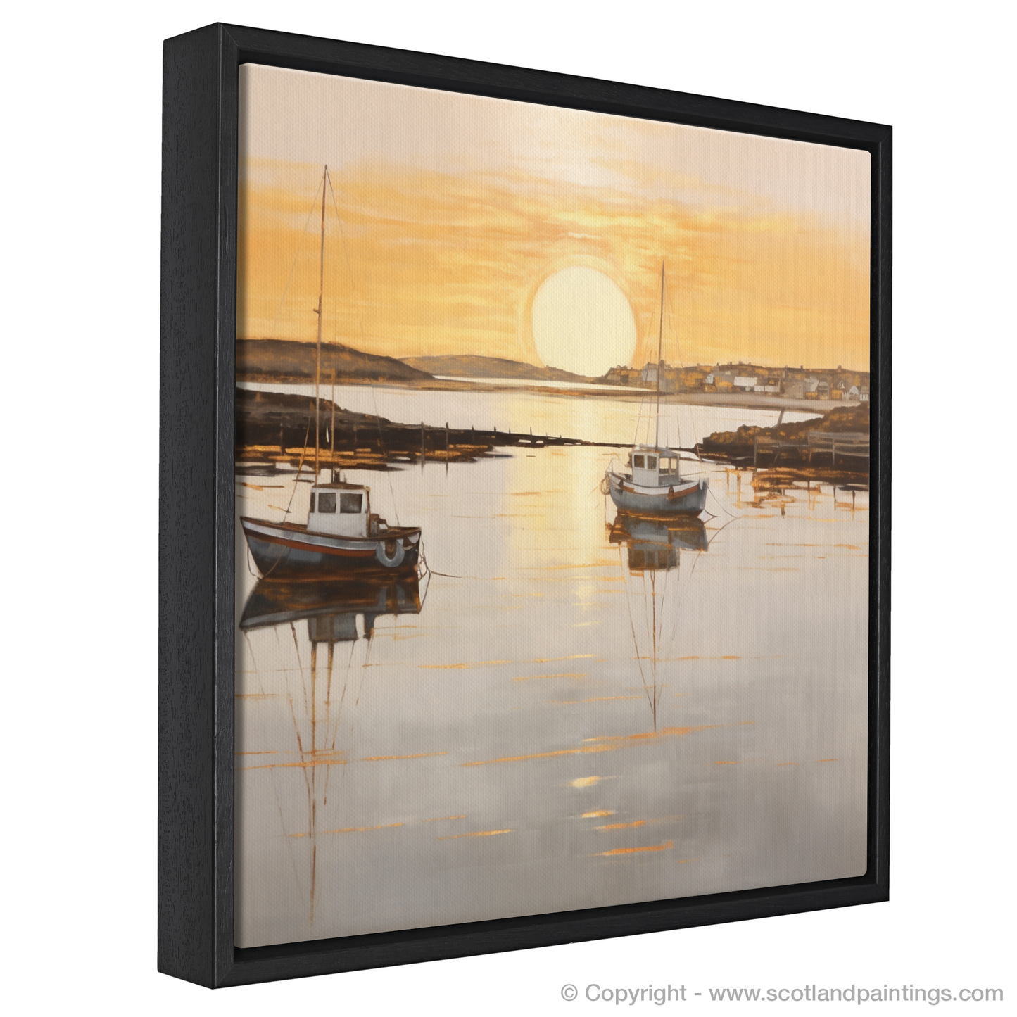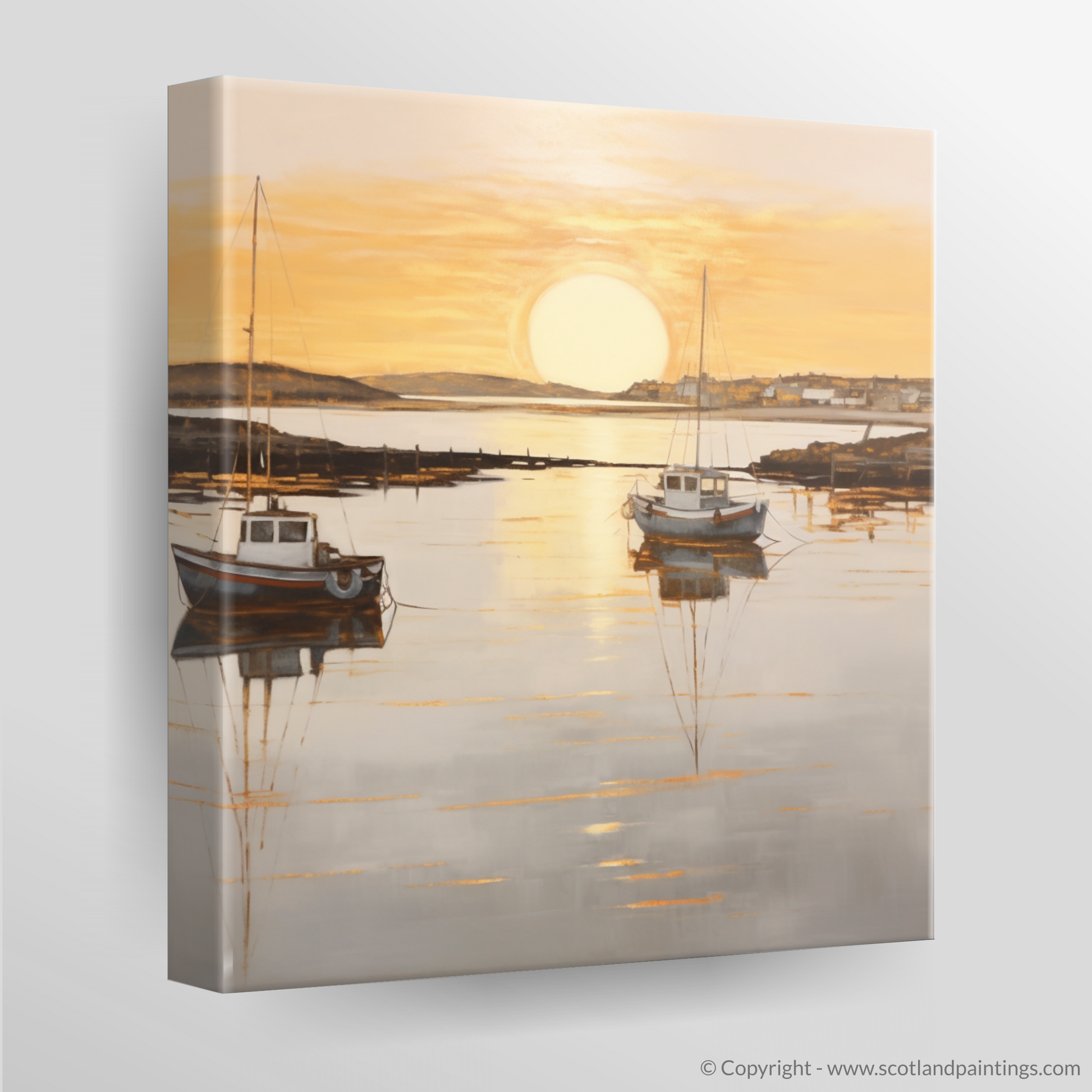 This piece offers a window to a moment frozen in time, where the majesty of nature's daily spectacle is rendered in a style that favours subtlety over grandeur, suffusing any space with the quietude of the Scottish seaside at dusk. Adorning your wall with this print, you'll bring a touch of the coastal calm and understated beauty into your environment, perfect for those seeking a moment of peace in their daily lives.
