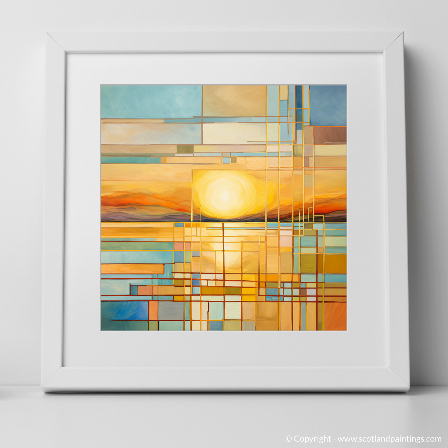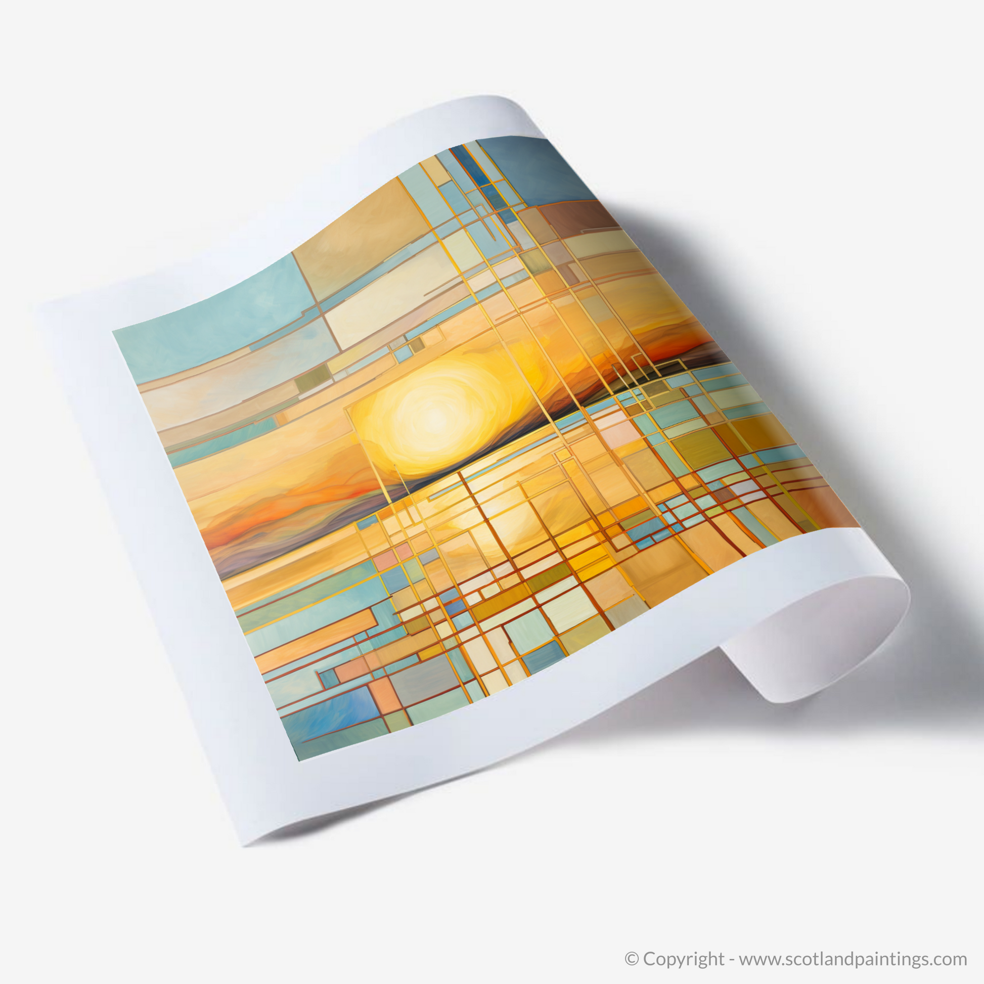 The piece invites contemplation on the harmony of nature's elements, as well as an appreciation for the abstract approach to rendering a scene that many have witnessed but few have captured with such imaginative flair. Evocative and majestic, this print offers a unique take on the well-loved vistas of the Scottish shore, promising to ignite conversation and admiration in any space it adorns.