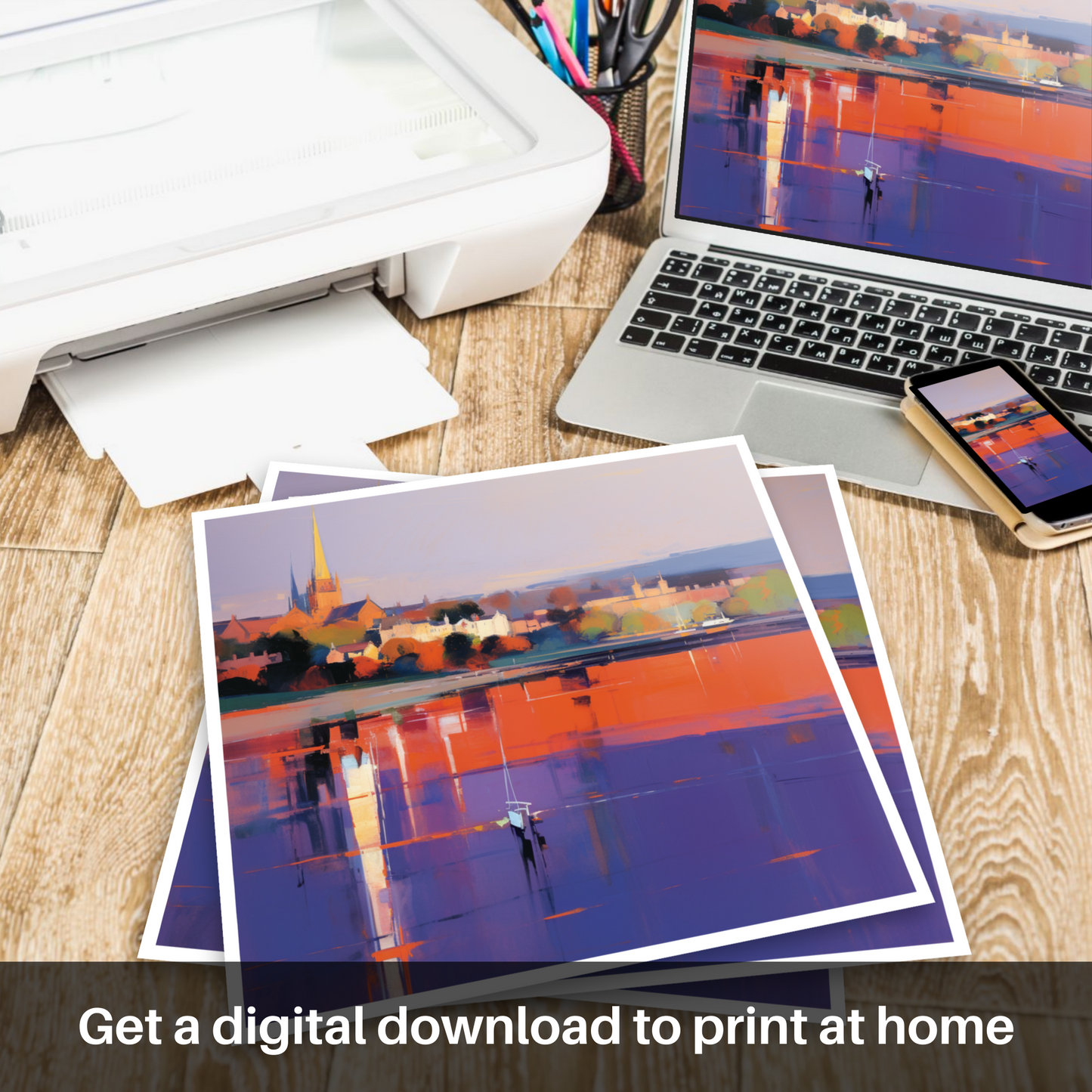 Immerse yourself in the vibrant hues and bold expressions of this contemporary piece, a tribute to the idyllic charm of Perth, Tayside. The print captures the essence of the city, known as the 'Gateway to the Highlands', with a palette that celebrates the dynamic interplay of colour and light.