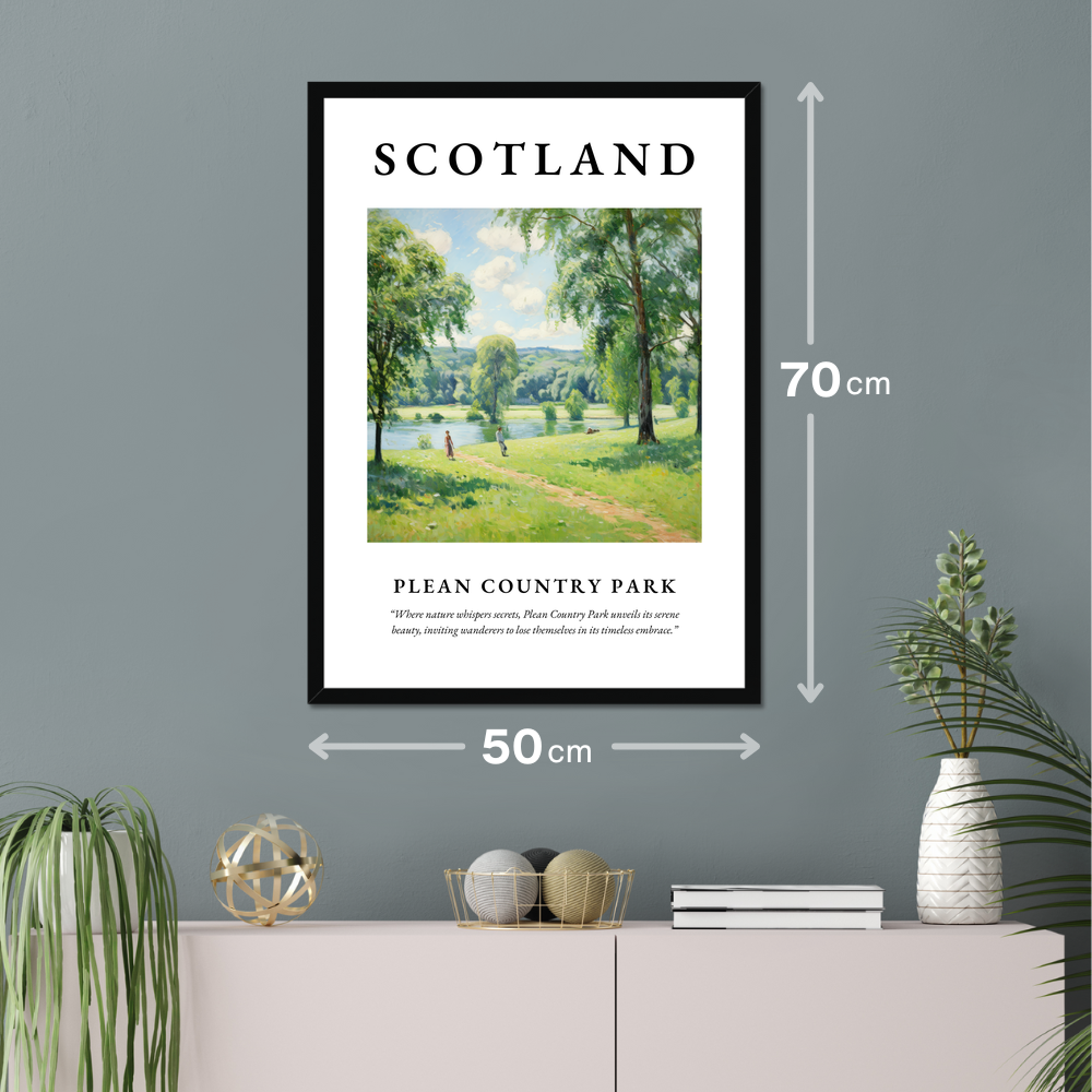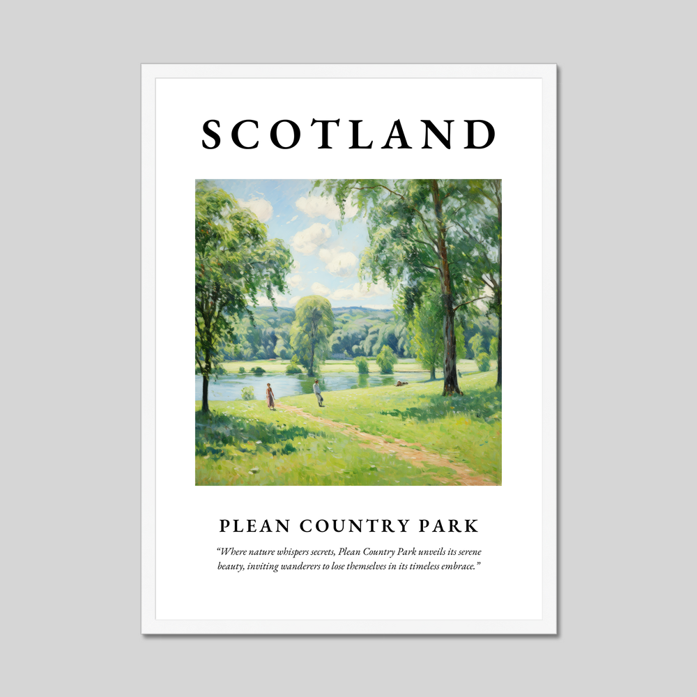 Visitors to the park can enjoy walking trails, cycling paths, and picnicking spots, all while immersed in the serene beauty portrayed in the poster. Each glance at this artwork brings a touch of that experience to your home, letting you escape into the grace and charm of Plean Country Park time and time again.