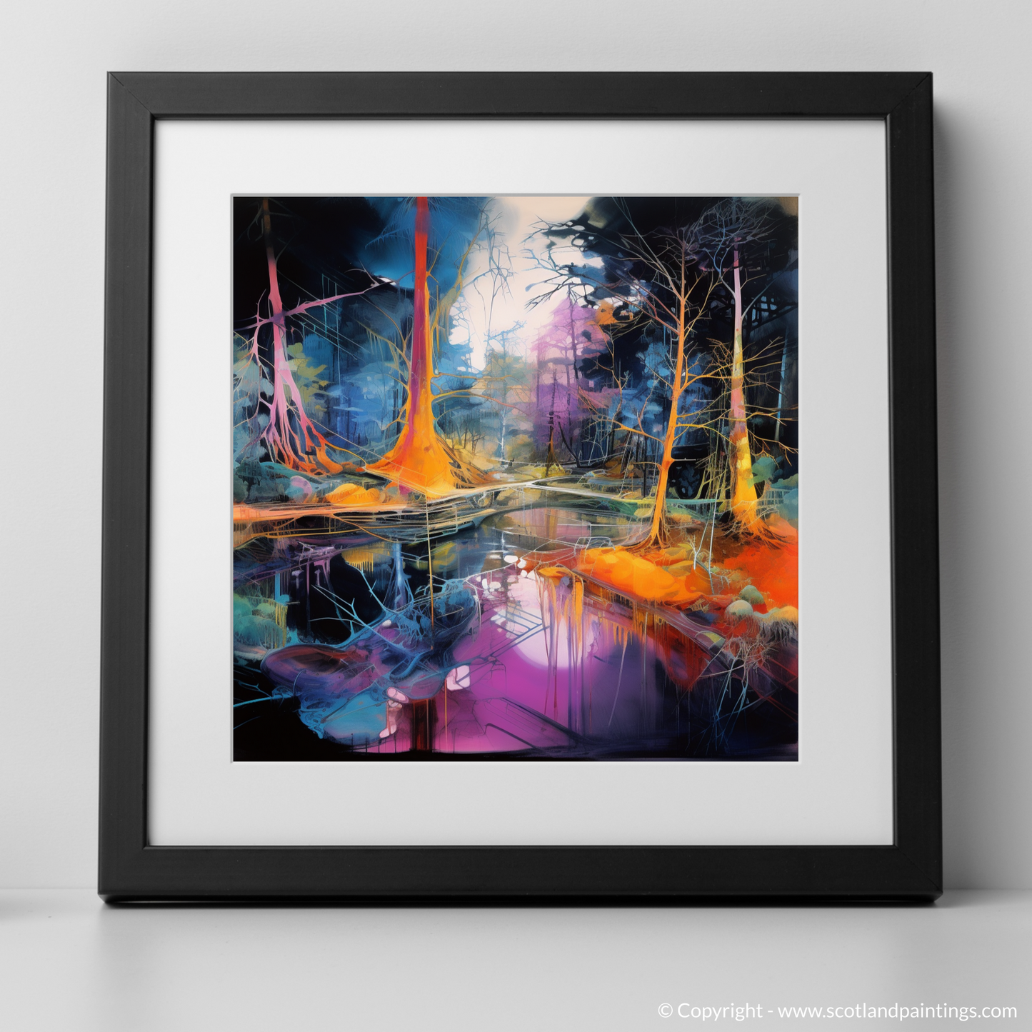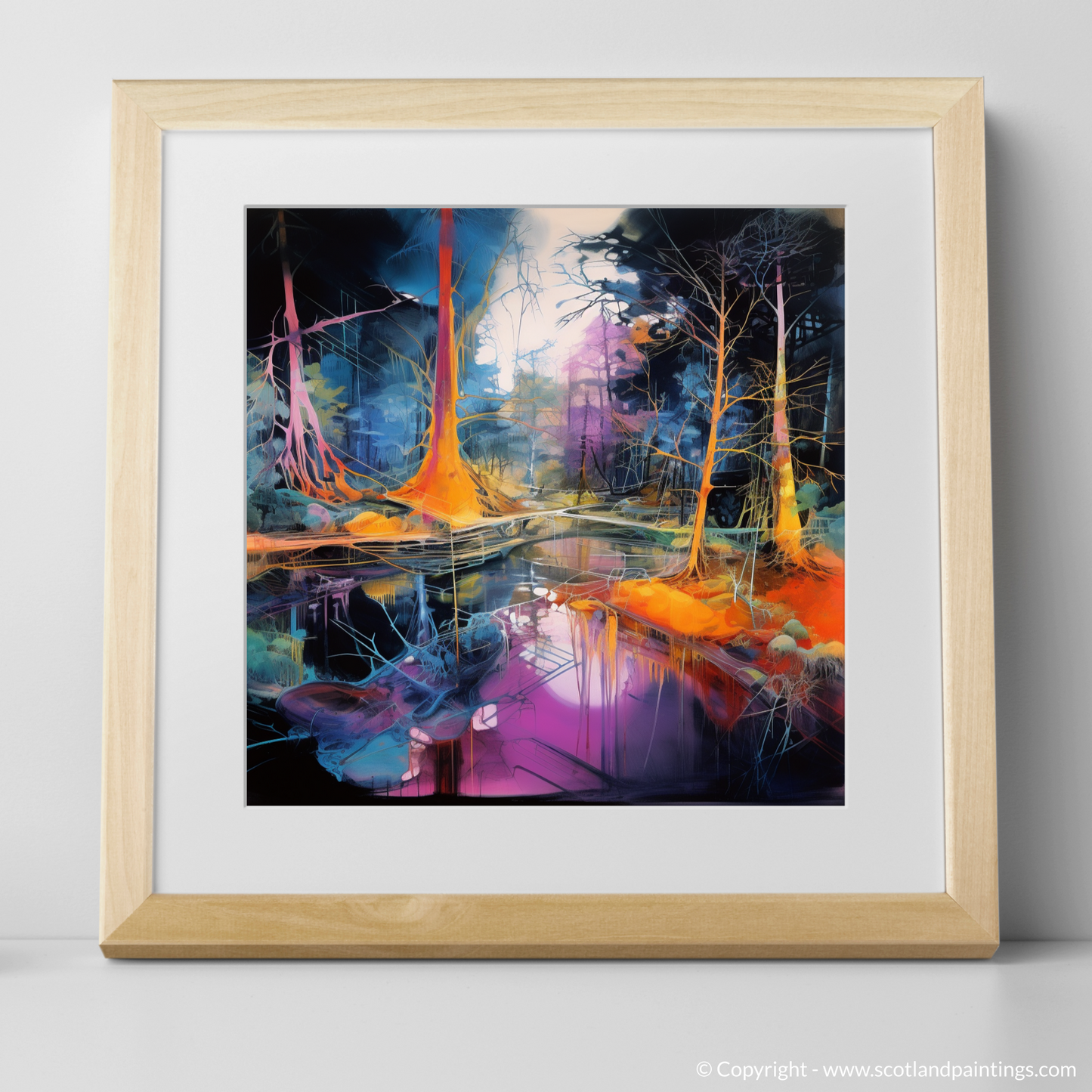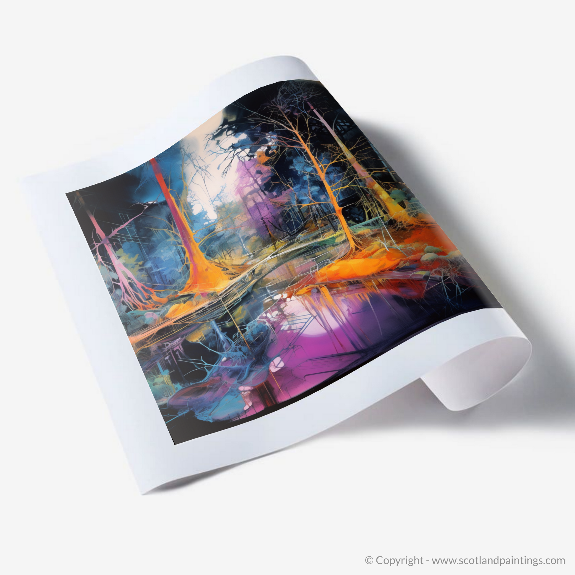 Enhance the character of any room with this print, a kaleidoscopic homage to the Scottish forests, captured in a moment of surreal beauty, ready to unfold its narrative of enchantment day after day.
