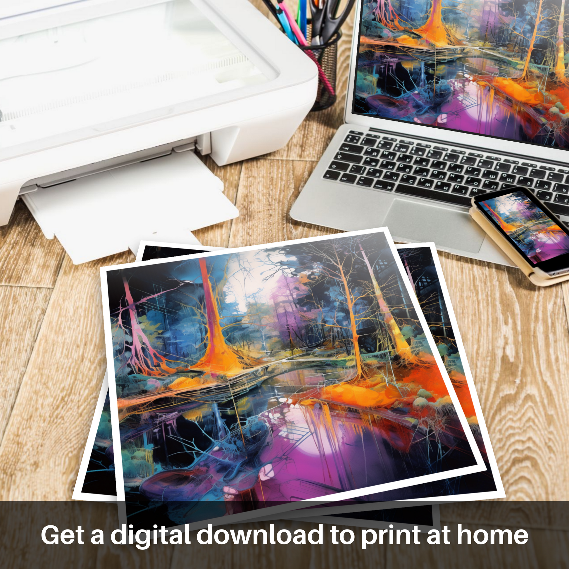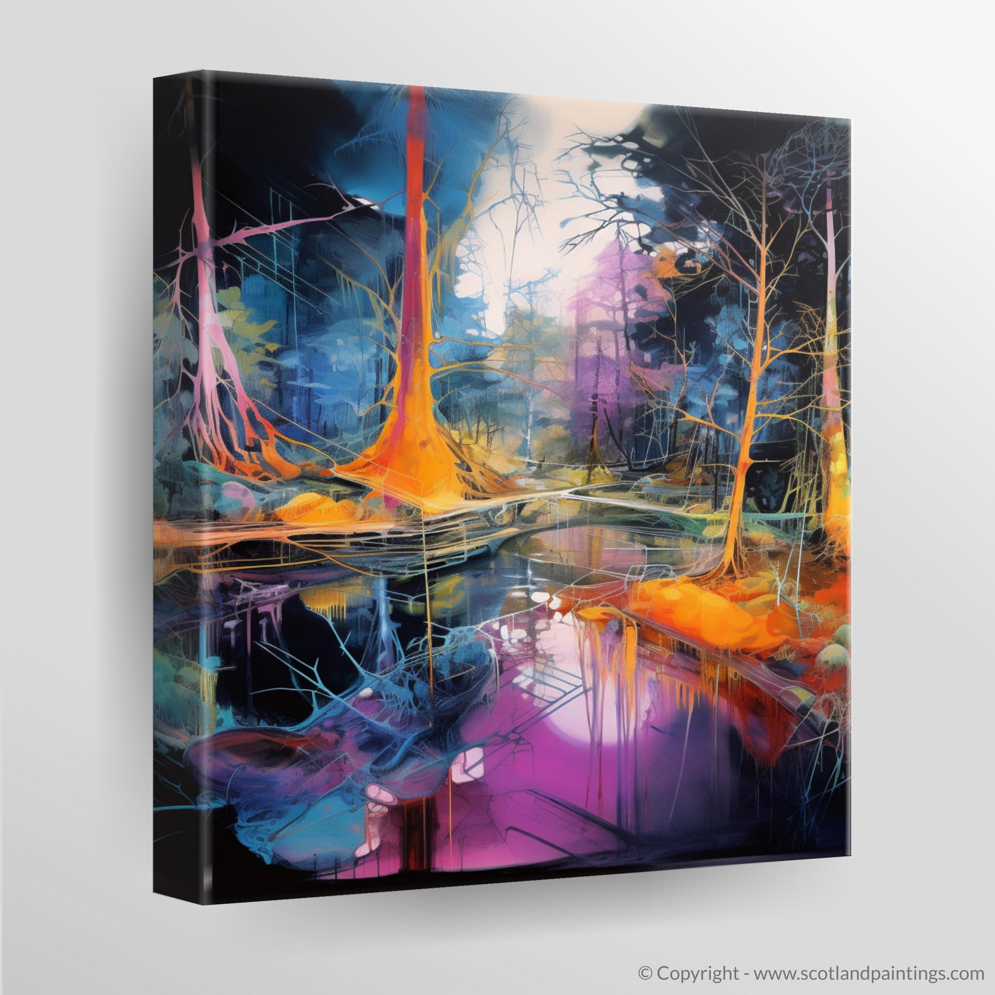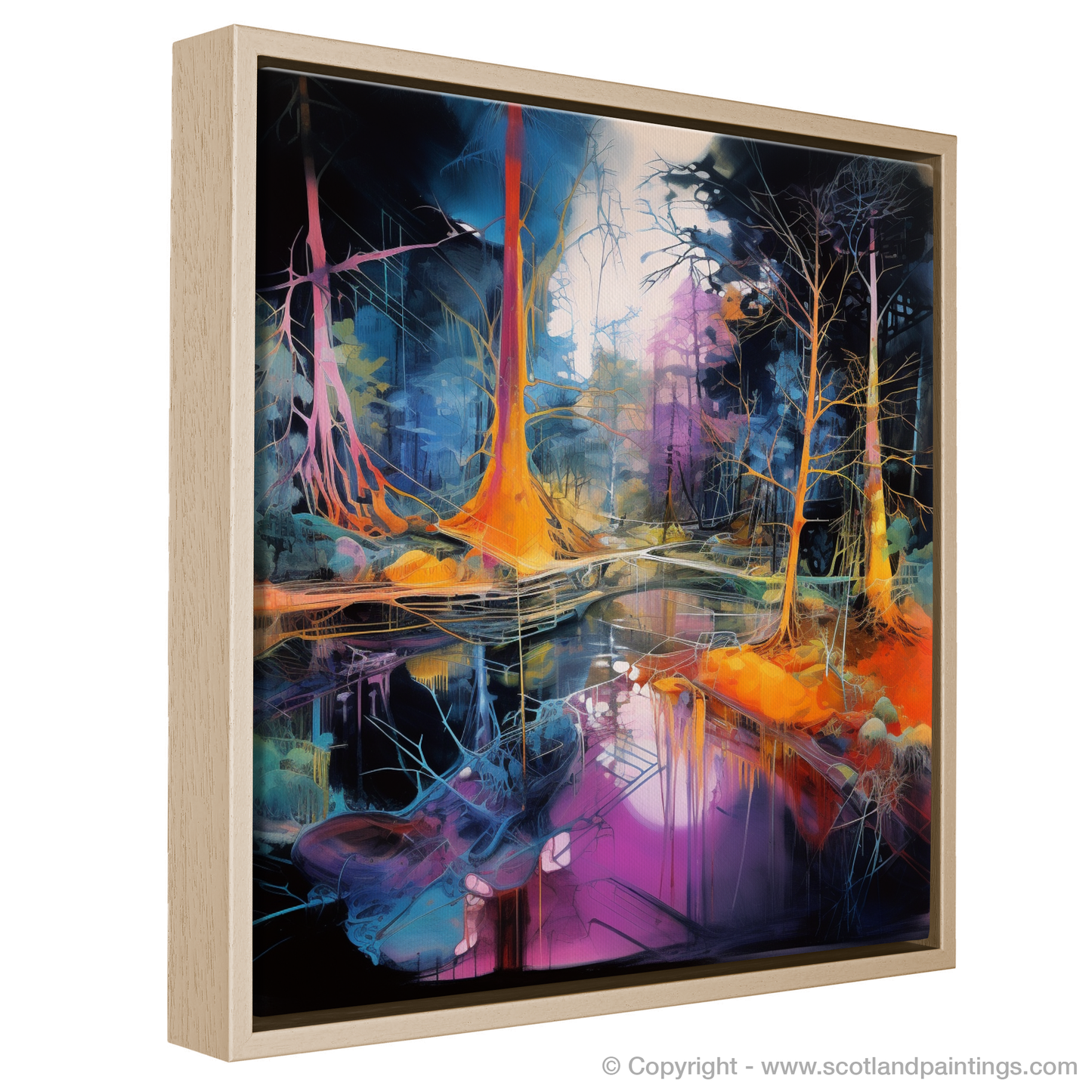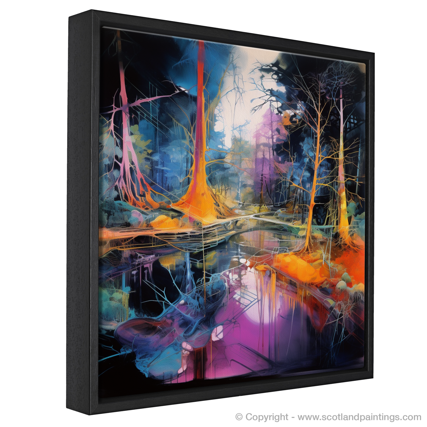 Enhance the character of any room with this print, a kaleidoscopic homage to the Scottish forests, captured in a moment of surreal beauty, ready to unfold its narrative of enchantment day after day.
