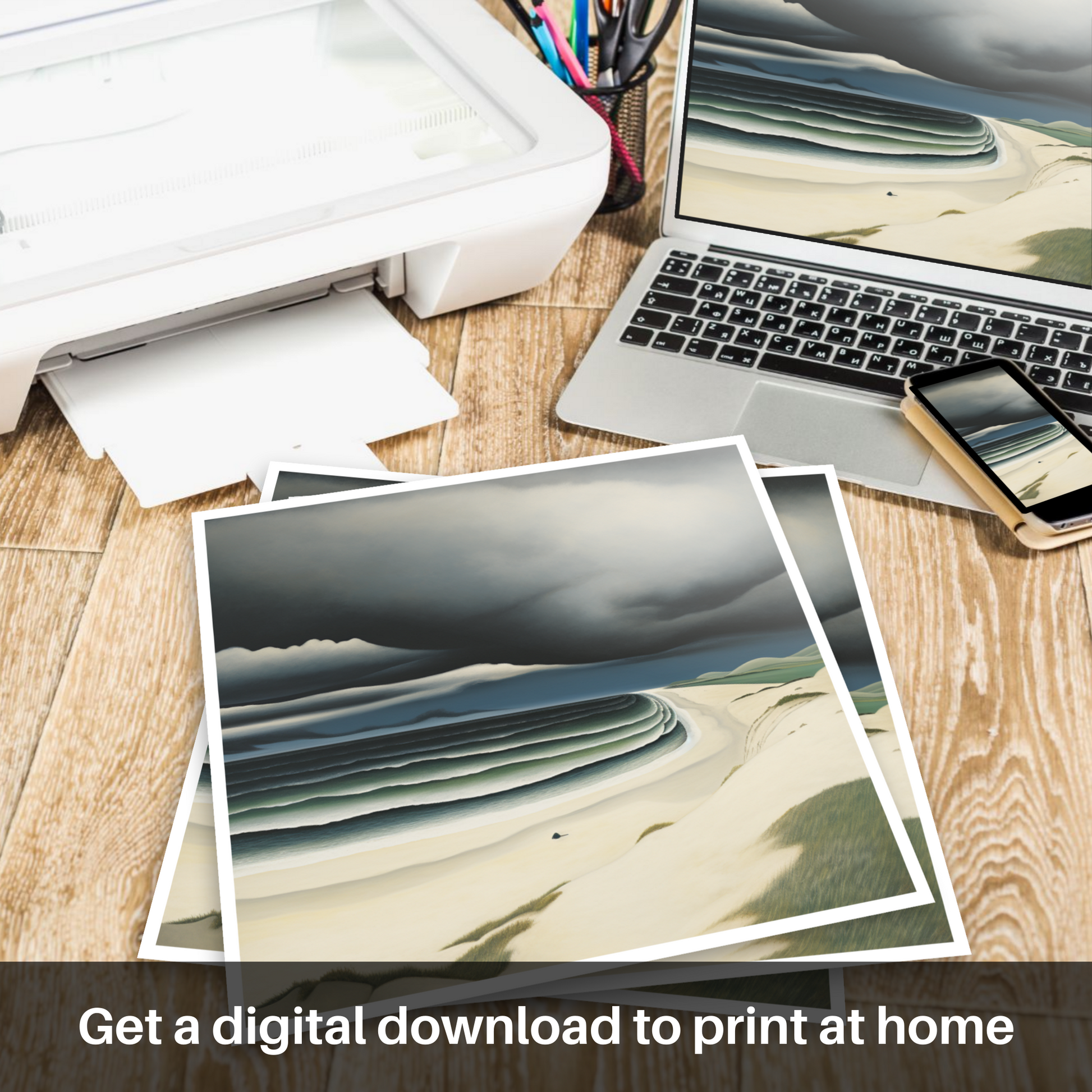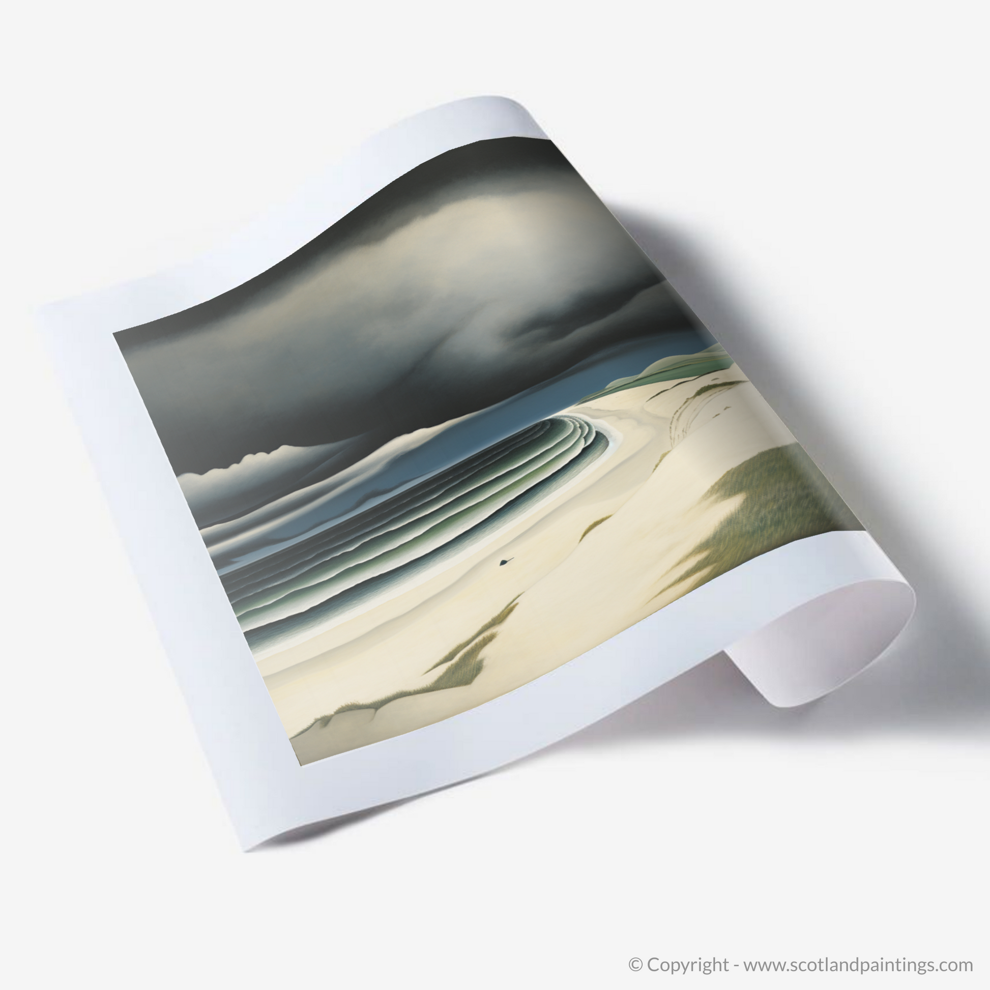 With its naive charm and emotive atmosphere, this print from our 'Scottish Beaches' collection will undoubtedly evoke curiosity and wonder, making it a perfect conversation starter and a serene addition to any personal or professional space.