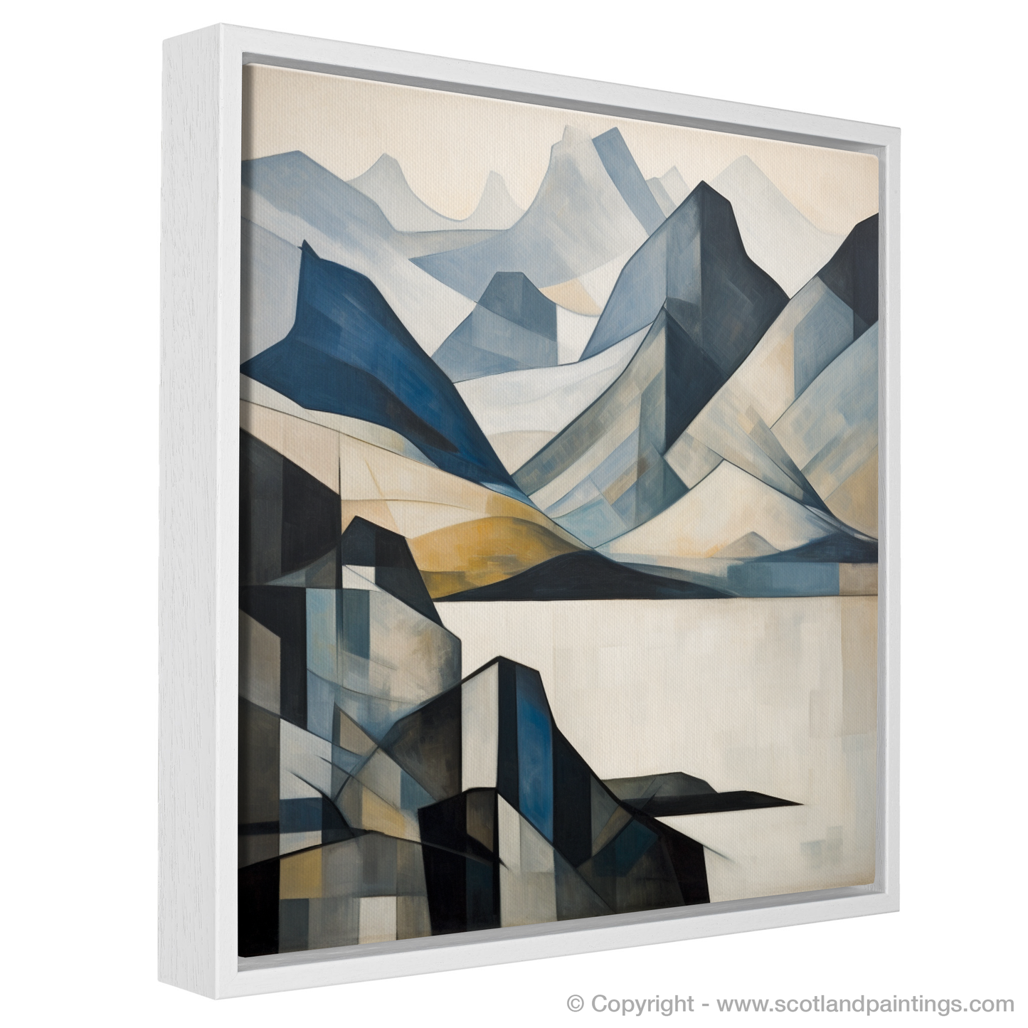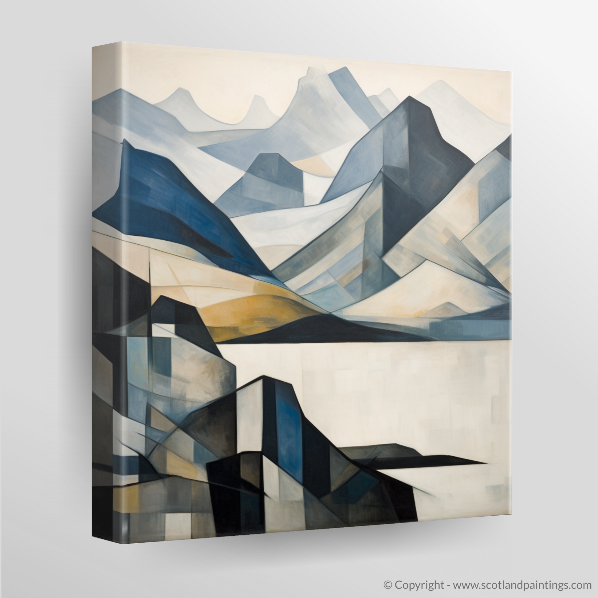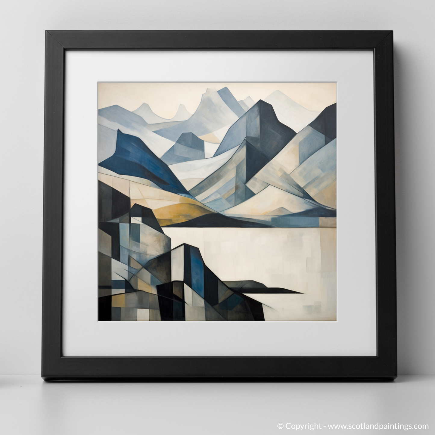 The palette is a sophisticated symphony of earthy tones and cool blues, beautifully capturing the raw essence of the Scottish countryside, while patches of creamy whites and understated beiges give the sense of mist clinging to the mountain peaks. Serene yet powerful, this print juxtaposes the serene beauty of Beinn Bhàn with the bold, abstract qualities of cubist art, eliciting both a sense of tranquillity and intellectual curiosity in the viewer.