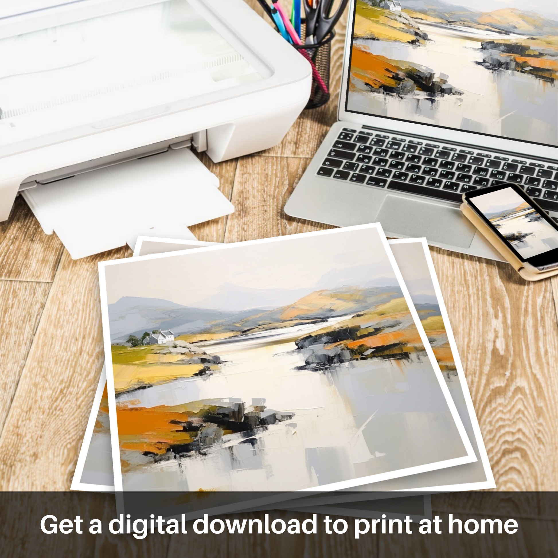 This minimalist piece, a part of the 'Scottish Villages' collection, translates the wild, untamed spirit of the highlands into a tranquil visual experience brimming with the potential for personal interpretation and emotional resonance, perfect for any admirer of the understated beauty Scotland's landscapes have to offer.
