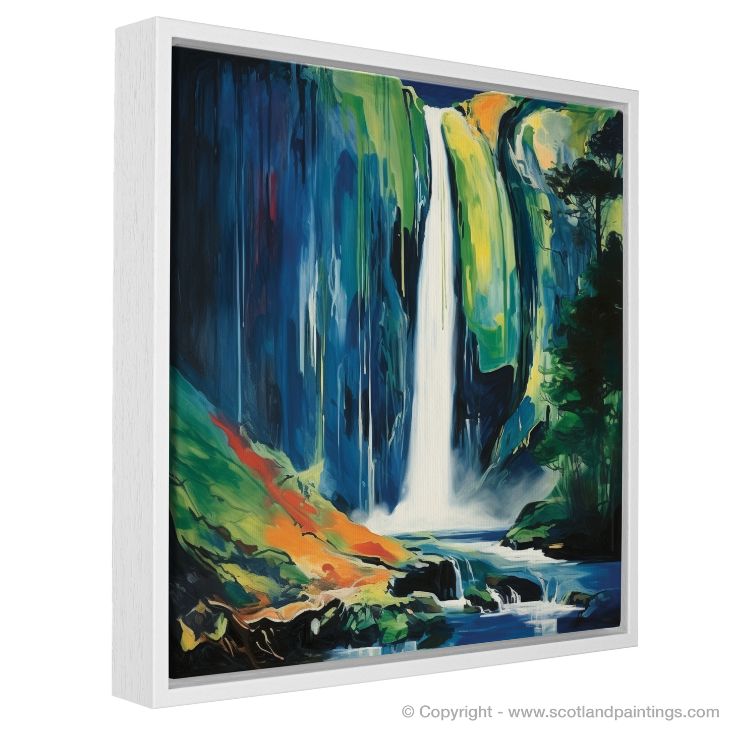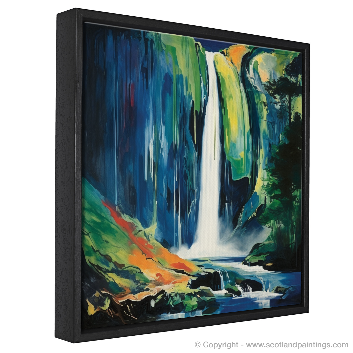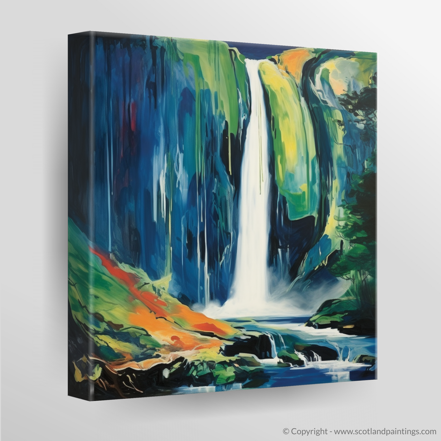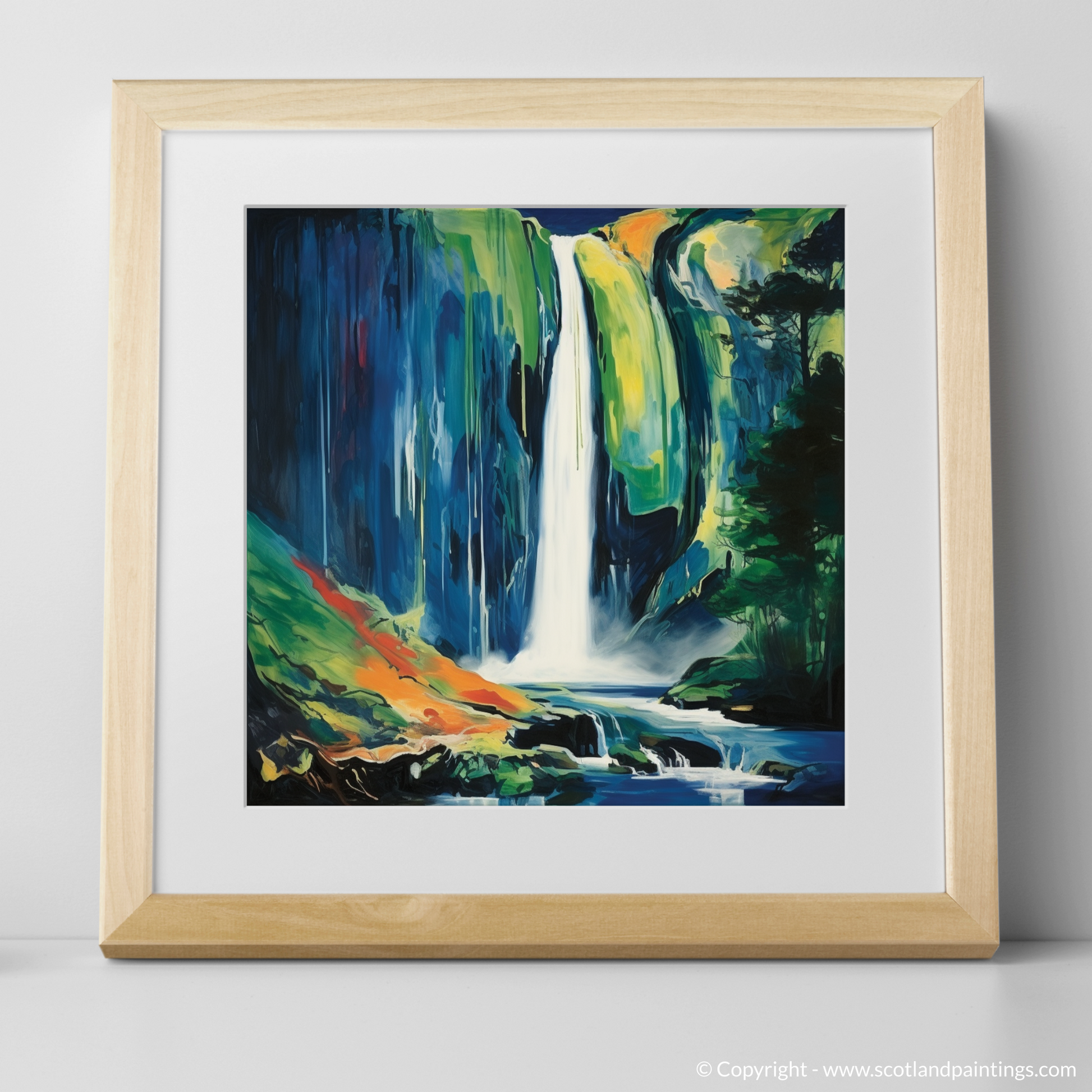 The fluidity of the waterfall is rendered with a minimalist yet dynamic approach, illustrating the power and grace of water in motion. This print is an aesthetic delight for those who yearn for a piece of nature's untouched beauty within their own space, evoking a sense of peace and awe inspired by one of Scotland's hidden gems.