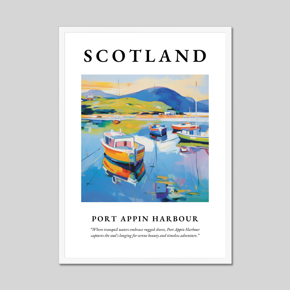 Nestled on Scotland's west coast, Port Appin Harbour is a serene retreat that beautifully balances tranquillity with adventure. It beckons travellers with its peaceful waters and dramatic landscapes, inviting exploration and reflection. Known for its captivating vistas and warm community, the harbour holds a special place in the hearts of those who visit. Pair this striking artwork with the story of Port Appin Harbour, and you invite the spirit of Scotland into your home—a daily reminder of where natural beauty and cultural heritage meet.