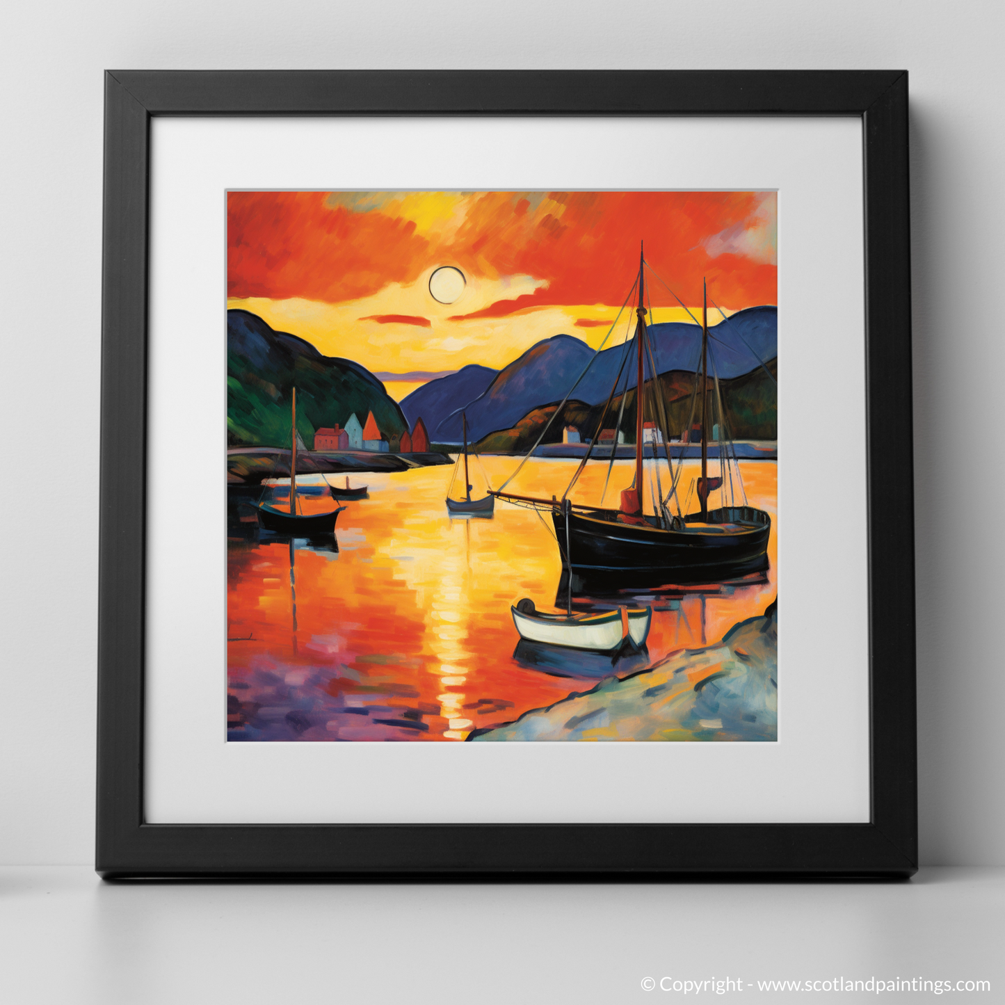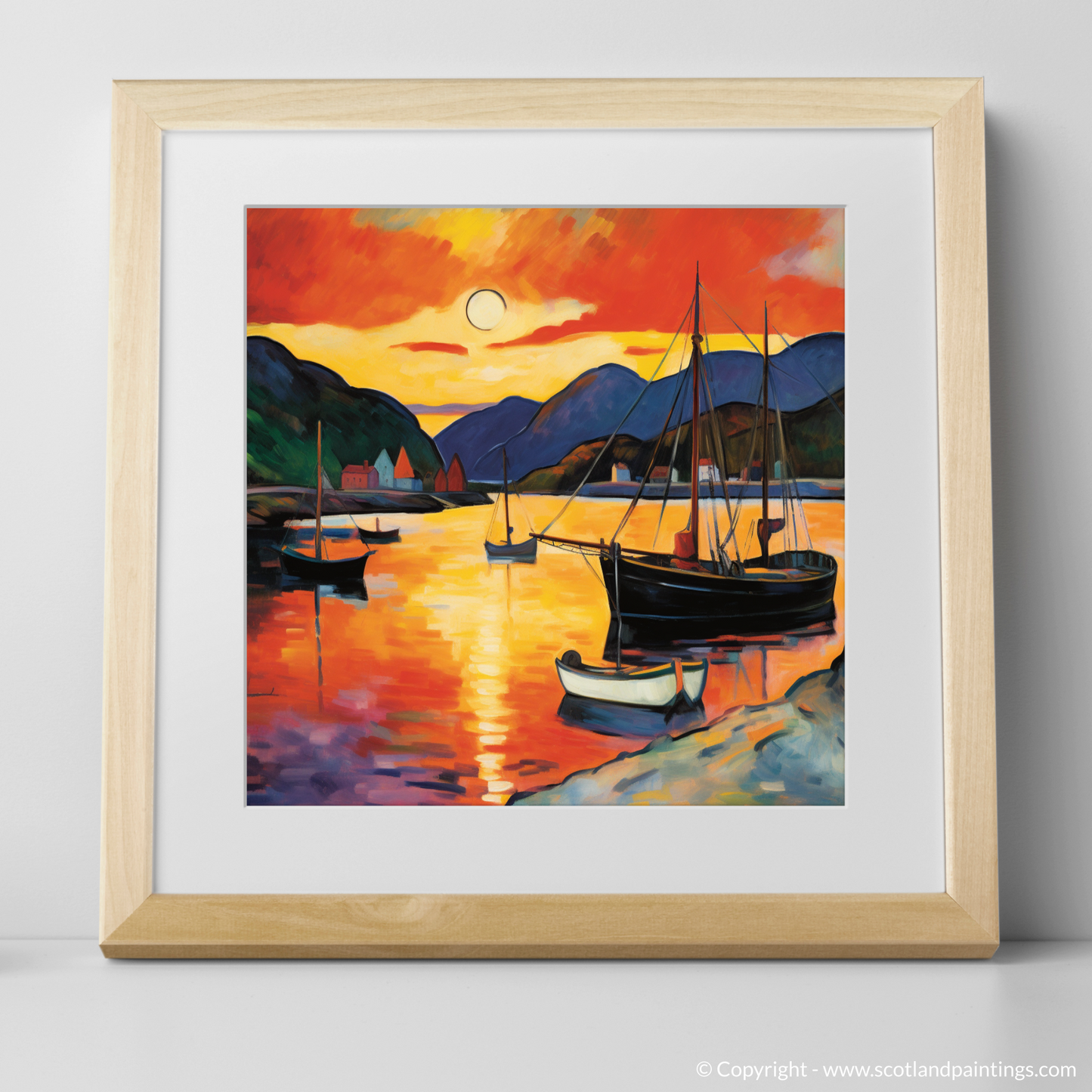 A print that celebrates both nature's spectacular light show and the mesmeric charm of Scottish Harbours, this piece stands as an arresting addition to any space, inviting viewers to dwell within the warmth and beauty of Craobh Haven at its most magical moment.