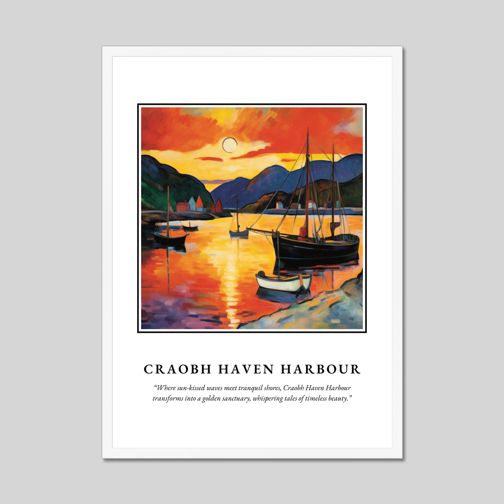 A visit to Craobh Haven promises a palette of experiences — from the gentle lap of the waves against the harbour walls to the warm embrace of the setting sun painting the landscape in shades reminiscent of our striking poster print. Allow this artwork to transport you back to this sanctuary whenever you gaze upon it, and cherish the timeless allure of Craobh Haven Harbour in your home.