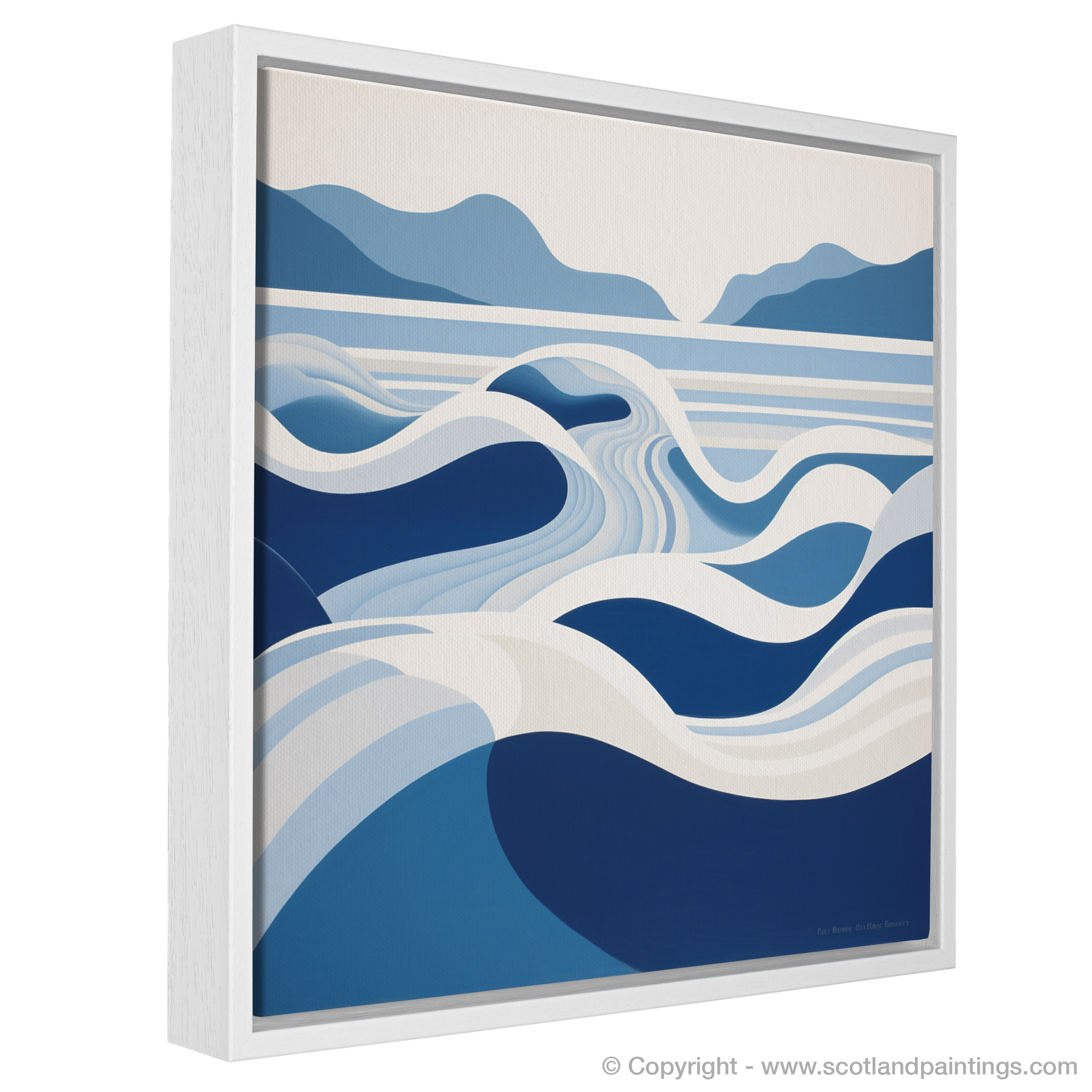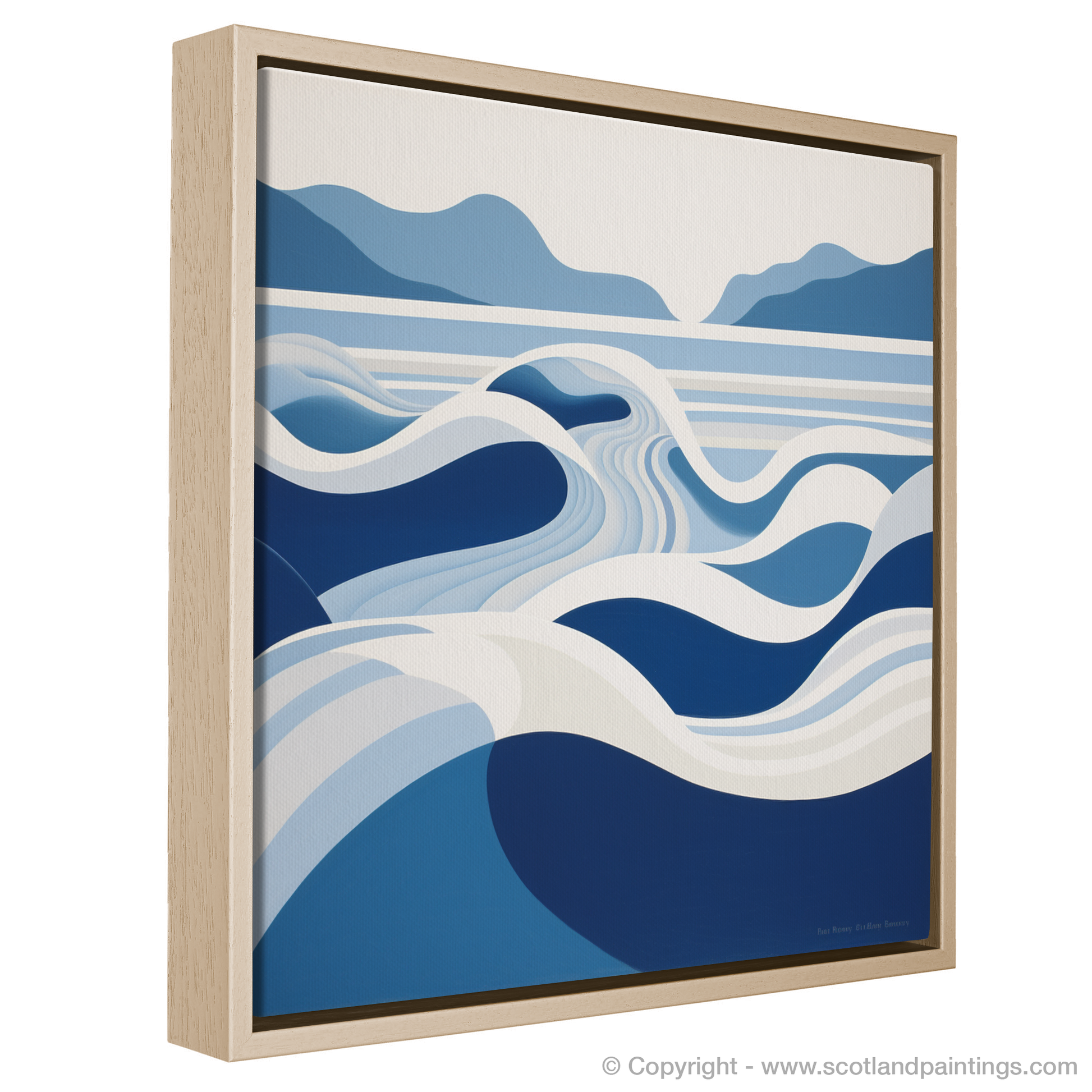 A mesmerising contrast unfolds through the interplay of gentle cerulean ripples and the deep indigo depths, evoking the bay's dynamic character under the ever-changing Scottish light. Gentle curves soften the abstract composition, inviting the viewer to feel a sense of movement and depth, as if standing at the shore's edge, gazing into the horizon where sky meets sea.