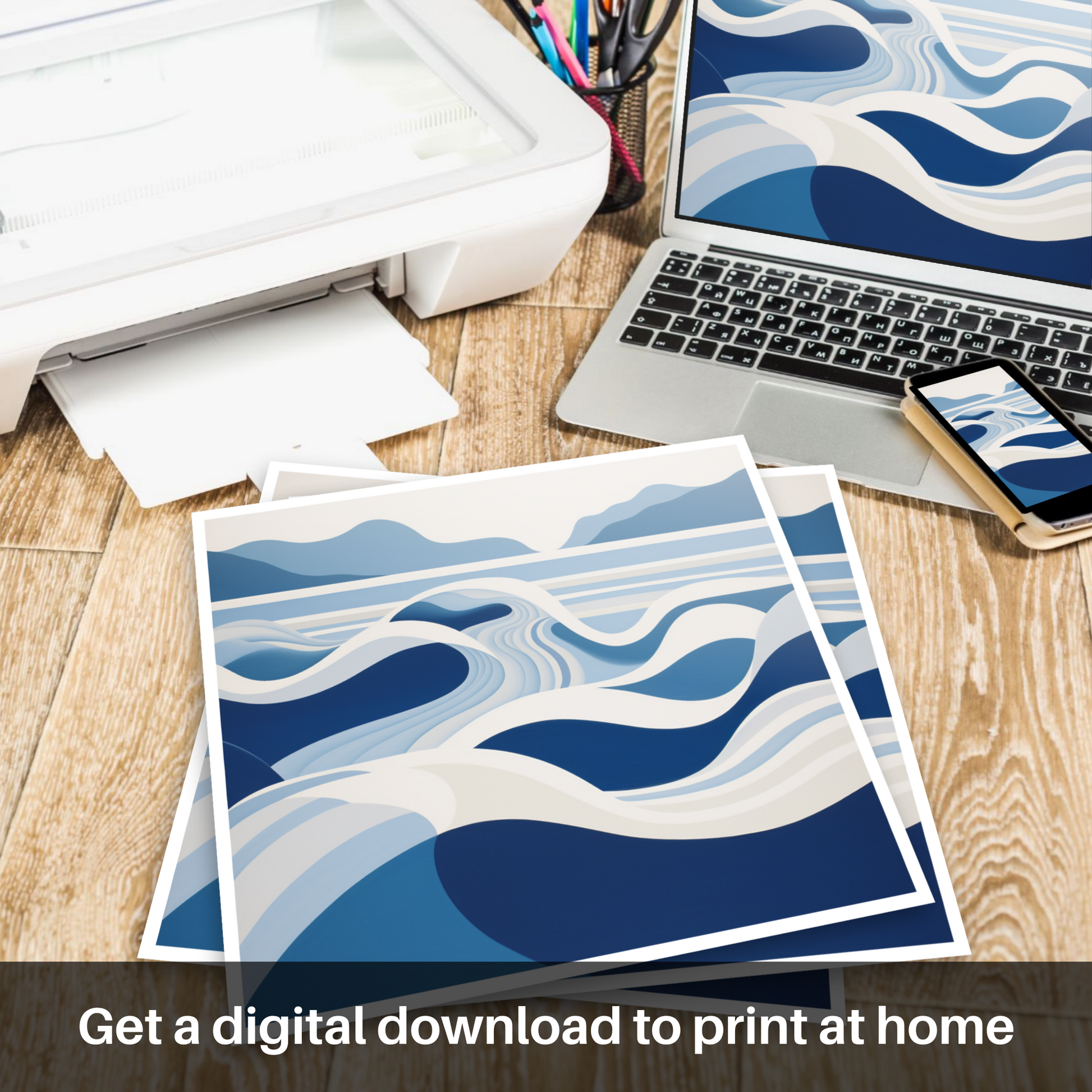 Immerse yourself in the fluid beauty of the Scottish coast with this entrancing abstract depiction of Kiloran Bay, Isle of Colonsay. Let your eyes dance across the undulating forms and soothing hues that conjure the rhythmic serenity of sea swells and coastal breezes. This piece is a symphony in blue, where varying shades ebb and flow in harmonious motion, capturing the tranquil essence of the cove's waters.