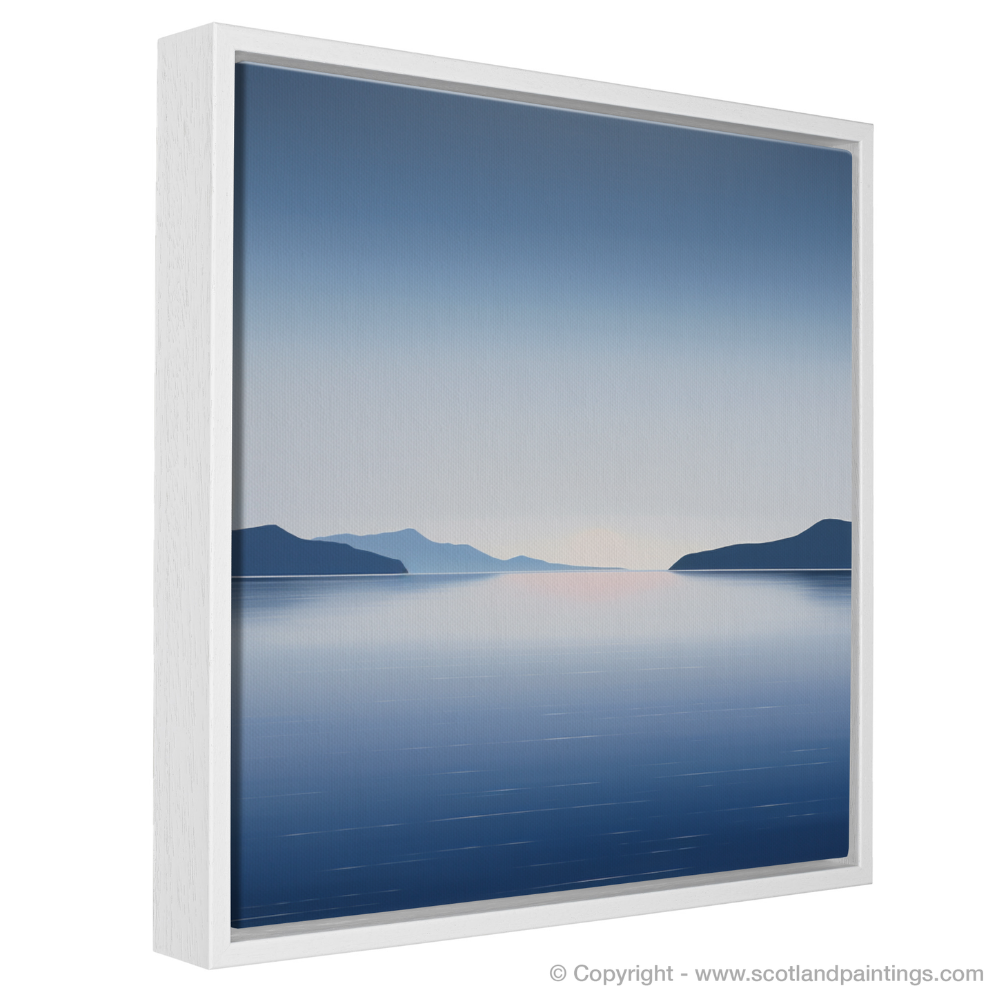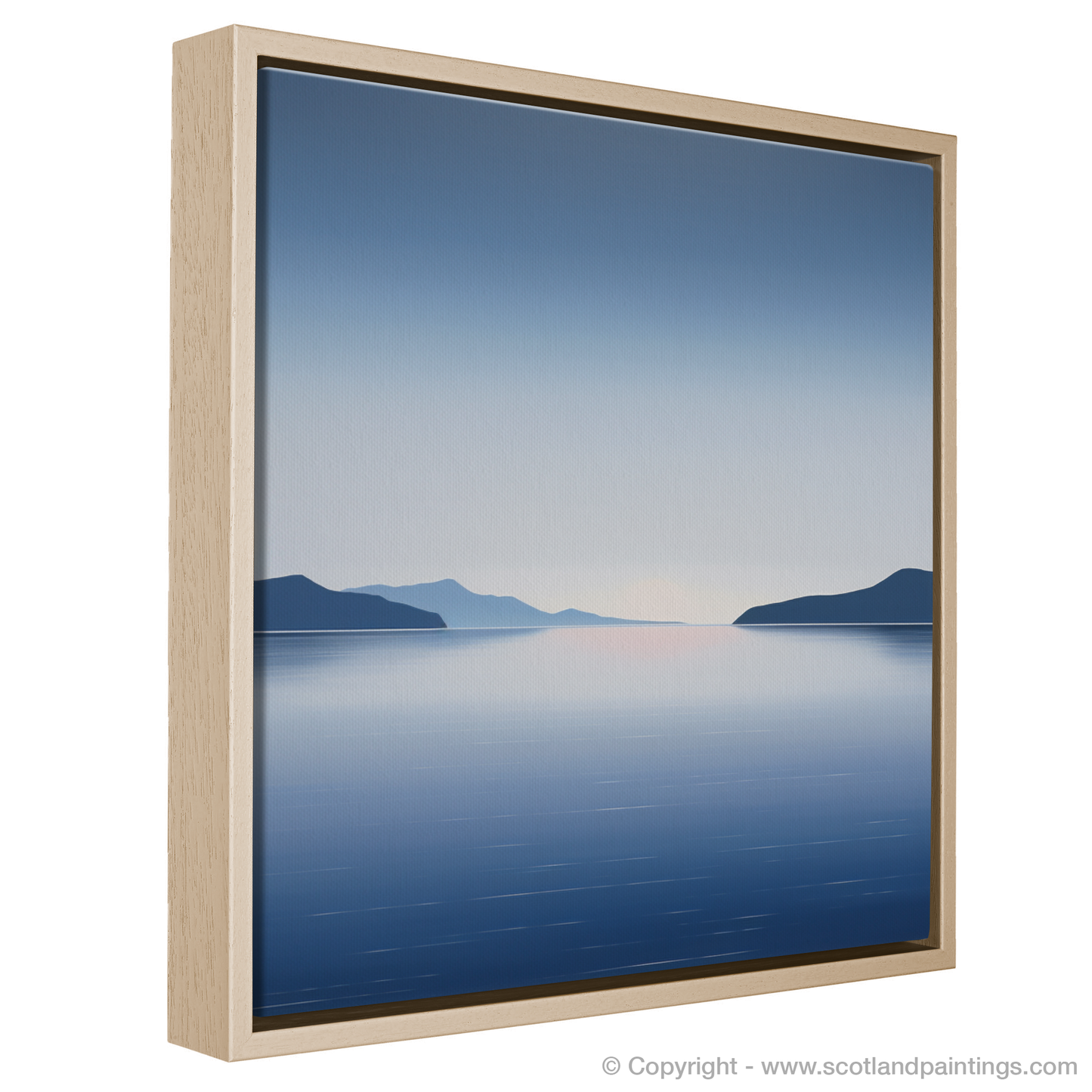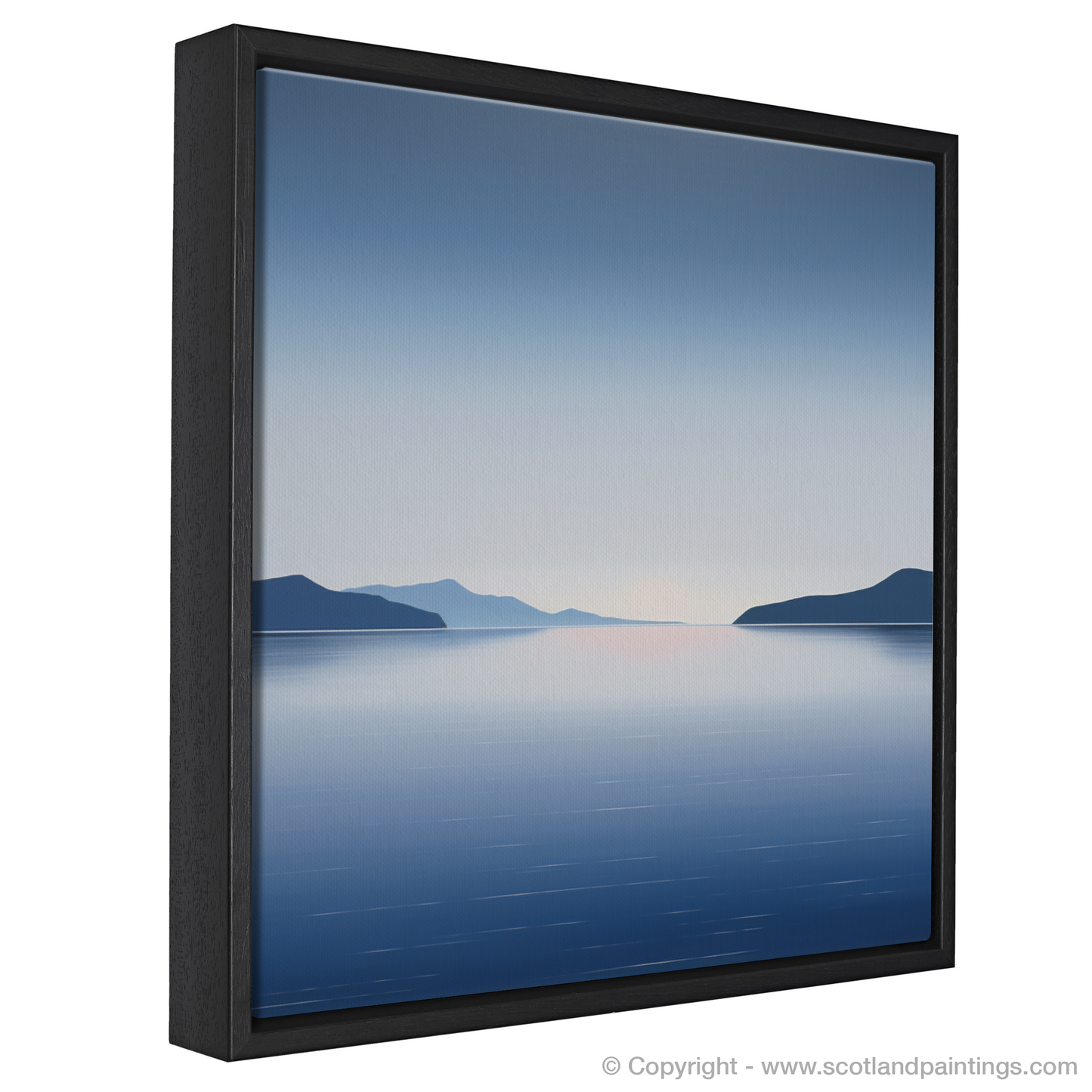As evening whispers over Ardanaiseig Bay, the world is simplified to gentle gradients and serene silhouettes in this evocative minimalist print. A symphony of cool blues and dusky purples melts into the tranquil horizon, capturing Scotland's coves' elusive beauty at dusk. The water's surface, smooth as glass, reflects a gradient sky descending from deep navy to the lightest hint of pink where the sun bids its adieu.
