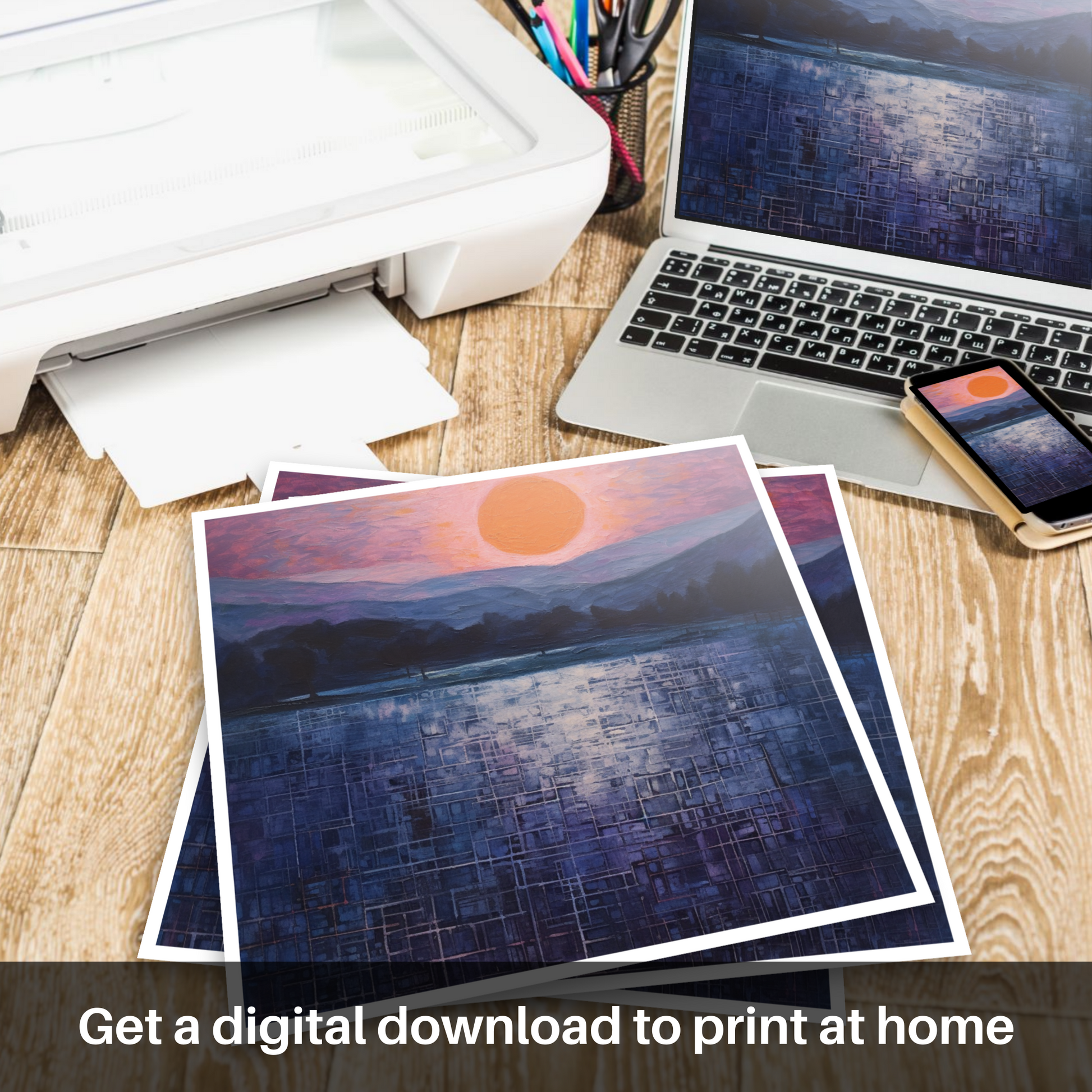 Immerse yourself in the dusky serenity of Scotland's hidden gems with our evocative print from the 'Scottish Coves' collection. This piece encapsulates the tranquil majesty of Loch Spelve at dusk through the powerful lens of Abstract Expressionism.