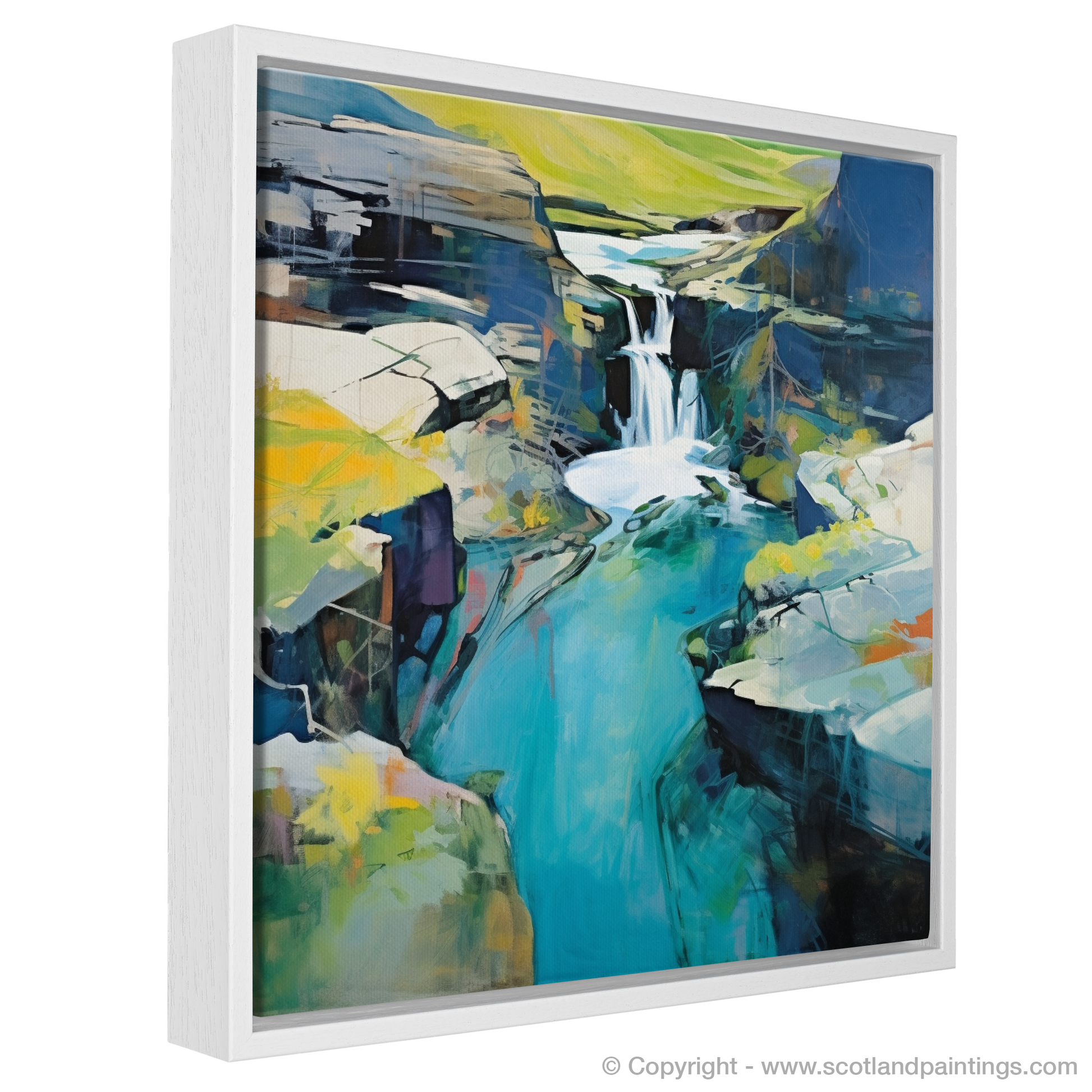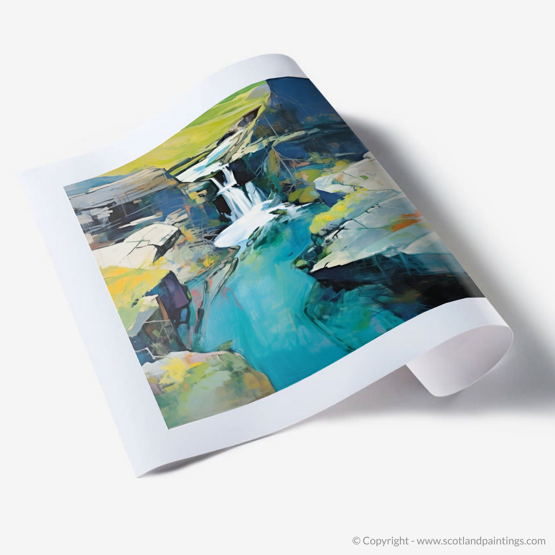 Delve into the enchanting essence of the Scottish Isles through this captivating print, a piece that showcases the mesmerising beauty of The Fairy Pools on the Isle of Skye. With its abstract impressionist approach, the artwork invites viewers to experience the location in a way that blends reality with artistic interpretation. The print features a symphony of bold, expressive brushstrokes and a palette rich with the vibrant hues of nature's own canvas.