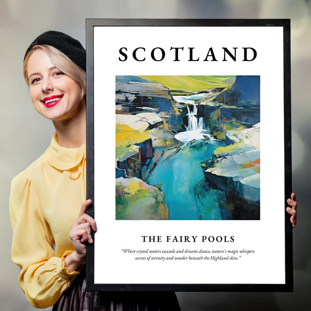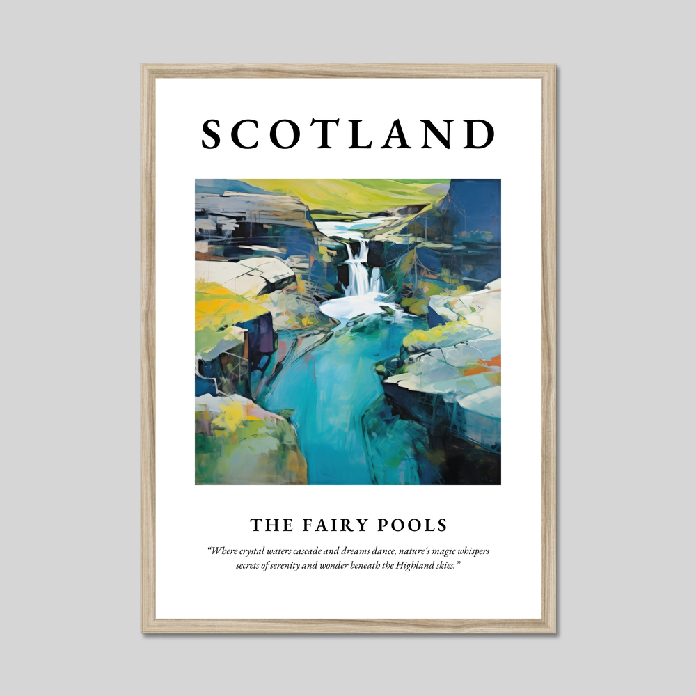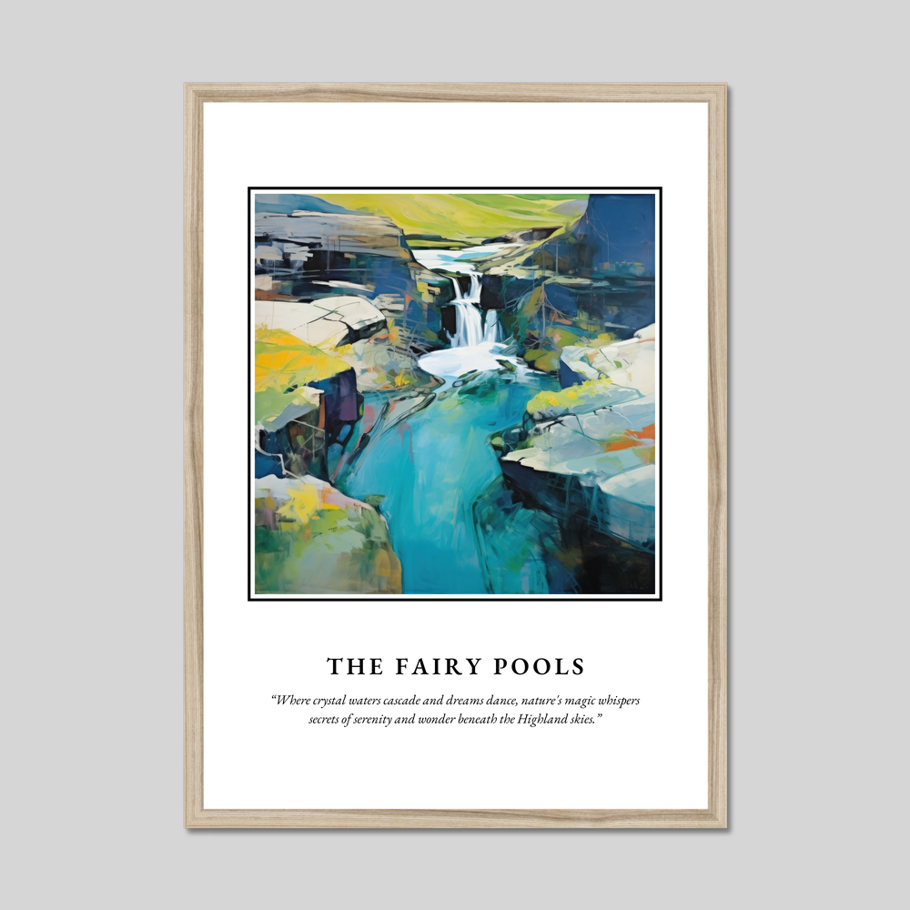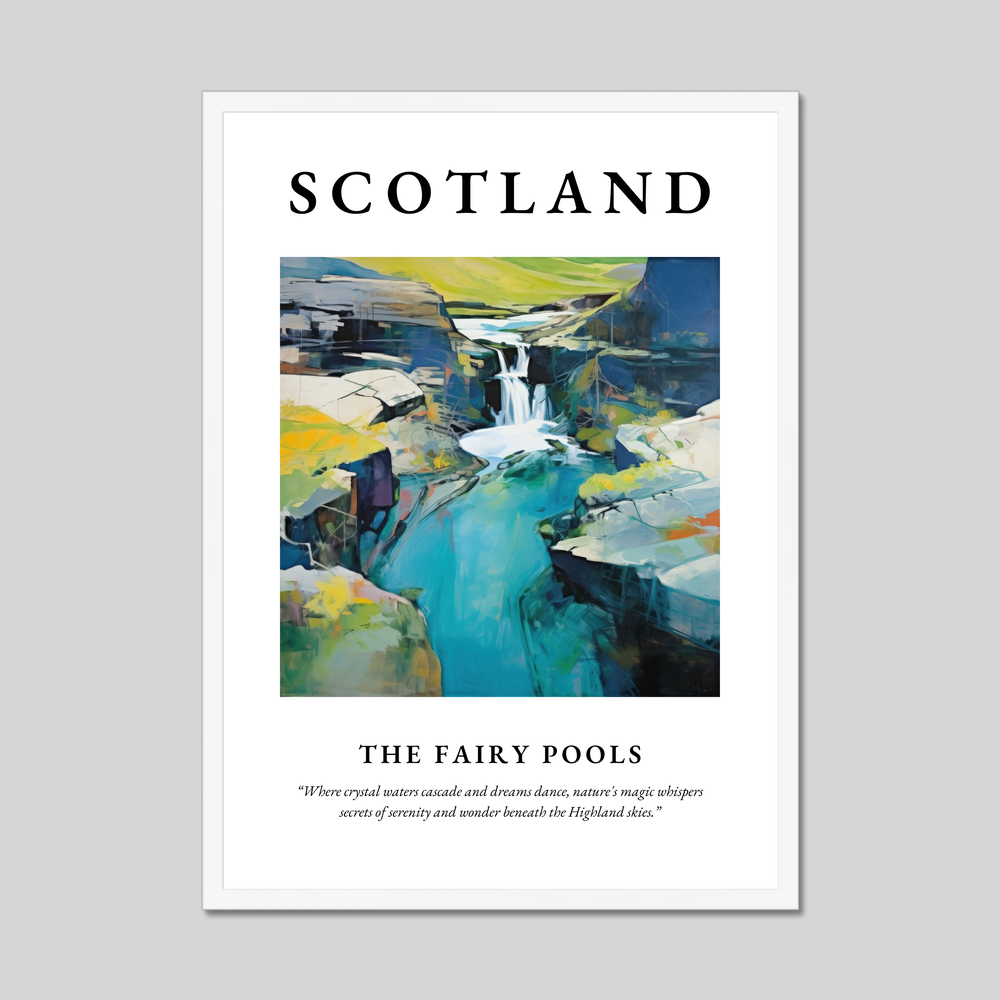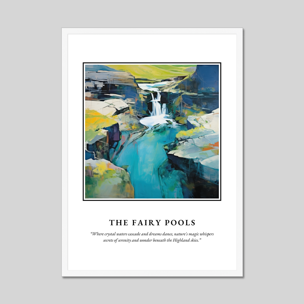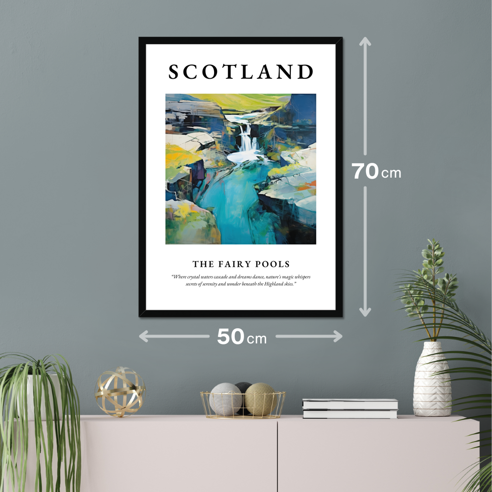 Immerse yourself in the enchanting allure of the Scottish Highlands with our captivating framed poster print. Measuring an impressive 50cm x 70cm, this striking piece commands attention without overstepping your budget. Whether you're an aficionado of Abstract Impressionism or someone with a profound connection to Scotland, this artwork brings the mystical beauty of the Fairy Pools directly into your living space.