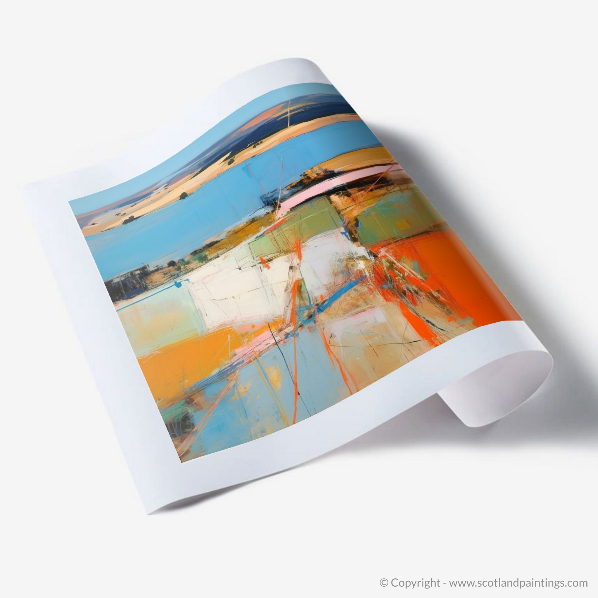 Dashes of vermilion and tangerine imbue this artwork with an energy that mirrors the dynamic play of light at sunset. The interplay of these bold, emotive colours with the delicate, sweeping gestures brings to life the natural grandeur of the Scottish countryside. The print is a celebration of intuitive brushwork and a mastery of colour blend, resulting in a mesmerising spectacle that bridges the gap between representation and abstraction.