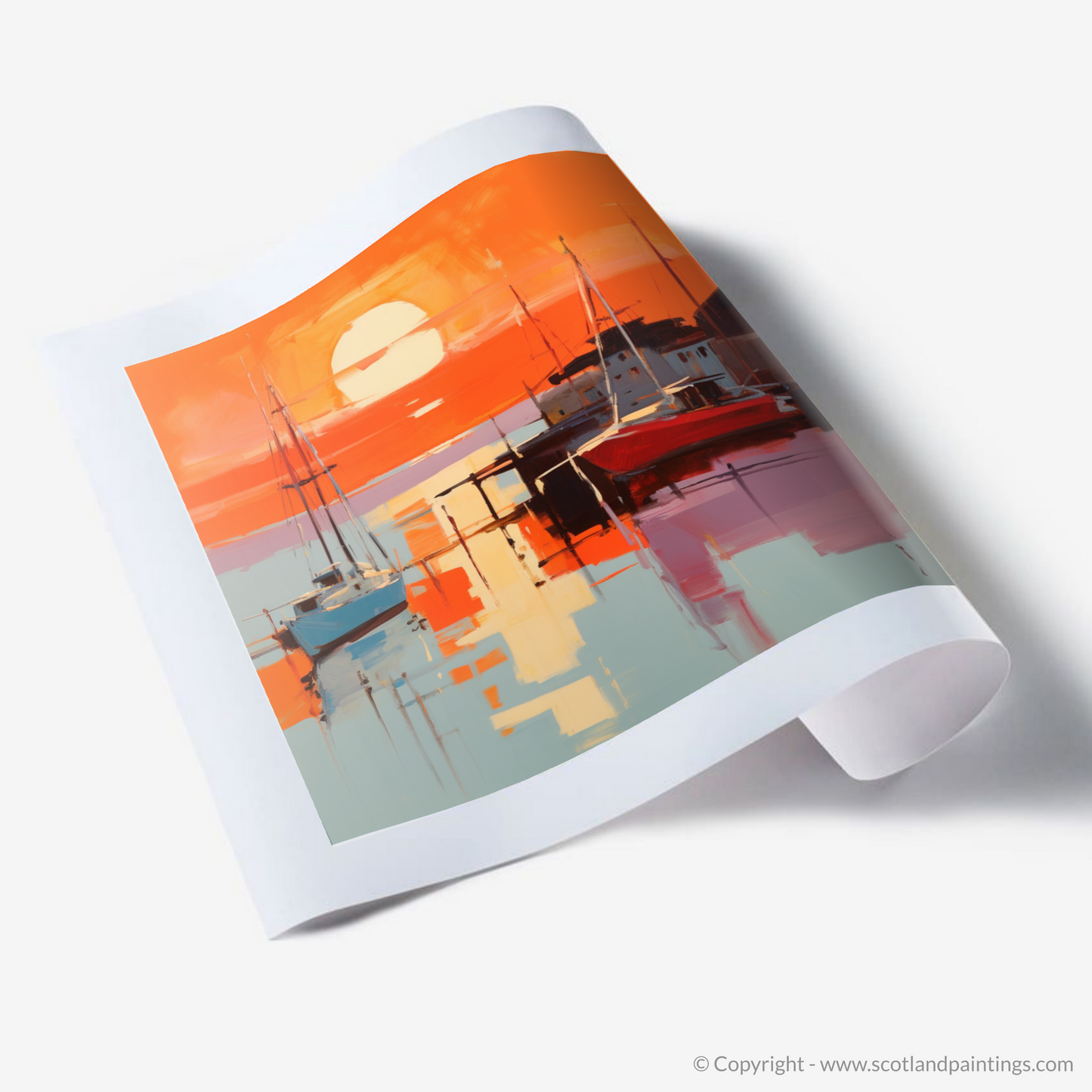 An embodiment of stillness and reflection, this print invites contemplation and infuses any space with the calm and majesty of Scotland's coastal charm. It is an invitation to pause, to breathe, and to immerse oneself in the ephemeral beauty of a harbour at sunset—a treasure to be appreciated anew with each viewing.