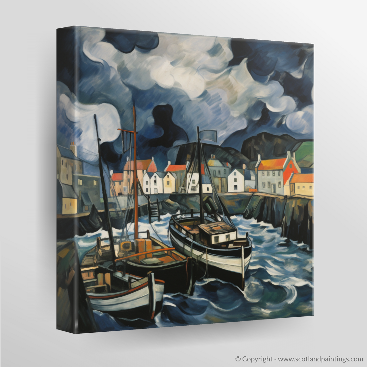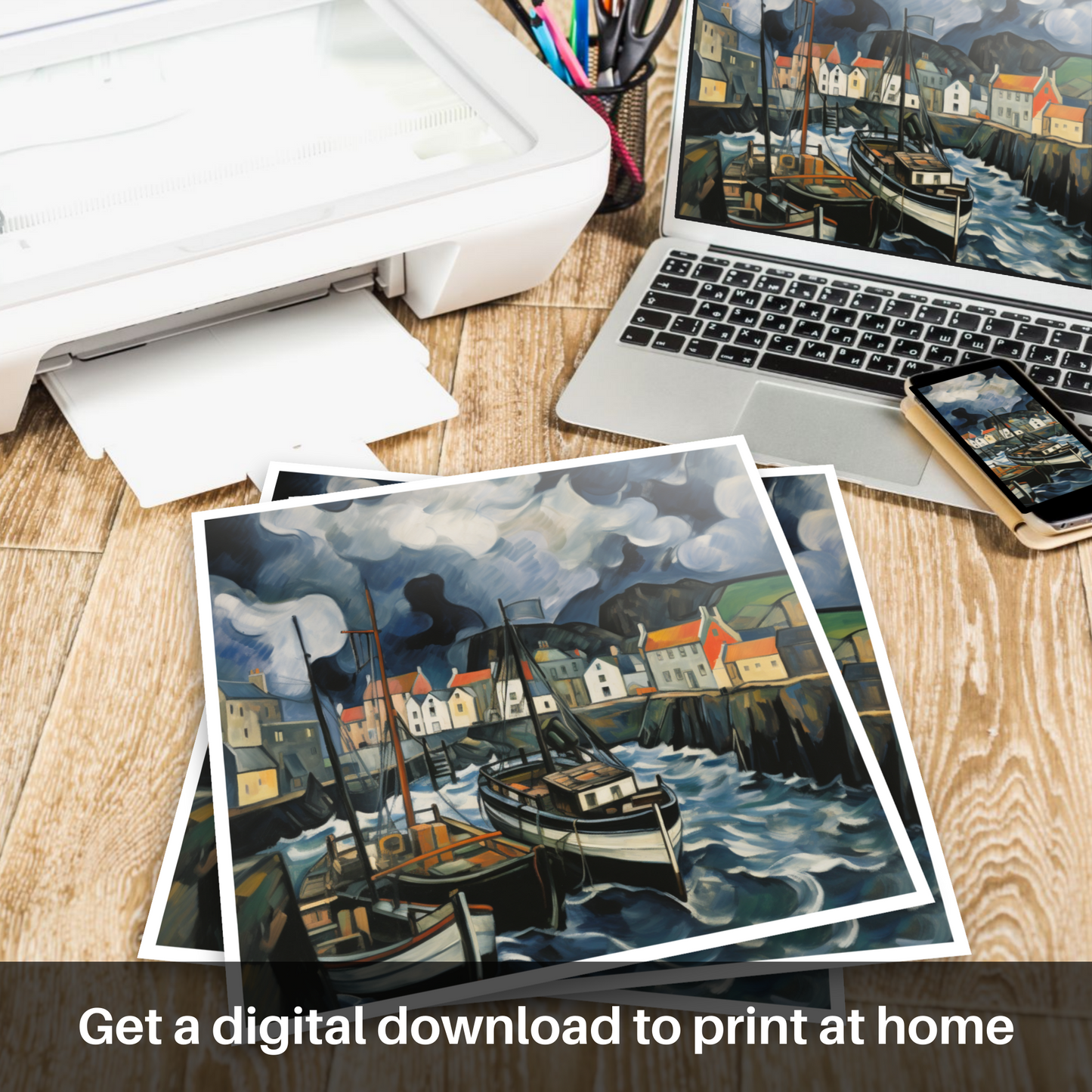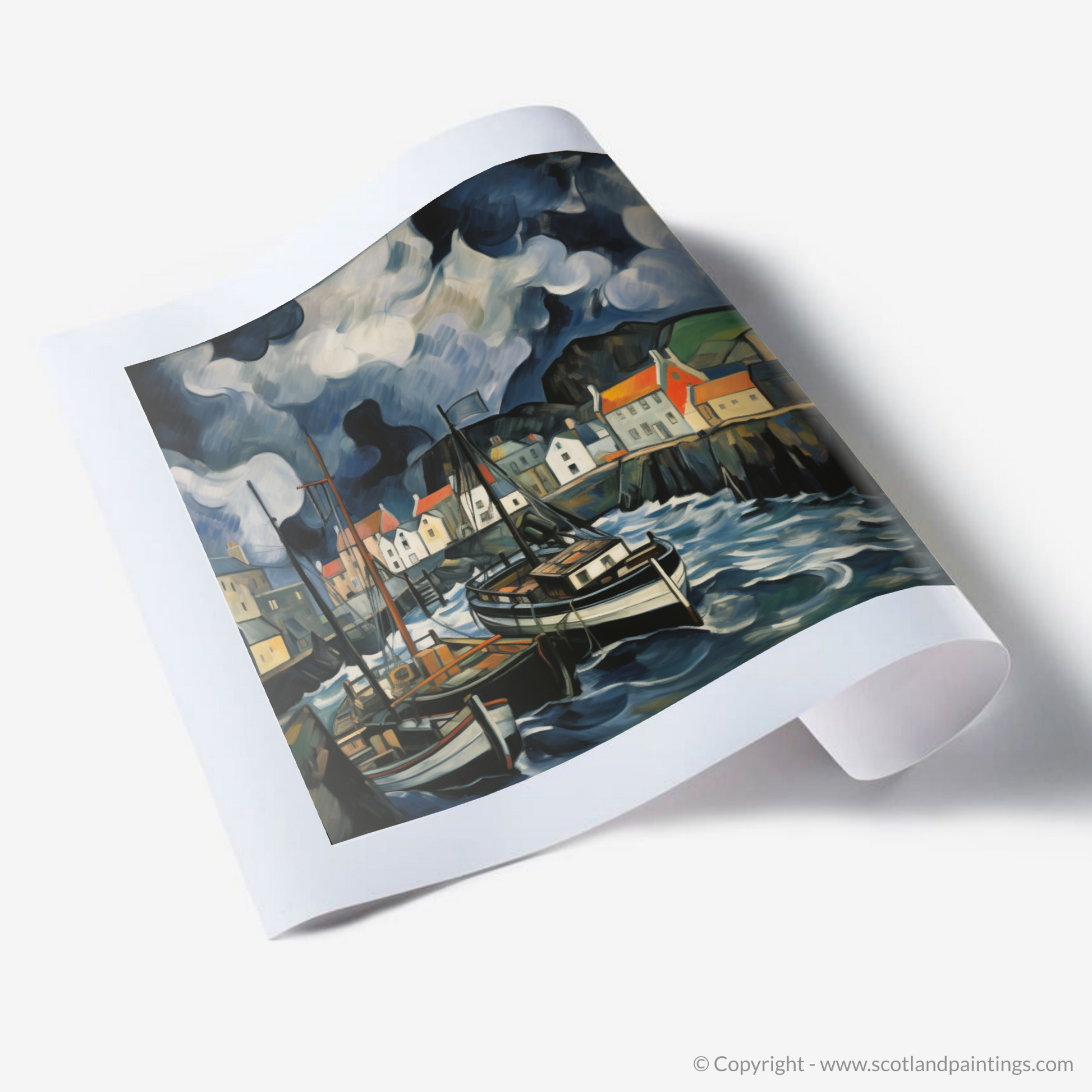 Anchored in tradition yet daring in execution, this piece encapsulates the raw, wild spirit of Scotland's coastal landscapes. It is a celebration of nature's untamed elements and an homage to the unique charm that is the Scottish seaside. Whether you are a lover of cubism, drawn to maritime themes, or simply seeking a print that tells a story of nature's dramatic symphony, this depiction of Portpatrick Harbour during a storm is sure to captivate and stir the imagination.