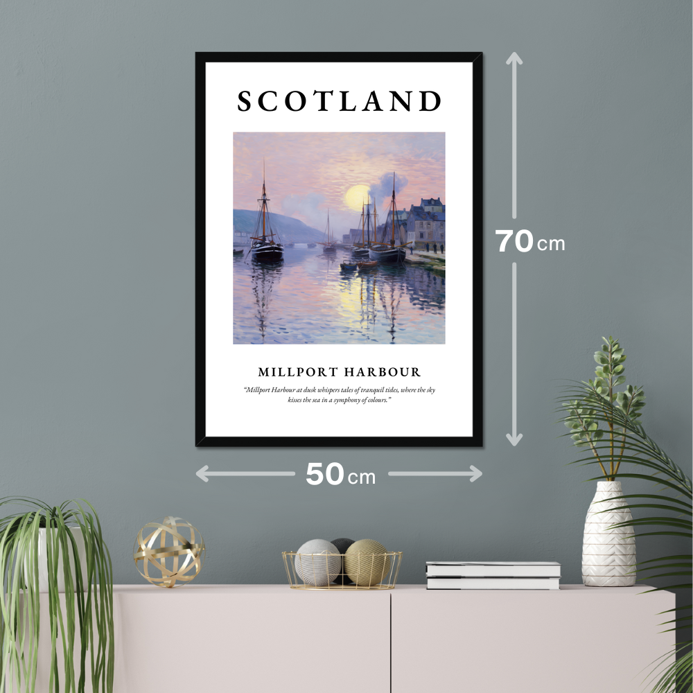 Bring the captivating allure of Scotland into your home with our stunning framed poster print, featuring a beautiful impressionistic painting of Millport Harbour. Measuring an impressive 50cm x 70cm, this large piece is a perfect statement for any wall, offering an elegant yet affordable way to transform your space.