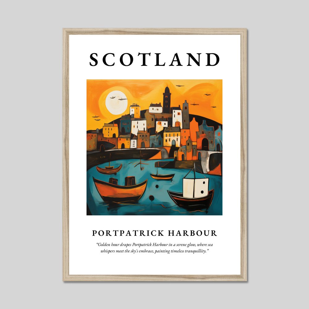 Bring a touch of Scotland’s enchanting coastlines into your home with our captivating art print poster. This striking 50cm x 70cm piece features the bold word “SCOTLAND” above an evocative, abstract painting of Portpatrick Harbour. Below this vibrant depiction lies the poetic quote, “Golden hour drapes Portpatrick Harbour in a serene glow, where sea whispers meet the sky's embrace, painting timeless tranquillity.” Available in sleek black, elegant white, or a warm natural wood-effect frame, this print seamlessly becomes a statement piece in any room, covering substantial wall space without the heavy price tag.
