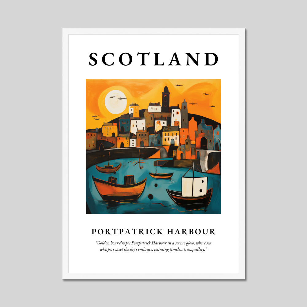 Whether you have fond memories of wandering the quaint streets of Portpatrick, marveling at its historic architecture, or simply wish to bring a slice of Scottish magic into your space, this poster is a perfect homage. Its evocative portrayal invites the warmth and tranquillity of Portpatrick Harbour into your home, ensuring that the allure of Scotland is always within reach.