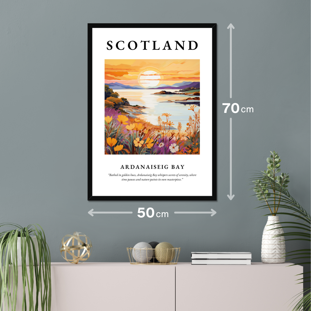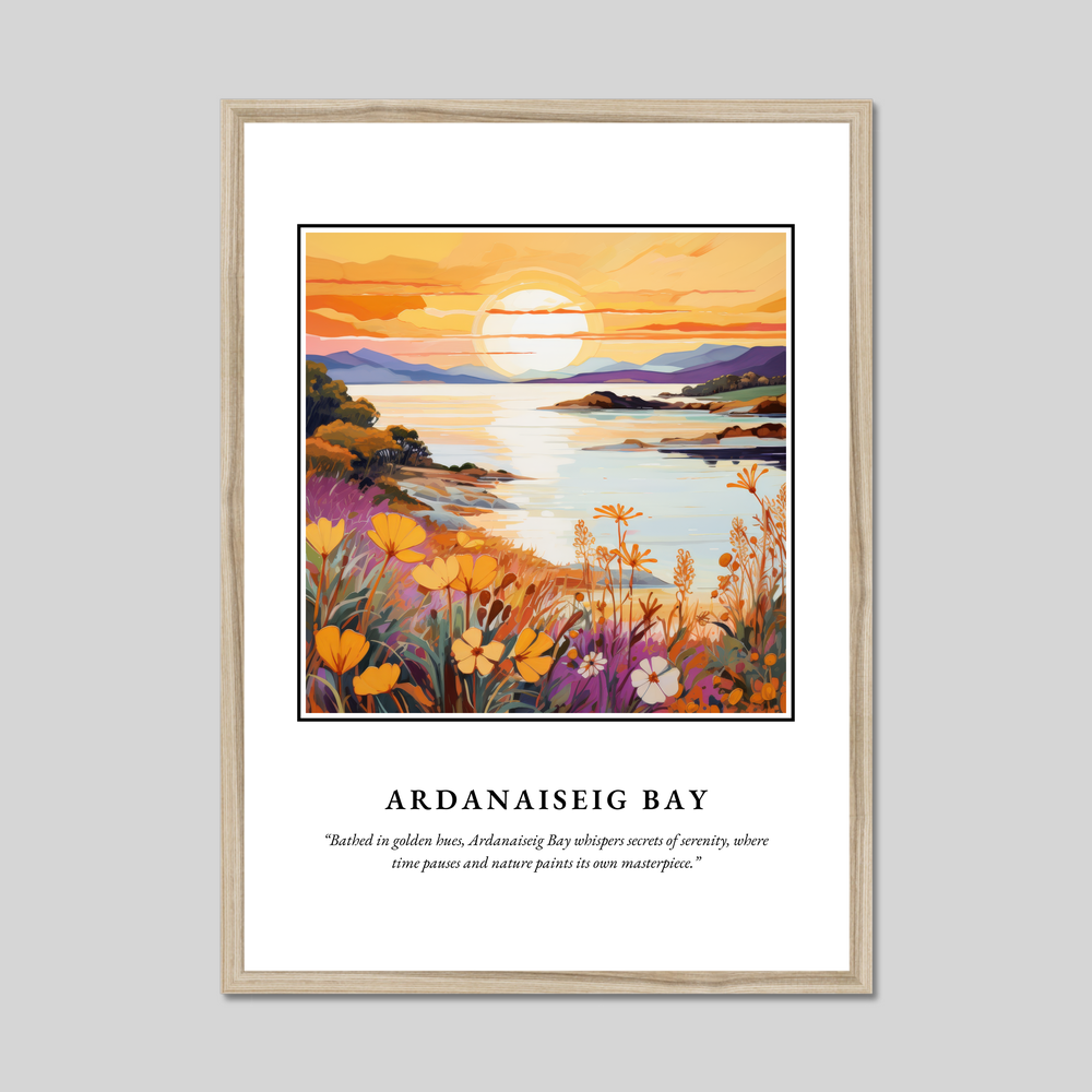 Step into a world of tranquillity with our exquisite framed art print, a tribute to the serene beauty of Ardanaiseig Bay. Measuring an impressive 50cm x 70cm, this large poster is perfect for making a statement in any room, offering a grand vision of Scotland without a hefty price tag. Choose from a sleek black, crisp white, or a warm natural wood-effect frame to complement your decor.