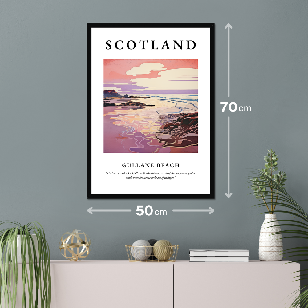 Embrace the tranquil allure of Scotland's Gullane Beach with our exquisite framed poster print, measuring an impressive 50cm x 70cm. This striking piece from our “Scottish Beaches” collection captures the serene beauty of Gullane Beach in the enchanting Art Nouveau style. The word “SCOTLAND” boldly graces the top, inviting you to dive into the lush, dreamy landscape below.