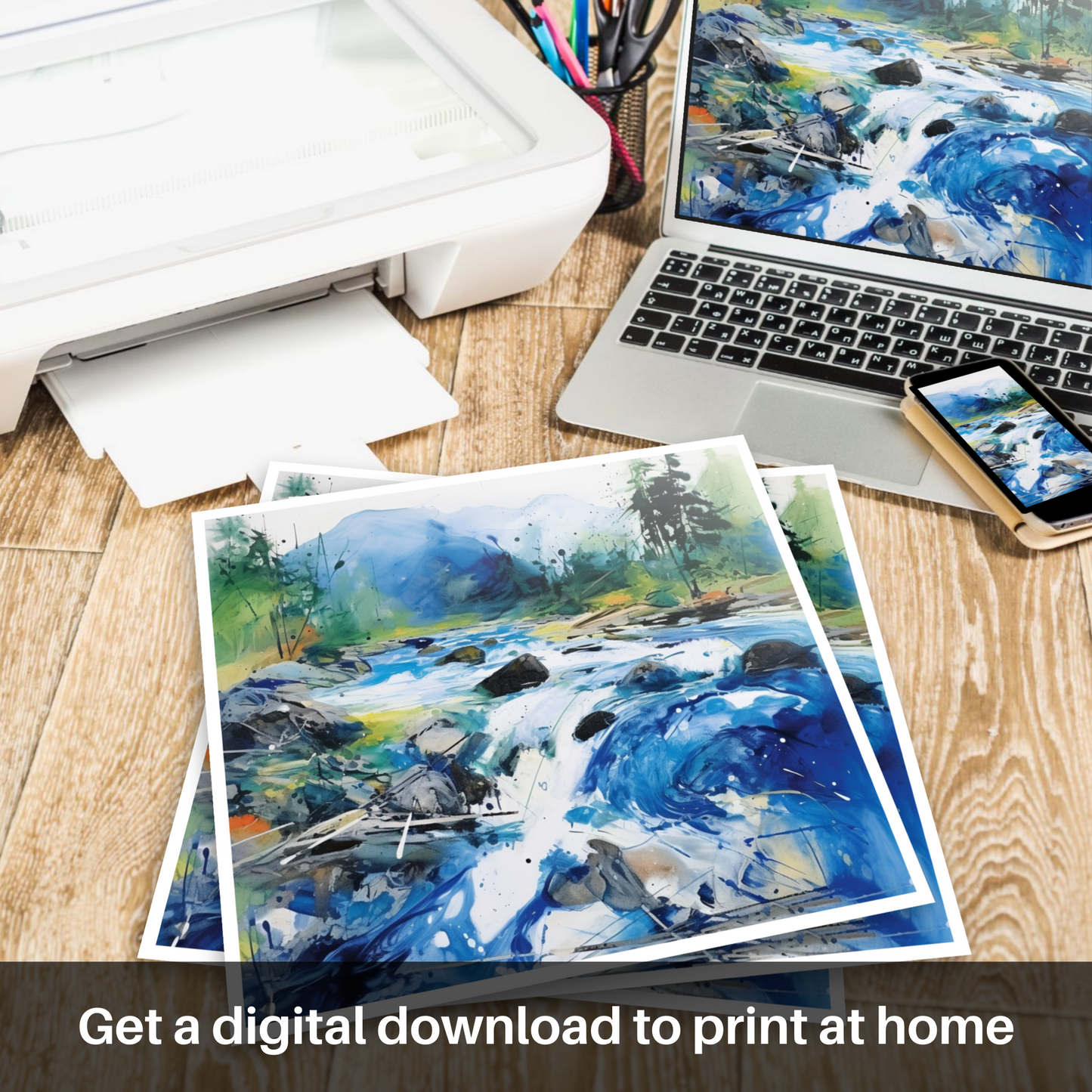 Immerse yourself in the serene beauty of the Scottish Highlands with this captivating abstract print, evoking the essence of the River Spean. A masterstroke of creativity, this artwork beckons you to a world where the classic landscapes are reimagined through a vibrant, contemporary lens.
