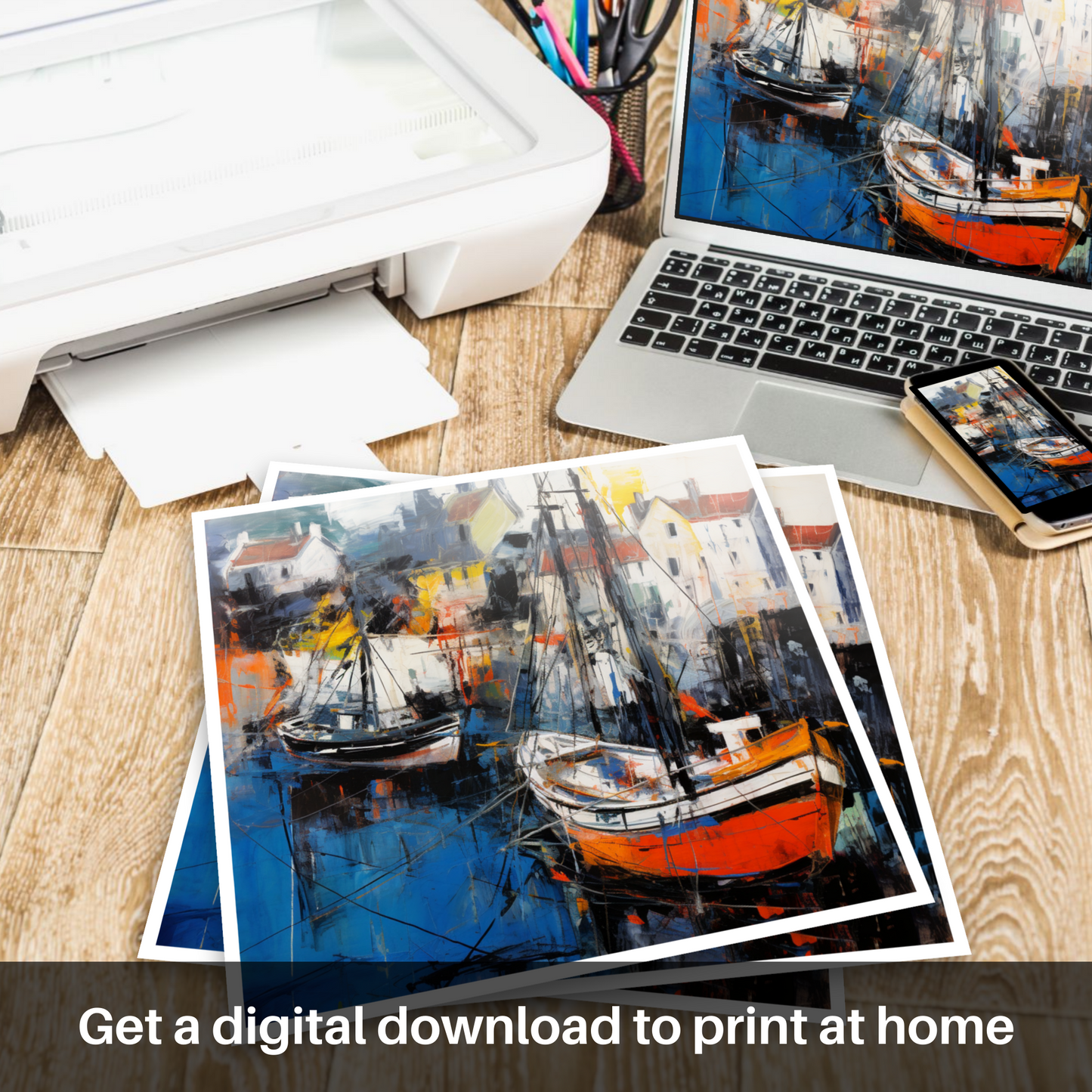Adorning your space with this print will surely spark conversation and appreciation for the allure of abstract art, capturing the heart of one of Scotland's picturesque coastal scenes.