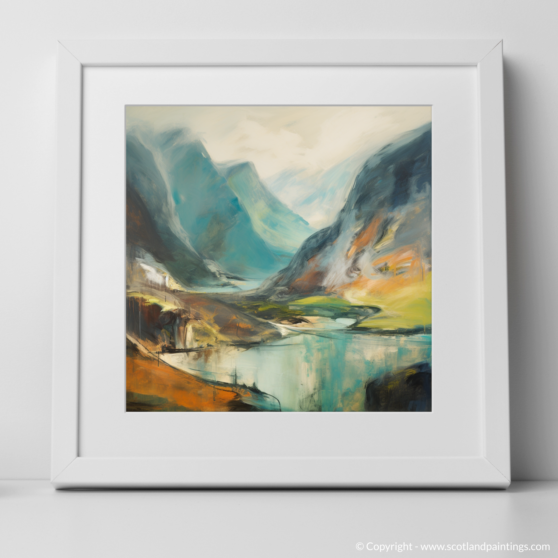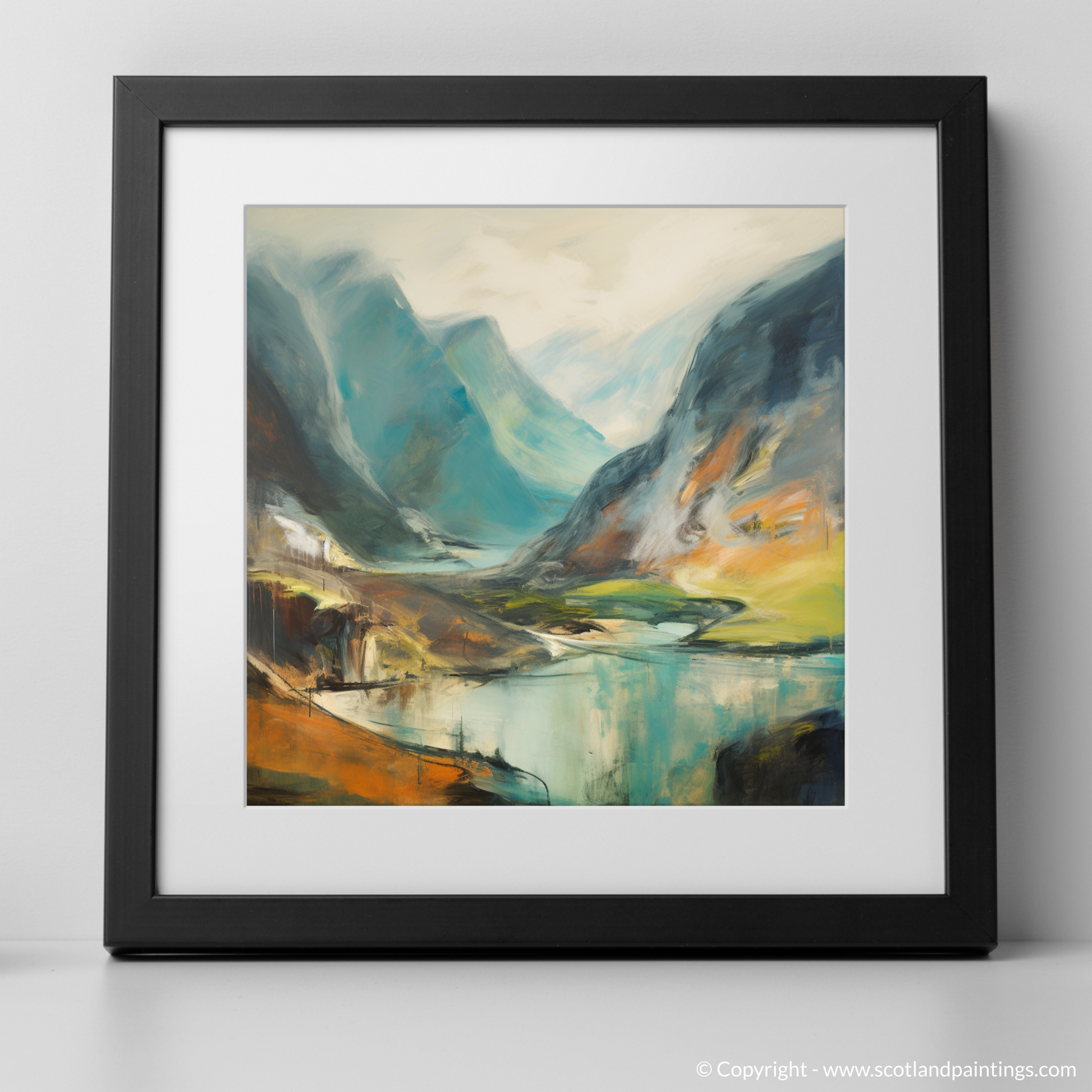 Immerse yourself in the wild and emotive landscape of the Scottish Highlands with this exceptional print, a piece that encapsulates the untamed spirit of Glencoe. The rich tapestry of vigorous brushstrokes and vibrant colours evokes the dramatic vistas and elemental forces that shape this iconic glen. In this abstract expressionist take on Glencoe, the mingling azure and emerald hues suggest the mingling of sky, land, and water, bringing the essence of the Scottish countryside into your home.