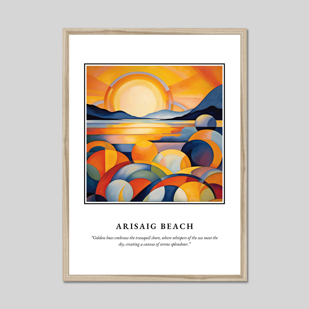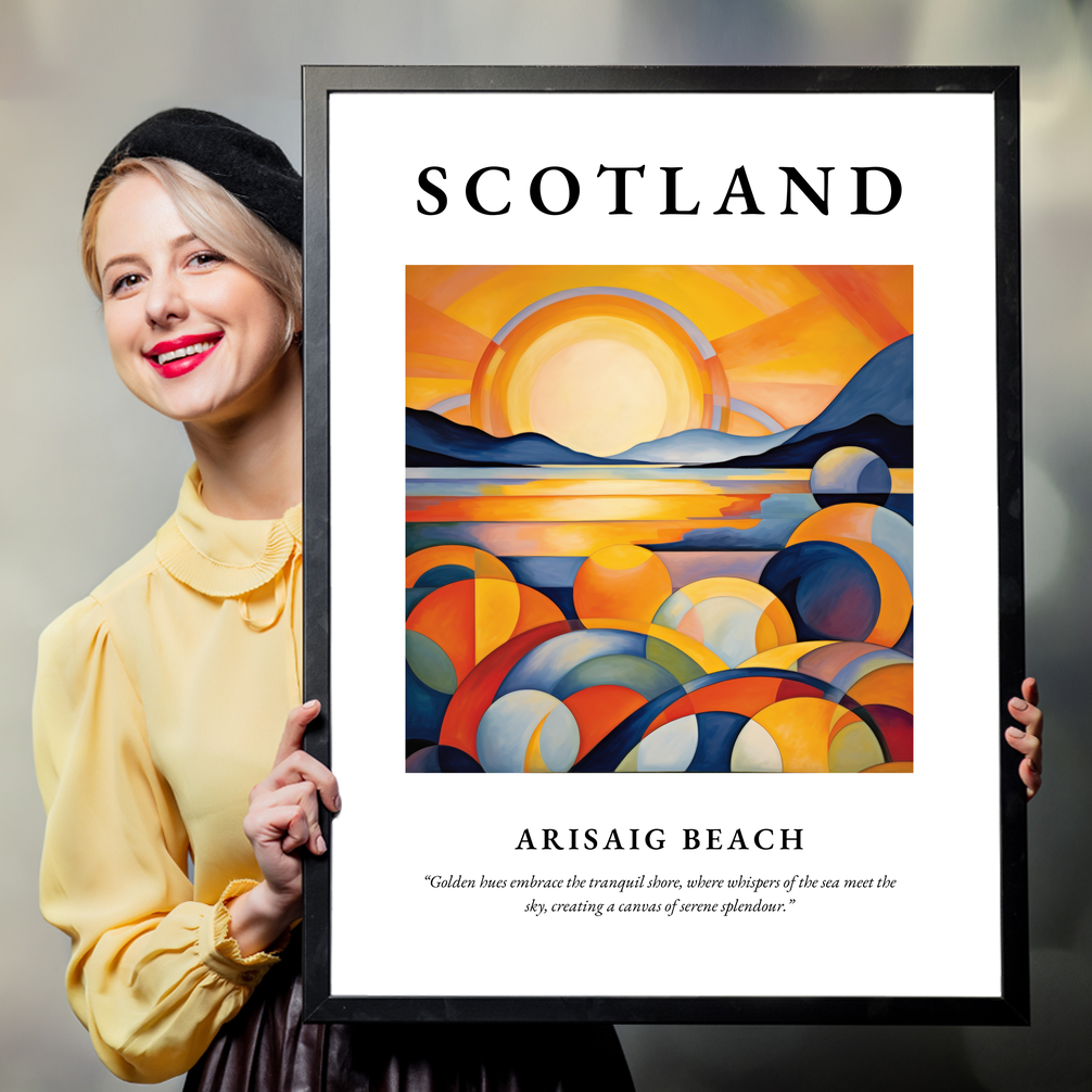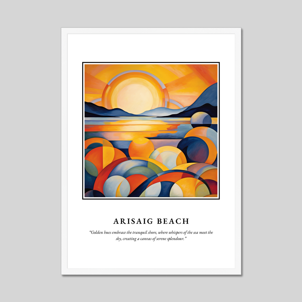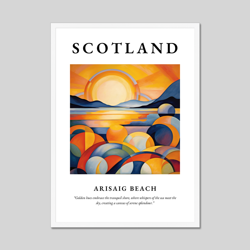 Whether you've set foot on its sands or dream of doing so, this framed poster allows you to bring a piece of Arisaig's magical charm into your home. Its radiant depiction of the beach, with sunlit colours and flowing forms, offers a daily escape to a place where sea and sky blend seamlessly, captured forever in a moment of art.