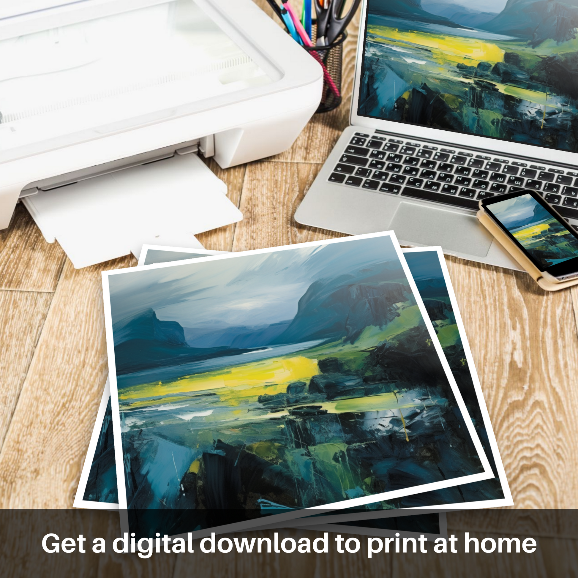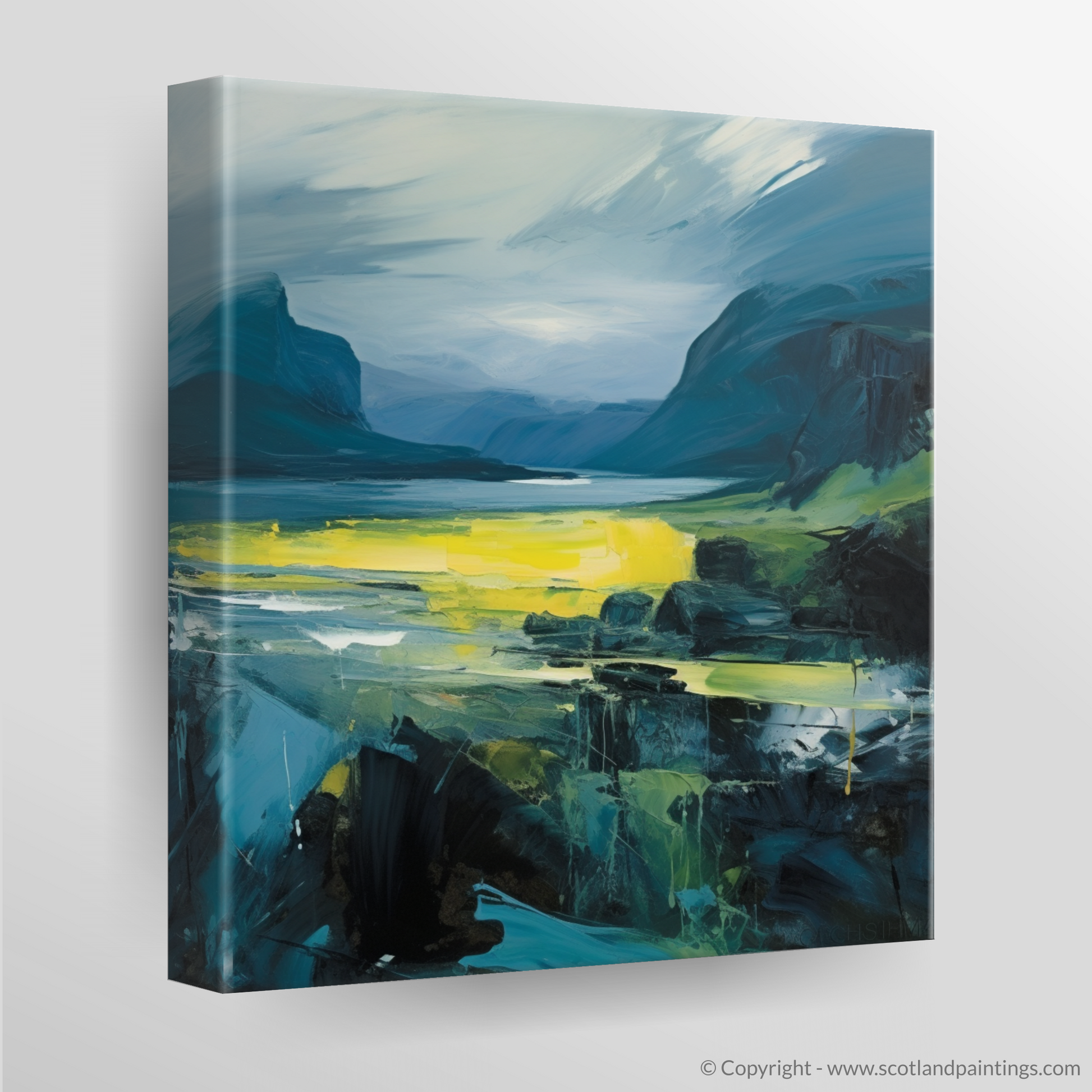 Immerse yourself in the dramatic essence of Scotland's natural beauty with our exclusive print, a piece that celebrates the rugged splendour of the Isle of Skye's smaller isles in the Inner Hebrides. Evoking the enigmatic soul of the region, this abstract expressionist artwork masterfully intertwines bold strokes and a rich, moody palette, transporting viewers to the heart of Scottish wilderness.