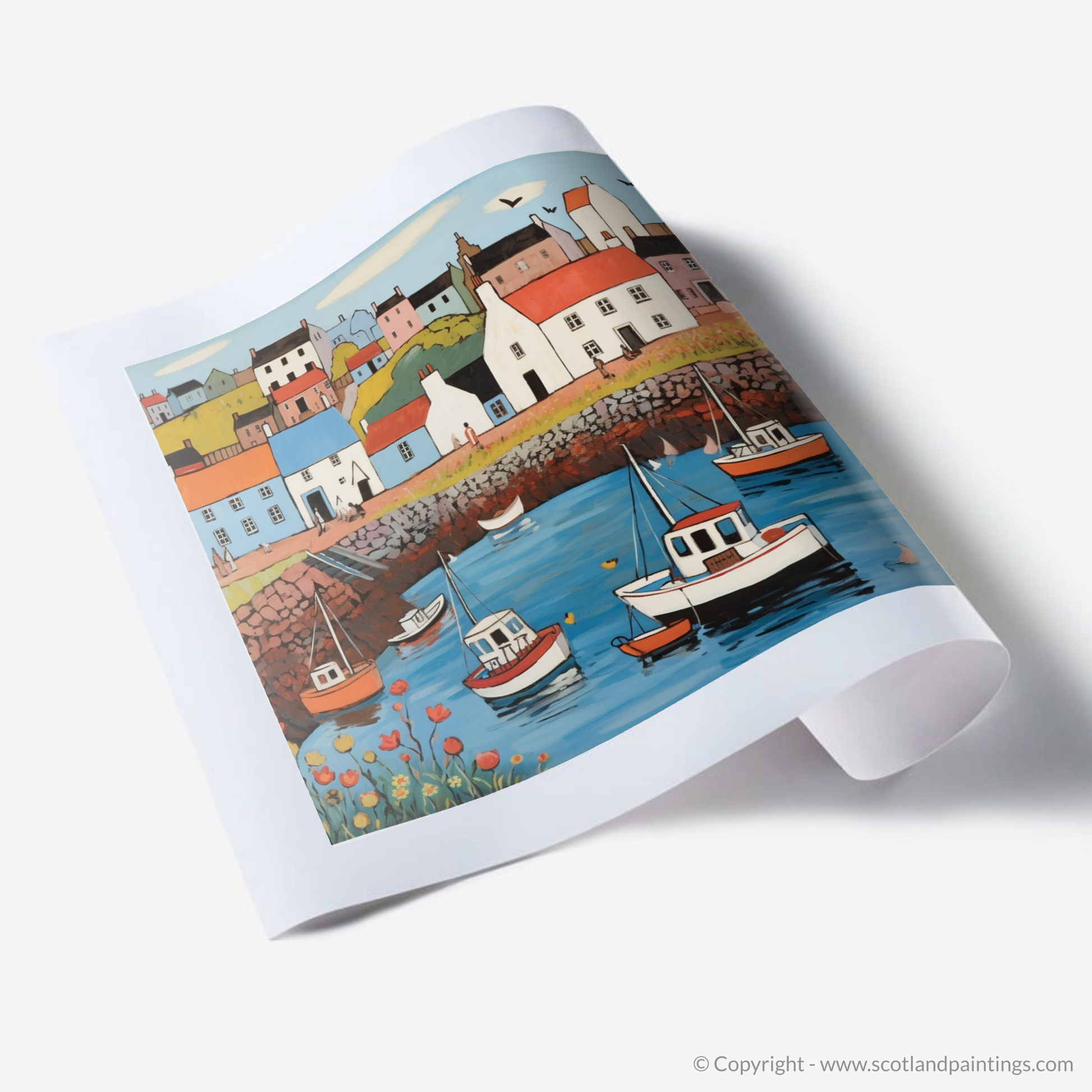 Crail Harbour Delight: A Naive Art Gem from the Scottish Coast