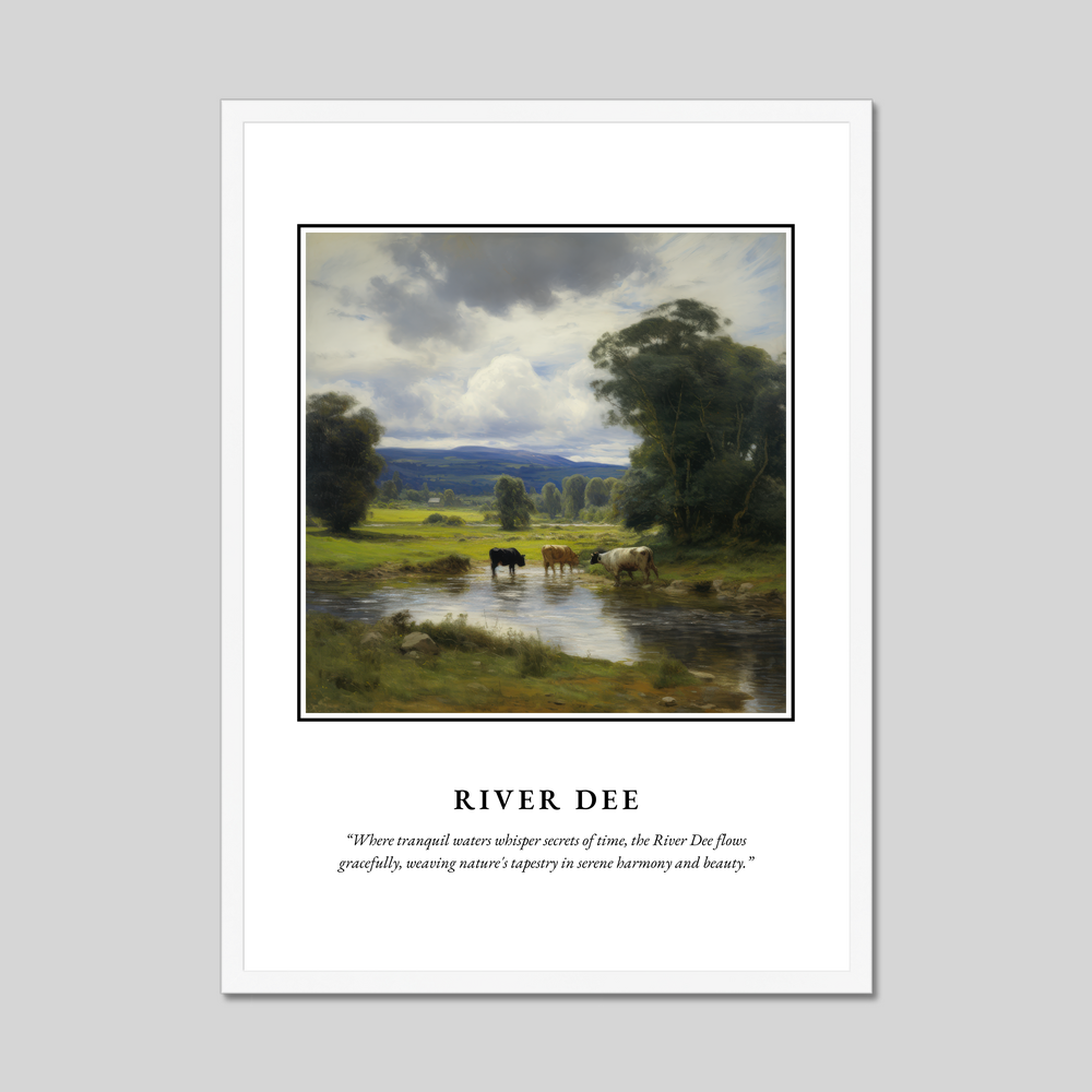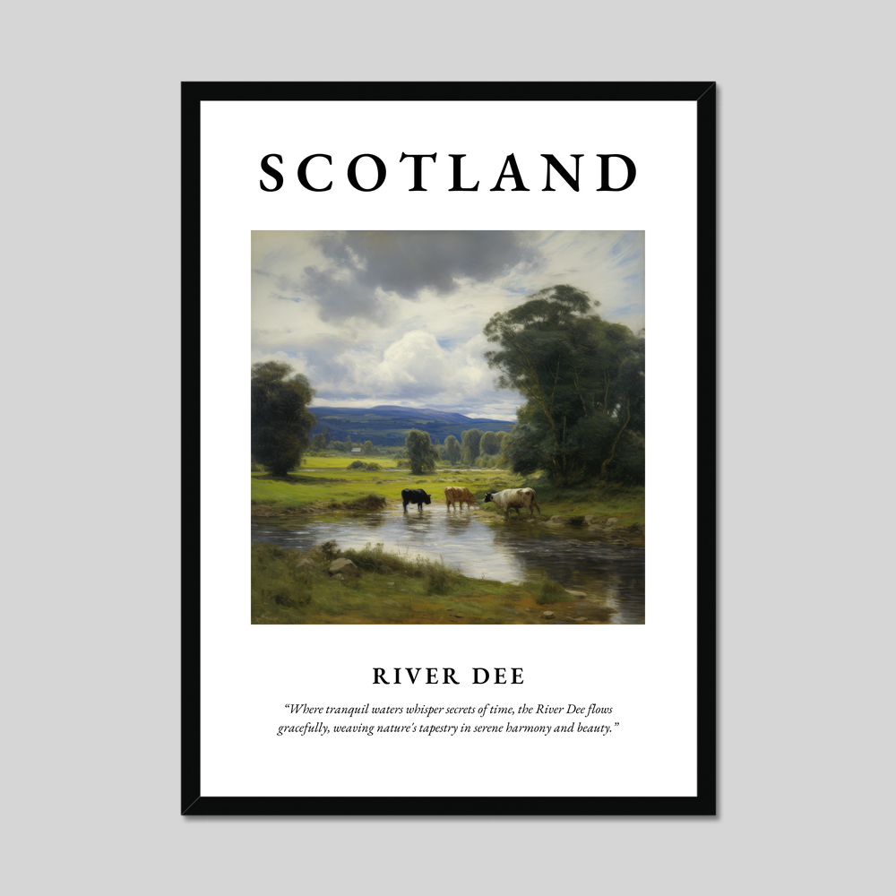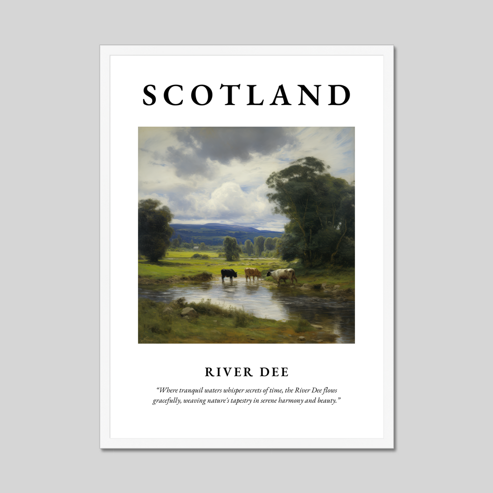 The River Dee in Scotland is a place of timeless beauty and cultural significance. Originating in the Cairngorms and flowing through the heart of Aberdeenshire, it’s a river that has inspired tales and paintings for centuries. Home to abundant wildlife and surrounded by picturesque landscapes, the River Dee offers a peaceful retreat into nature's embrace. As you gaze at this evocative poster, you’ll be transported to the tranquil banks of the Dee, where nature's whispers invite contemplation and appreciation.