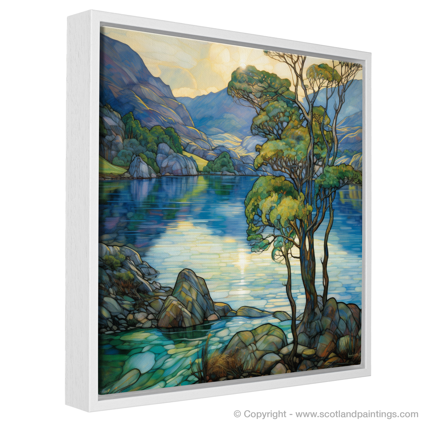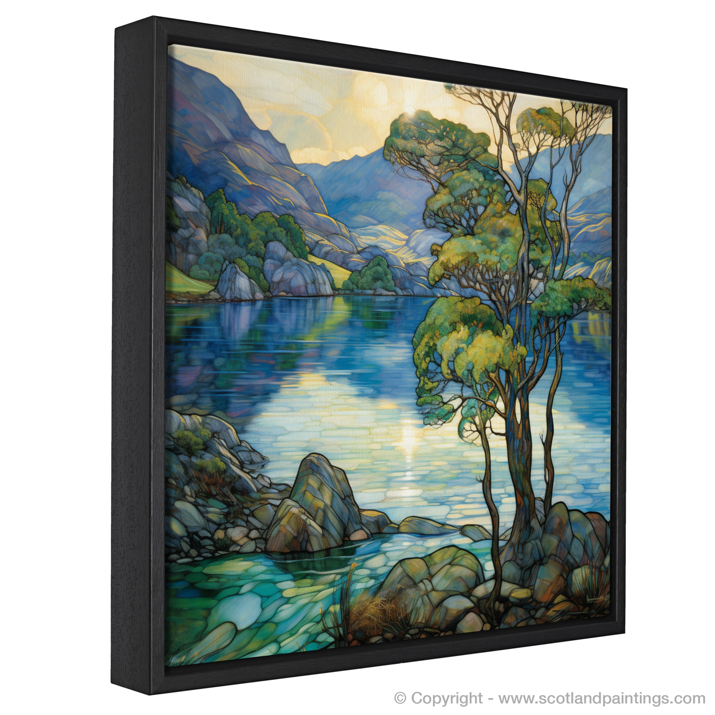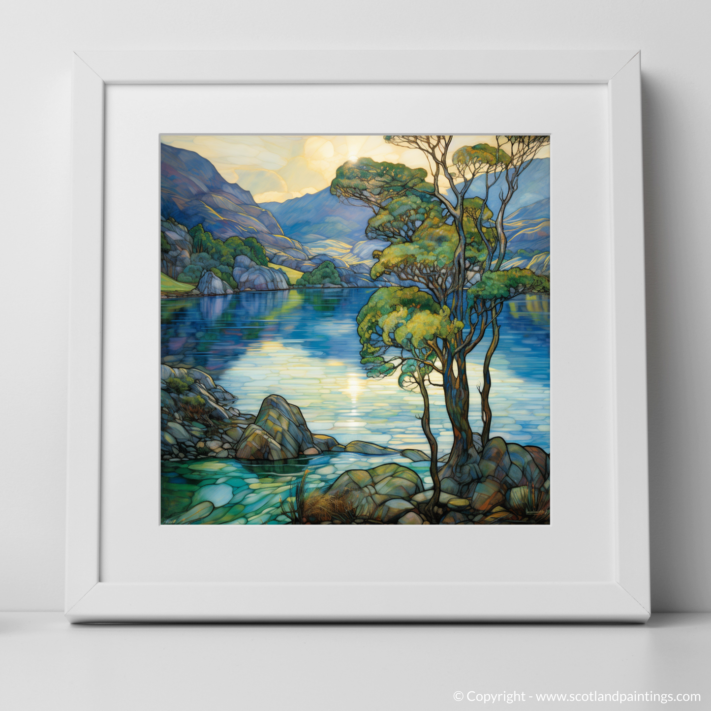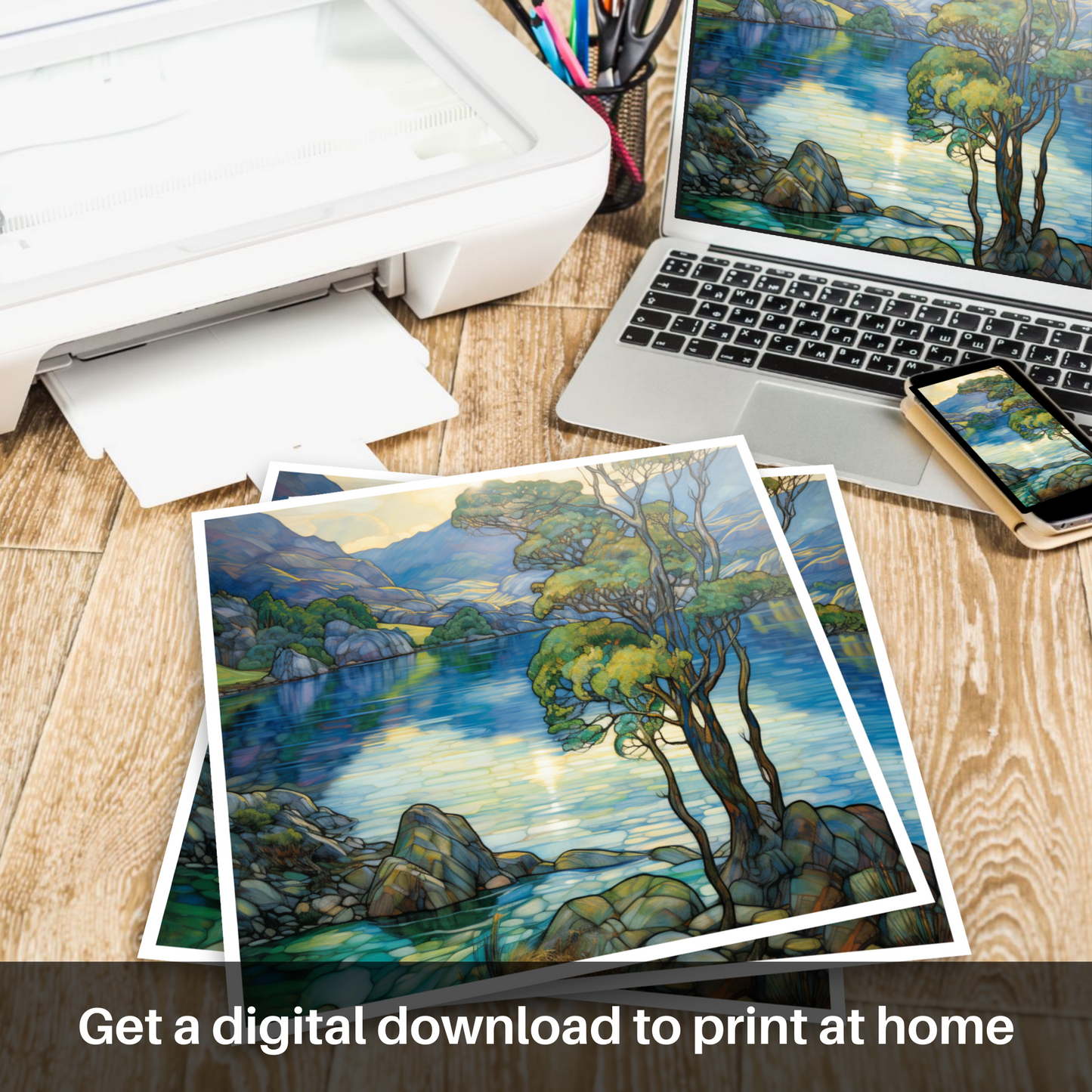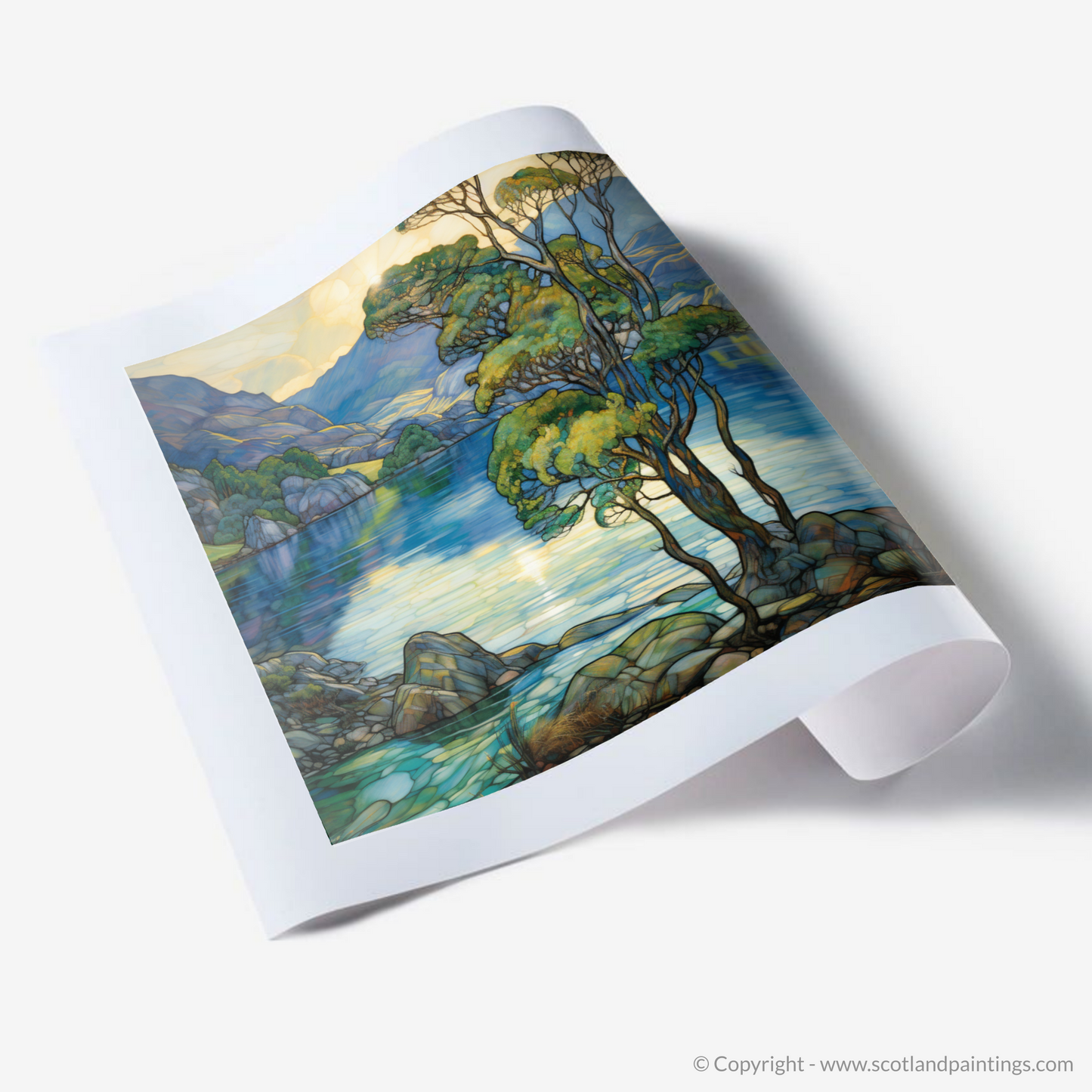 Immerse yourself in the ethereal beauty of the Scottish Highlands with our exquisite Art Nouveau-inspired print that captures the tranquil essence of Loch Katrine. This piece intricately weaves the natural splendour of the loch’s surroundings with the distinctive curvilinear elegance that characterises the art movement.