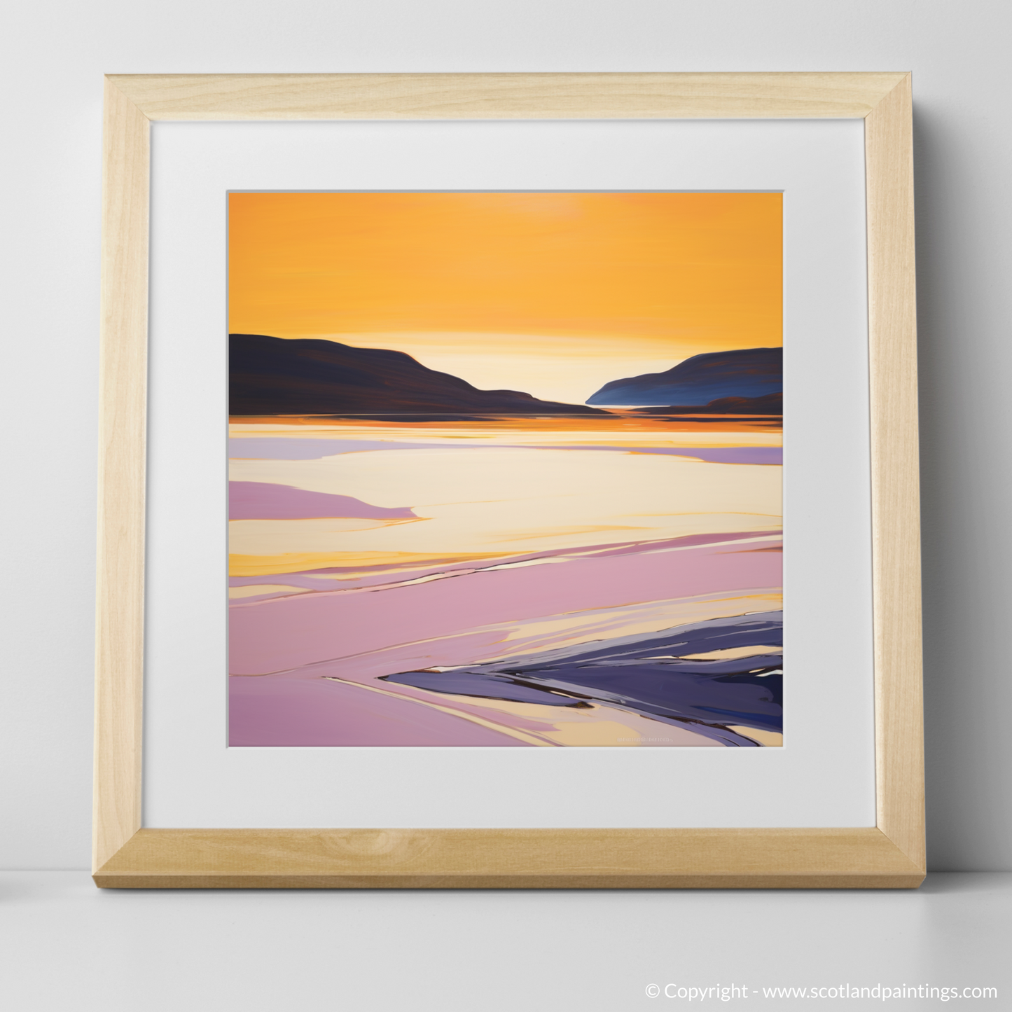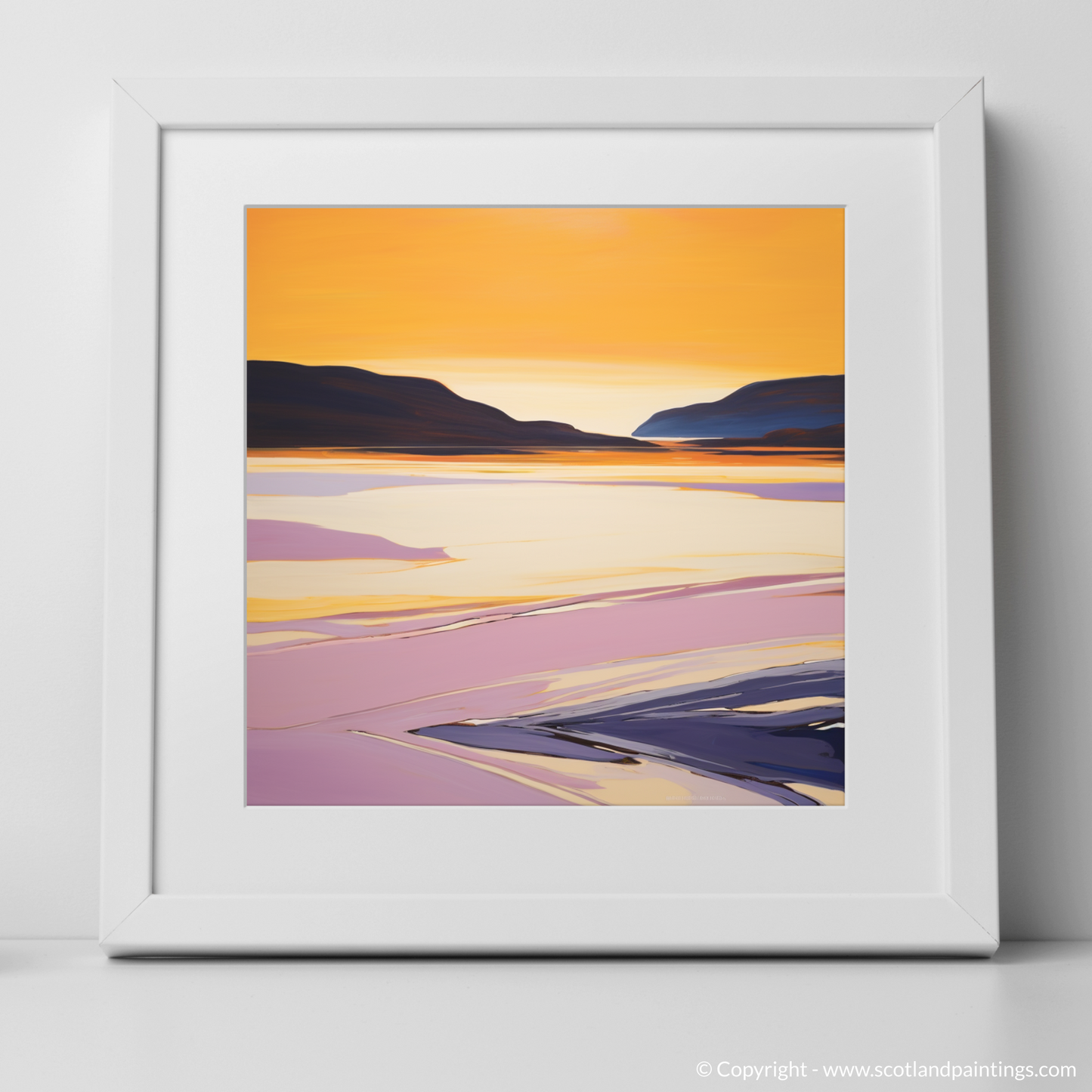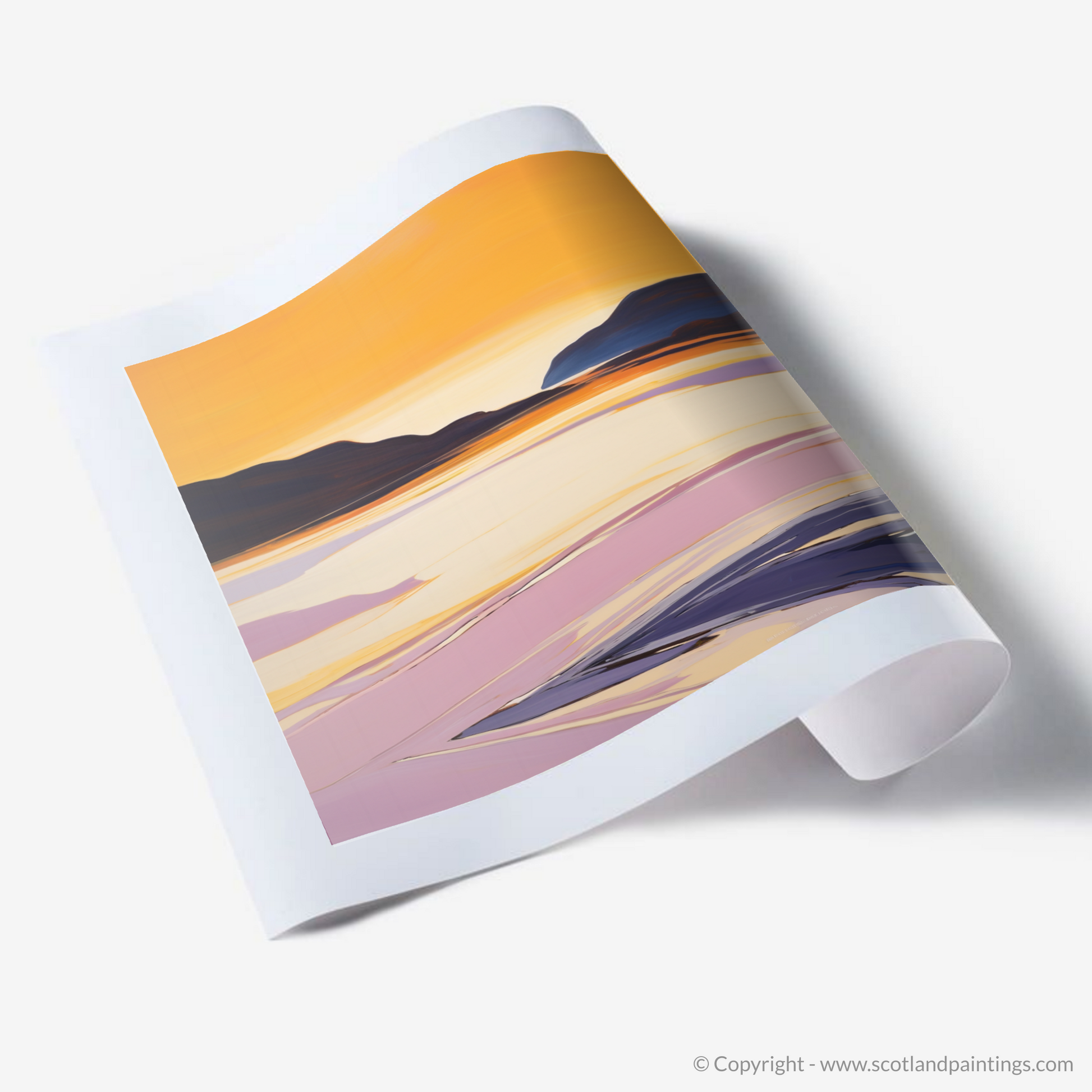 As the sun dips below the horizon, a symphony of colours is painted across Balnakeil Bay, captured masterfully in this exquisite print from our 'Scottish Coves' collection. The beauty of golden hour is reimagined through the Color Field lens, showcasing vast swathes of bold, unbroken colour that bleed into one another, forming a serene Scottish seascape.
