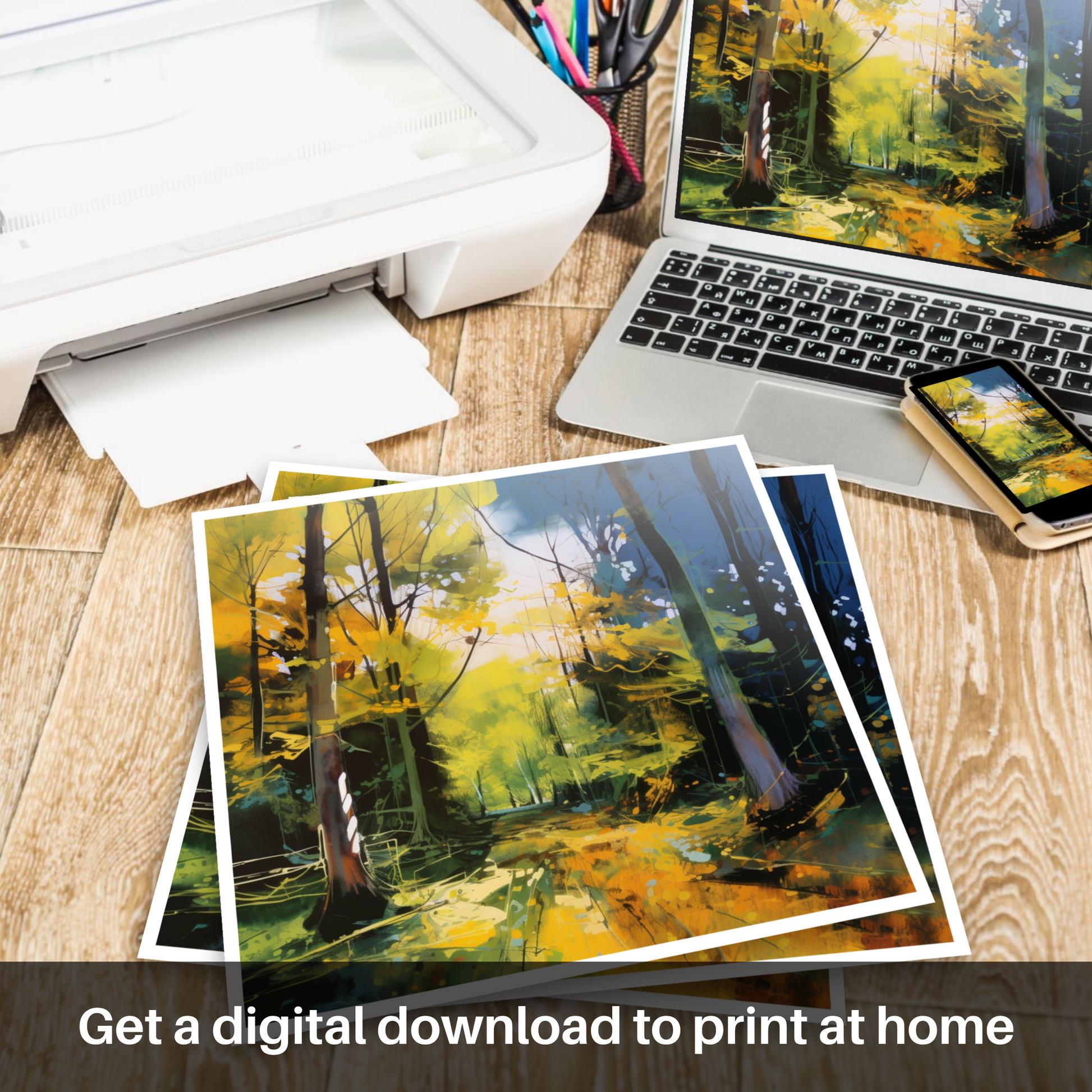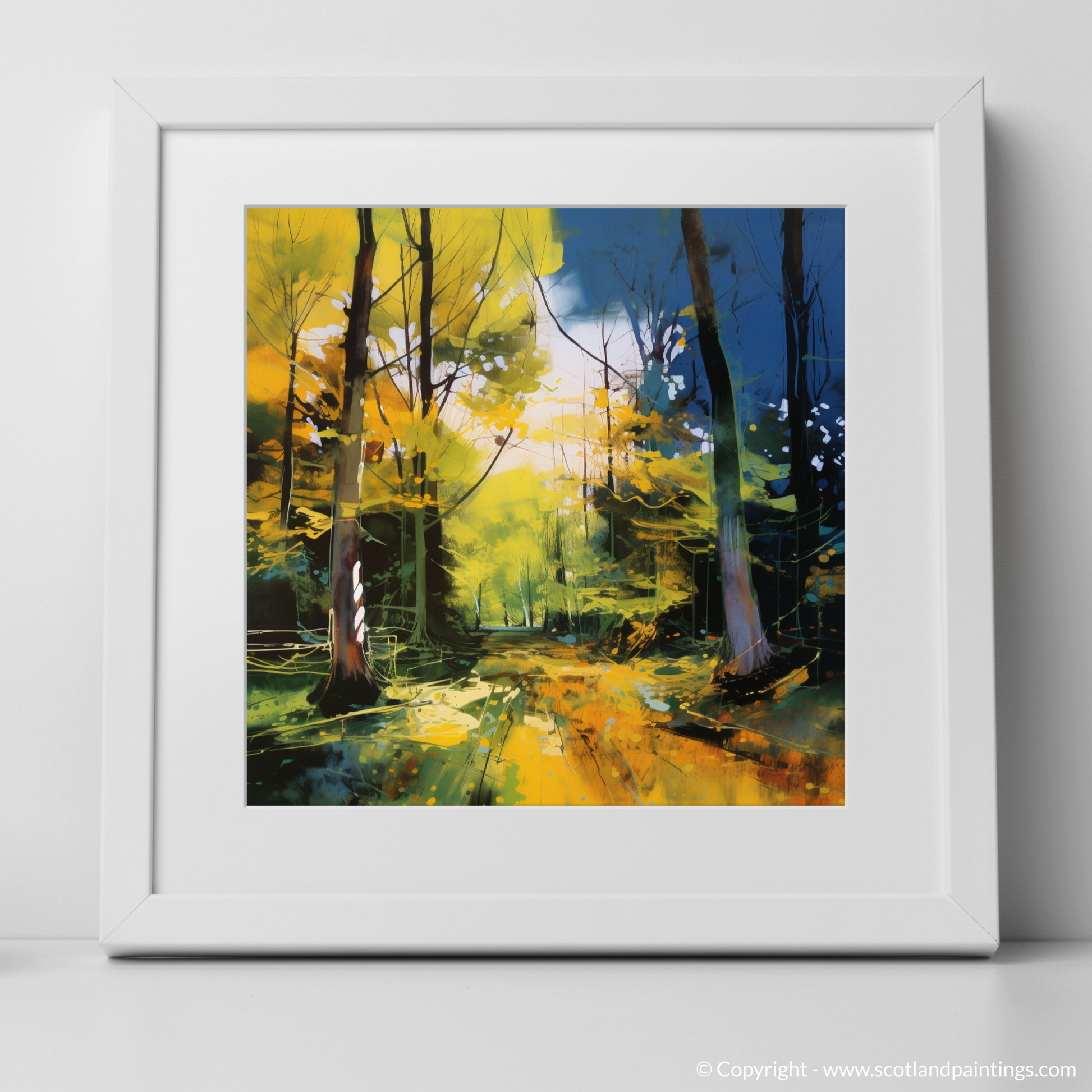 Immerse yourself in the vibrant hues of East Ayrshire's Balloch Wood, brought to life in a stirring pop art print from our 'Scottish Forests' collection. This striking piece captures the essence of the forest through a lively and modern artistic lens.