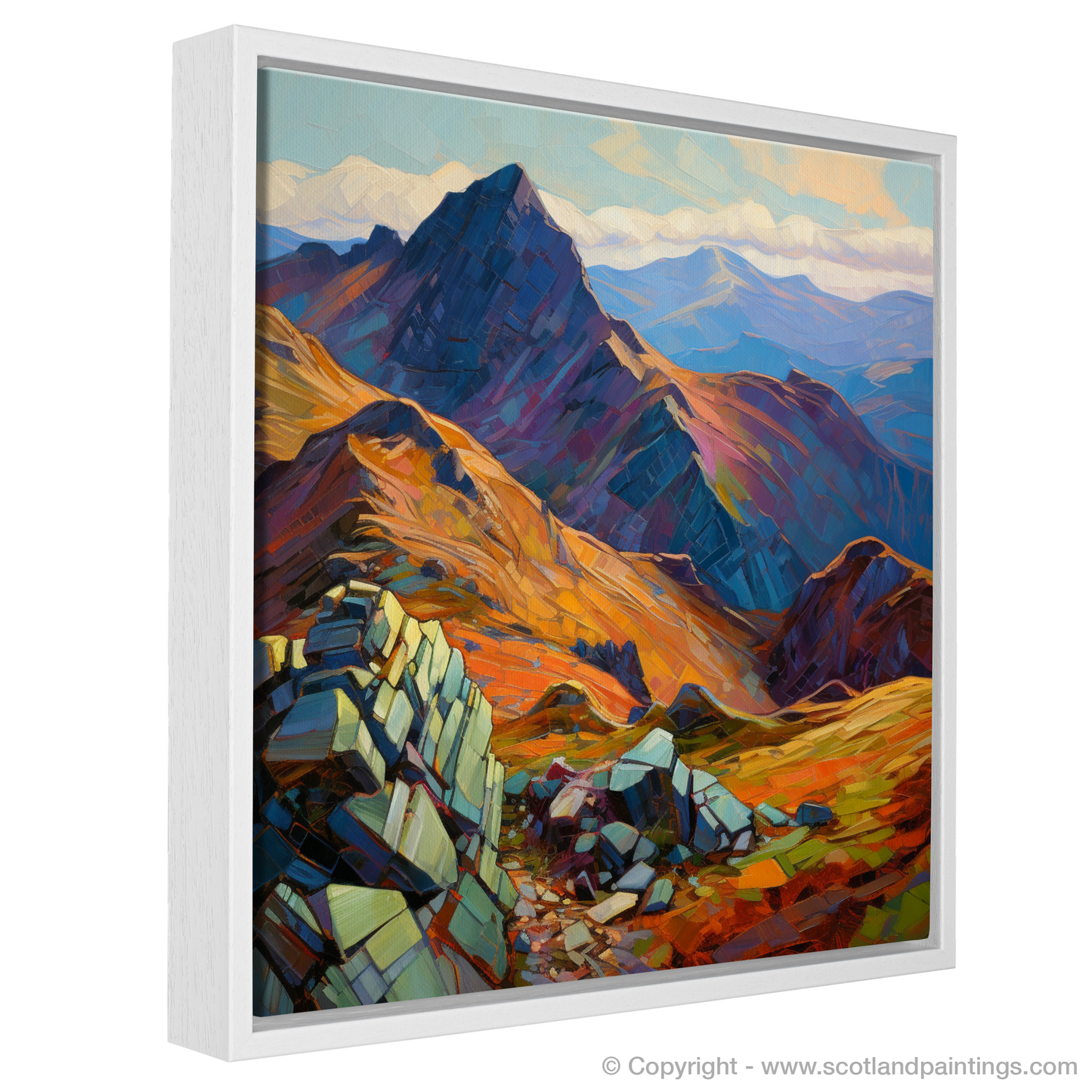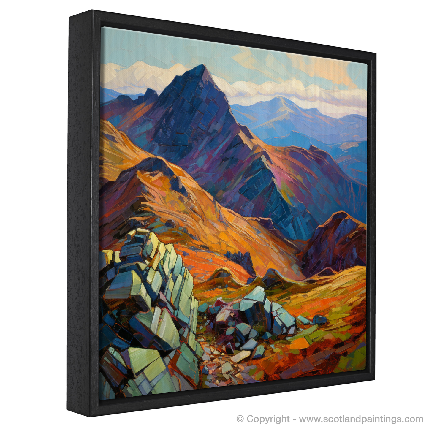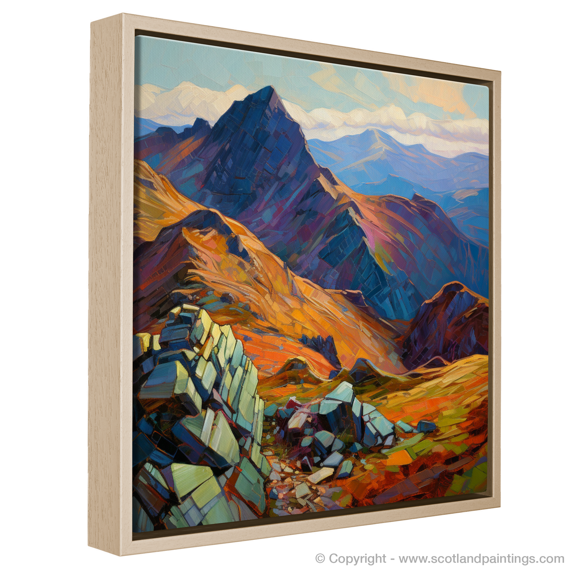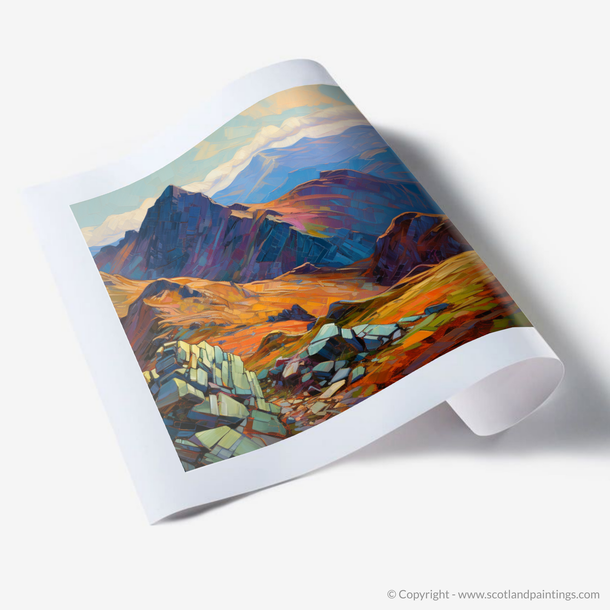 Imagine the majesty of the Arrochar Alps captured on canvas, where each brushstroke tells a story of untouched wilderness and natural grandeur. This exquisite print, inspired by the rugged beauty of The Cobbler, evokes the spirit of Scotland's mountains through its vibrant palette and bold composition.
