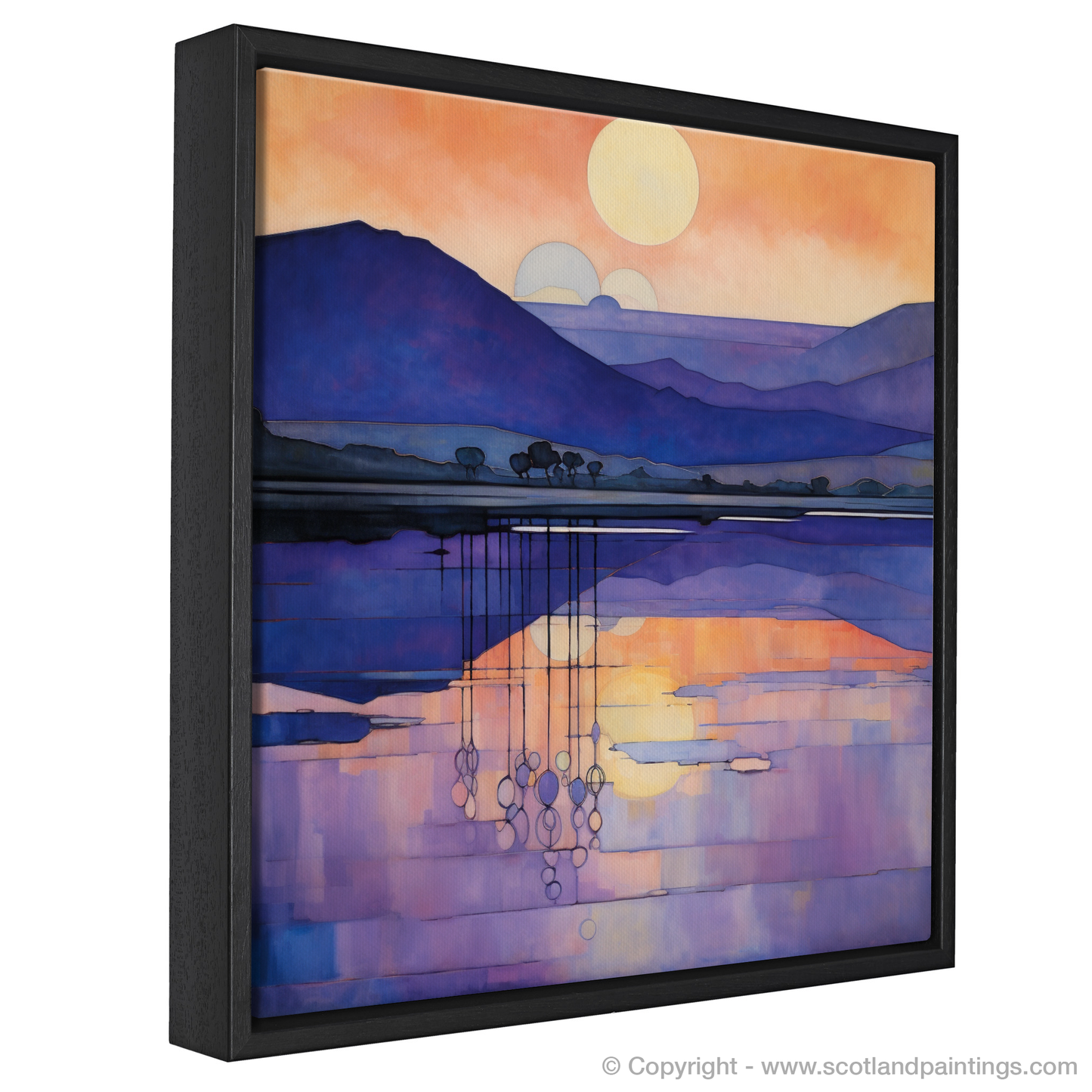 As the sun dips below the horizon, casting a warm glow over Ardtun Bay, the entirety of nature's splendour is captured beautifully within this evocative Art Nouveau-inspired print. In the embrace of dusk, the layered silhouettes of undulating hills create a serene backdrop, their cool blue tones standing in artful contrast to the fiery hues of the sunset sky.
