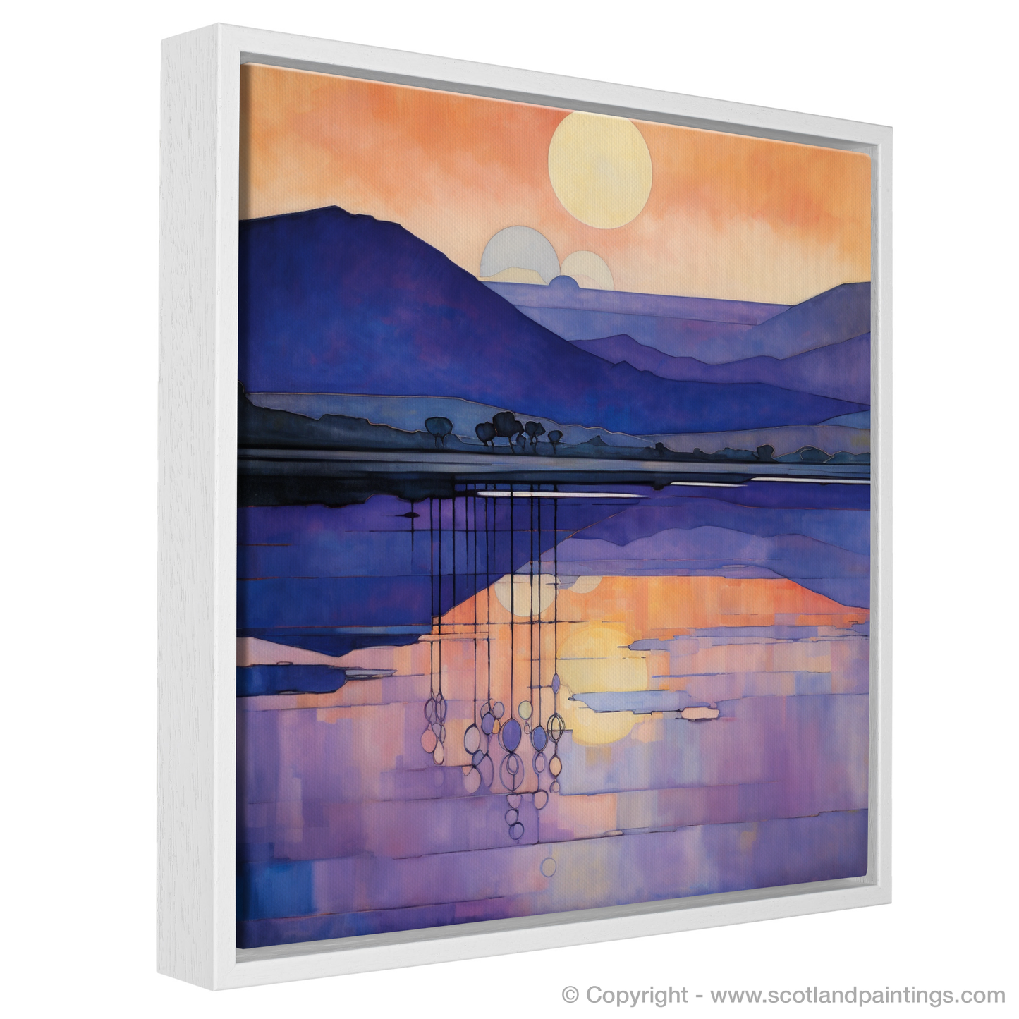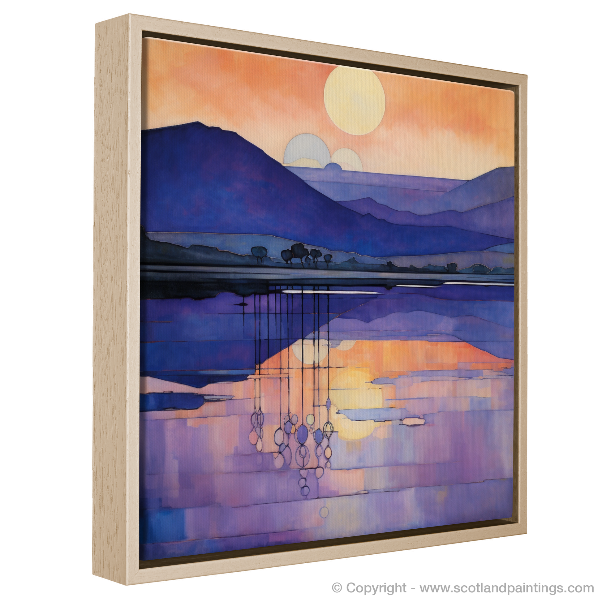 What truly sets this composition apart is the elegant fusion of organic forms and the geometric elements synonymous with the Art Nouveau movement. Delicate trees, distant on the horizon, share space with elaborately stylised circular motifs that cascade downwards into the bay like a chandelier of orbs suspended in the cool air.