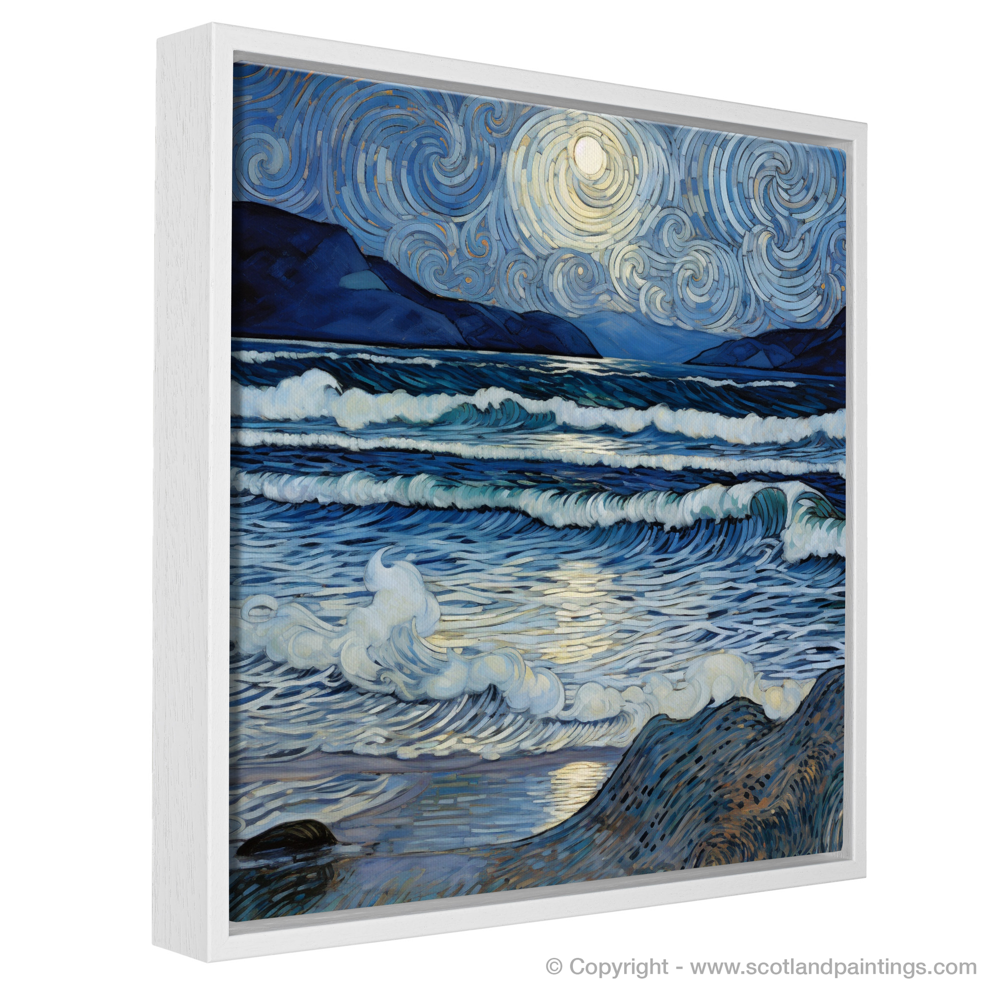 This piece captures the essence of the Scottish coast's wild, untamed spirit, that can stir the soul of nature enthusiasts and art lovers alike. It is an homage to the storied beaches that have witnessed the eons pass and promises to bring an air of mystique and majesty to any space it adorns.