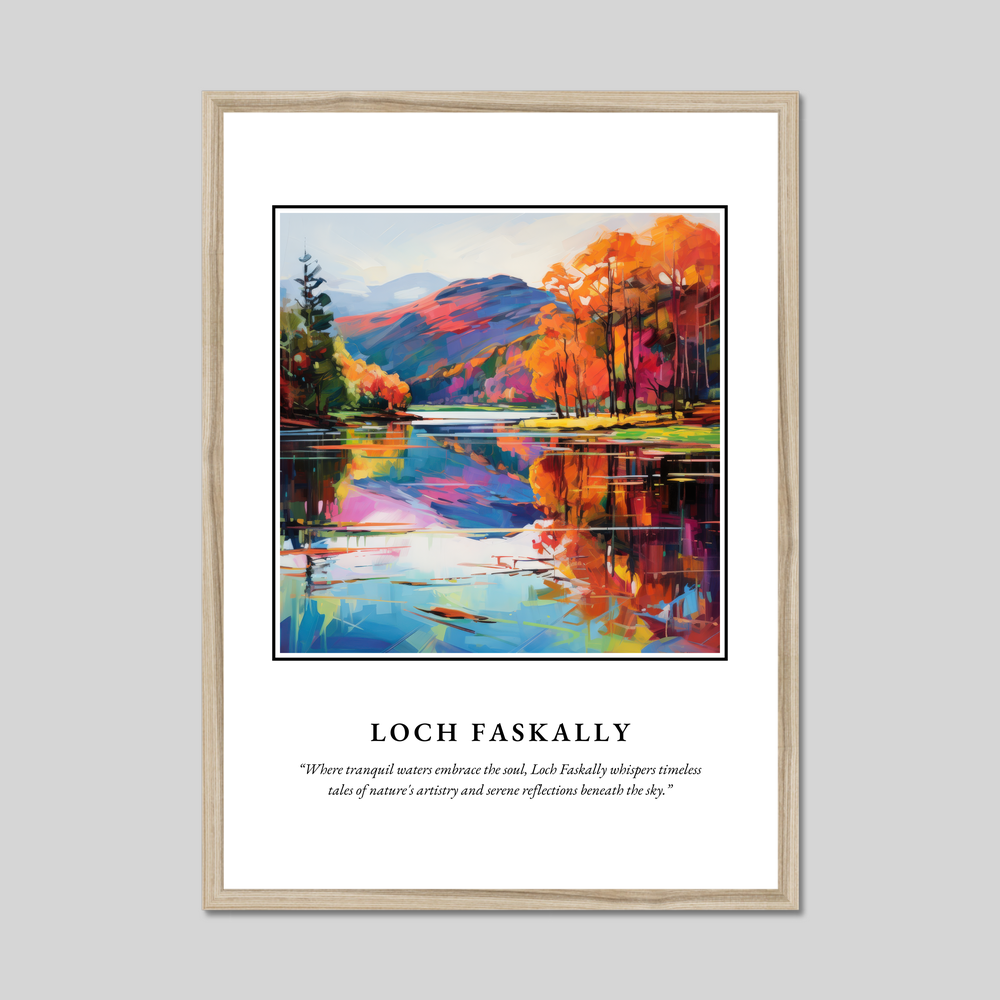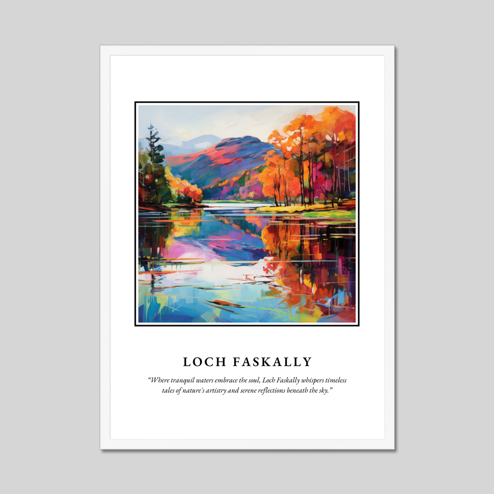 Dive into the vibrant world of Fauvism with this mesmerising depiction of Loch Faskally. Energetic brush strokes and a vivid palette bring the scene to life, beautifully capturing the essence of Scotland’s awe-inspiring landscapes. Beneath the painting, a poetic whisper reads: “Where tranquil waters embrace the soul, Loch Faskally whispers timeless tales of nature's artistry and serene reflections beneath the sky.” This poster offers more than just art; it encapsulates emotion and memory, a true treasure for any admirer of the natural world.