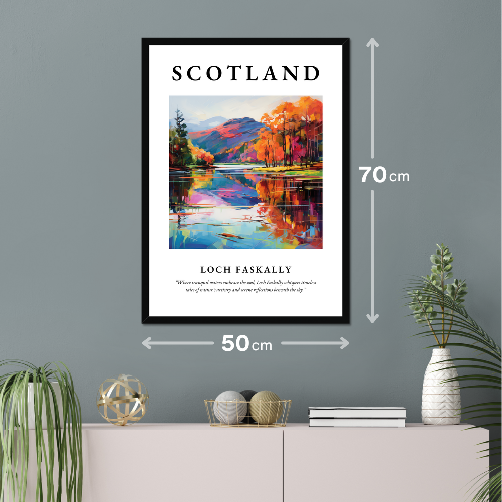 Welcome a slice of Scottish splendour into your home with our 50cm x 70cm framed poster print, showcasing a breathtaking painting of Loch Faskally. This striking piece is crowned with the bold, proud lettering of “SCOTLAND” and elegantly framed in your choice of black, white, or natural wood-effect. Perfect for art lovers, or anyone with fond memories or a connection to this captivating location, this large poster promises to make a dramatic statement on your wall without breaking the bank.