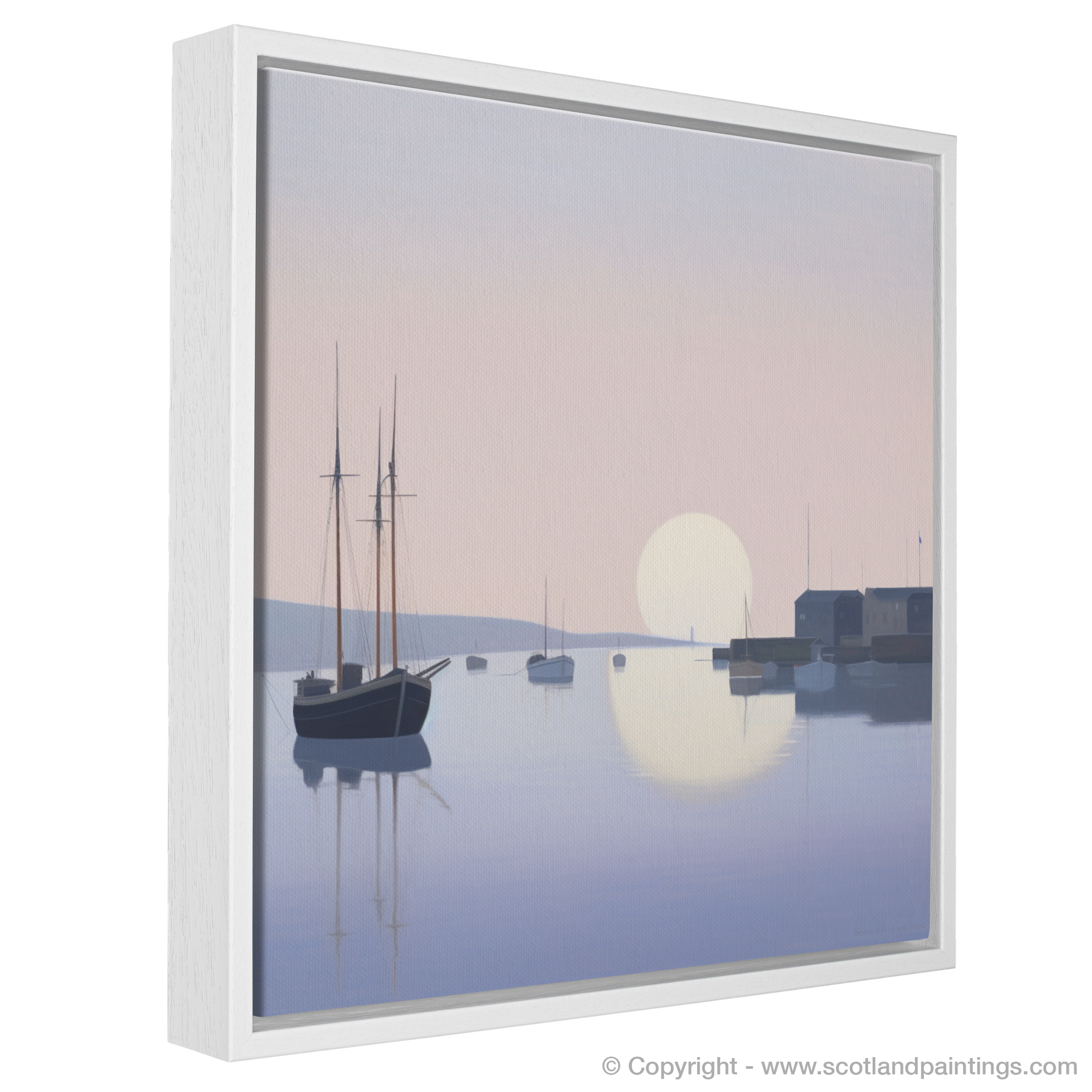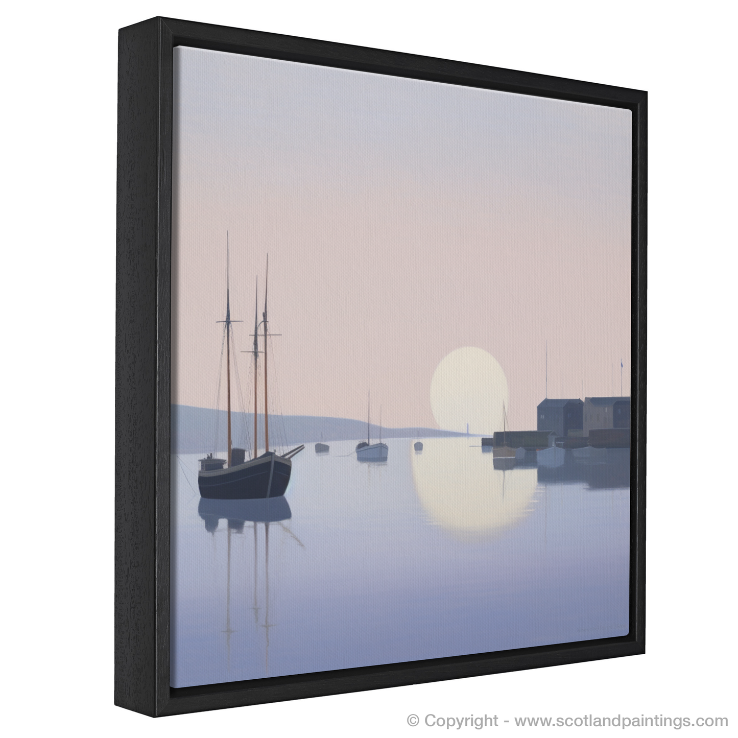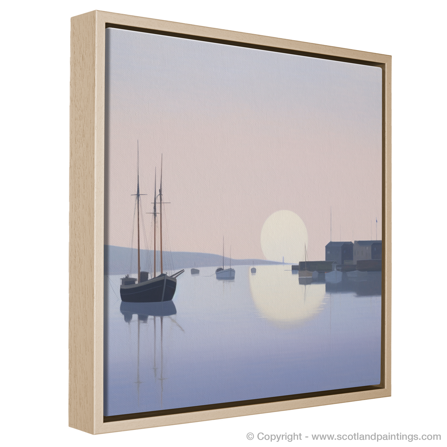 As the daylight wanes, the tranquil waters of Charlestown Harbour embrace the soft glow of dusk in this exquisite abstract print. The gentle palette is awash with muted hues of lilac and blush, perfectly capturing the serene atmosphere of a Scottish harbour at the close of the day.