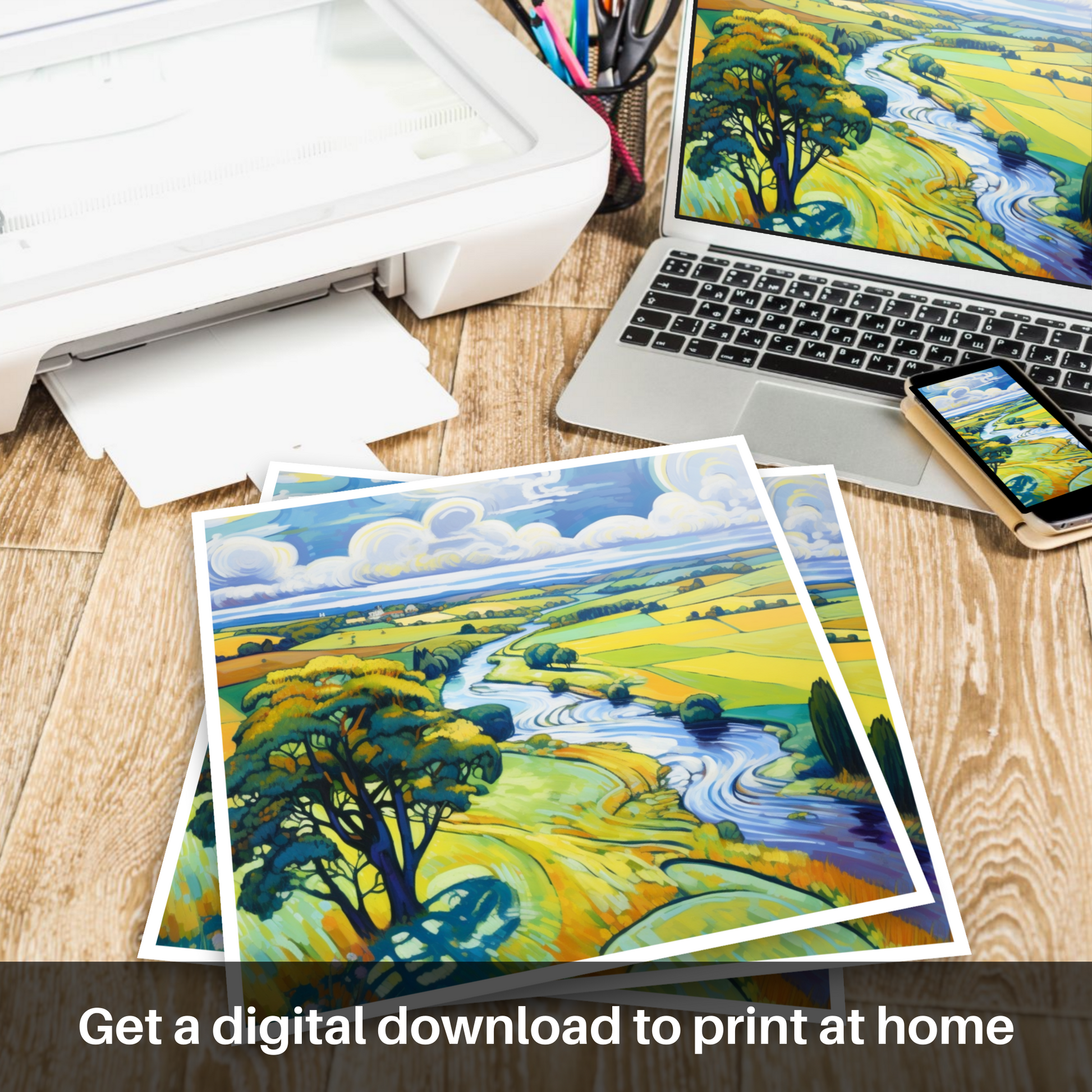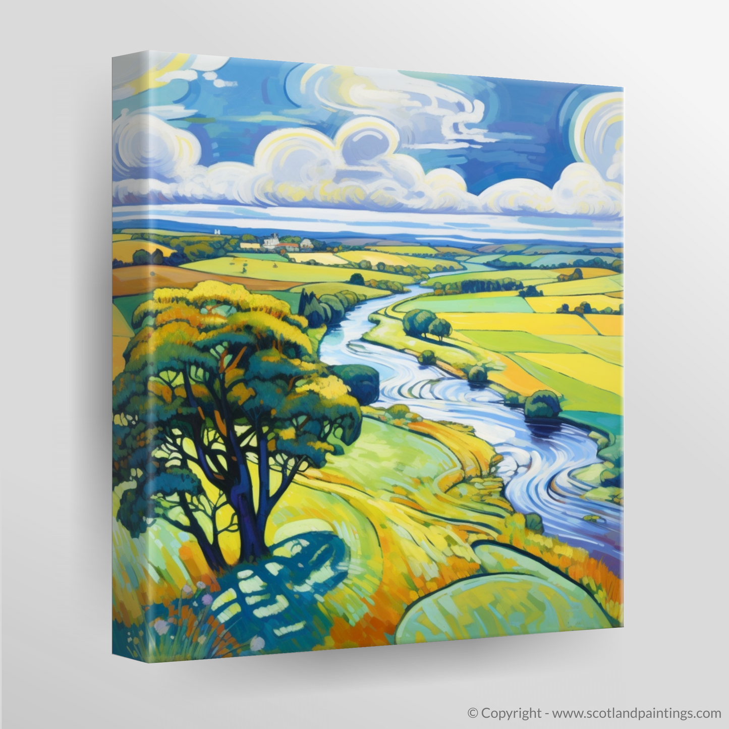 Immerse your senses in the bold and vibrant allure of the Scottish landscape with our captivating print. This dynamic composition, inspired by the enchanting River Deveron as it meanders through Aberdeenshire, embodies the very essence of Fauvist exuberance. The canvas is alive with expressive brushstrokes and a riot of vivid colours that challenge the conventional and plunge the viewer into a reimagined pastoral dream.